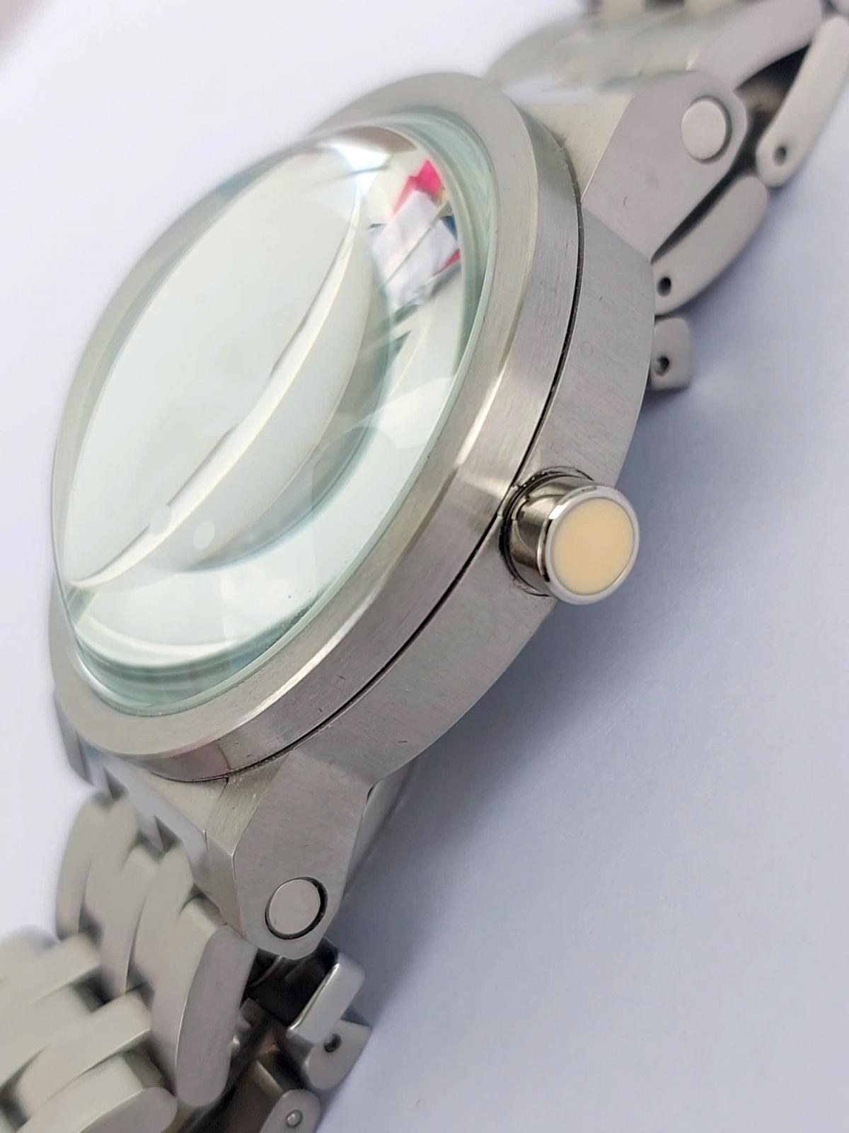 Chiêm ngưỡng mẫu đồng hồ GSX SMART no.103 bạn sẽ ngay lập tức bị mê hoặc bởi một tác phẩm nghệ thuật thiết kế đầy phá cách, nơi tinh thần Nhật Bản hòa quyện cùng ngôn ngữ thiết kế avant-garde độc đáo. Điểm nhấn đắt giá nhất nằm ở mặt số được tạo hình đa lớp với những đường cắt uốn lượn mềm mại, mô phỏng vẻ đẹp hùng vĩ của núi Phú Sĩ và những tầng mây trôi bồng bềnh, tạo nên một chiều sâu thị giác đầy ảo ảnh dưới lớp kính cong vòm "bubble" cực đại. Sự kết hợp giữa tông màu xám lạnh, trắng tinh khôi và những điểm xuyết xanh dương thanh khiết không chỉ gợi nhắc đến sự tĩnh lặng của thiên nhiên mà còn tôn lên vẻ hiện đại, nam tính cho người sở hữu. Mặt sau của đồng hồ là cả một câu chuyện tri ân với biểu tượng núi Phú Sĩ cao 3,776m cùng dòng chữ "Produced by N.Ishida - Designed by Izumic", khẳng định giá trị của một phiên bản đc sx giới hạn. Chính hãng GSX sx nội địa Nhật, sd máy cơ tự động Nhật, nguyên bản, size 40mm, gần như mới 99%.
