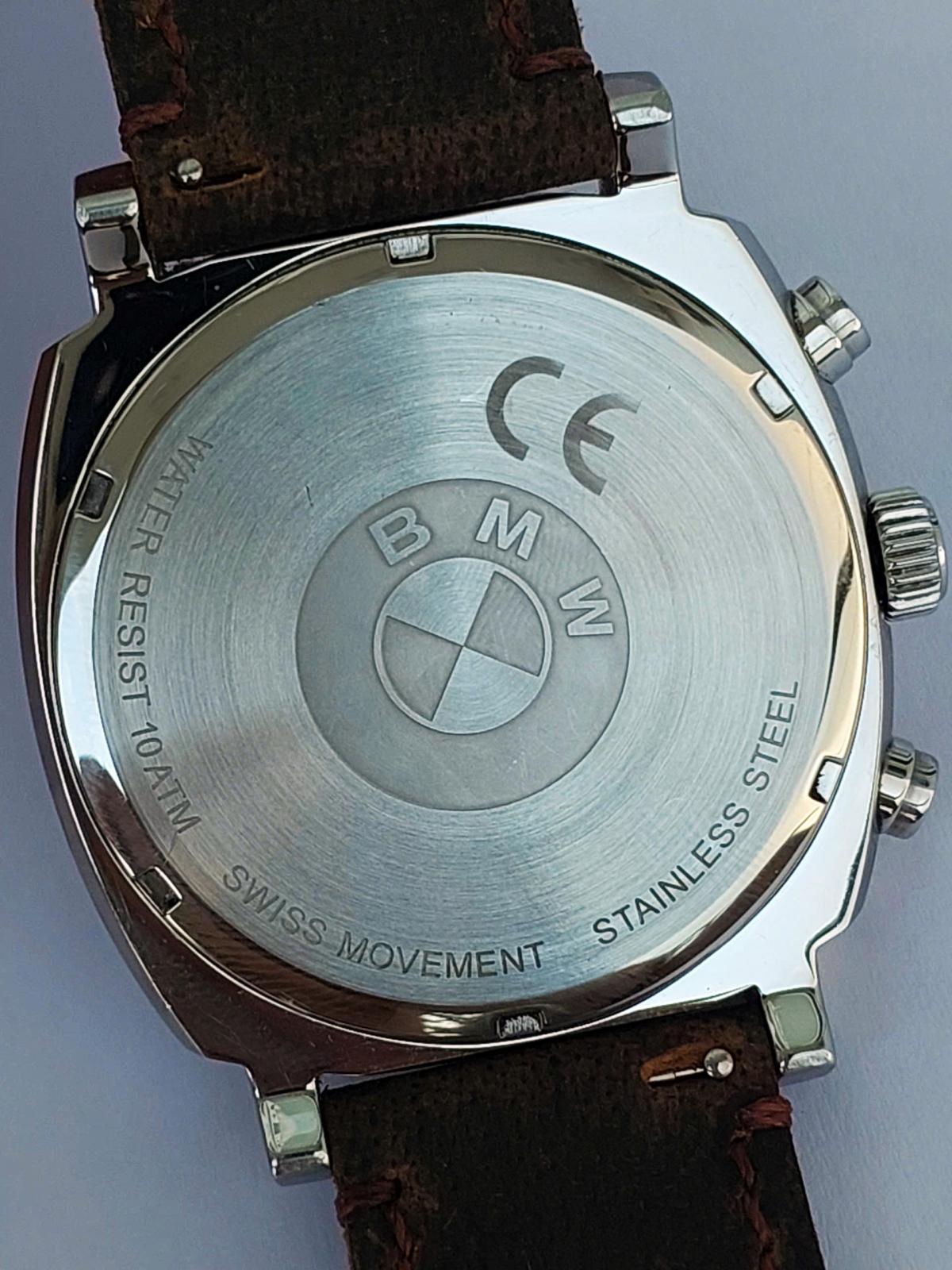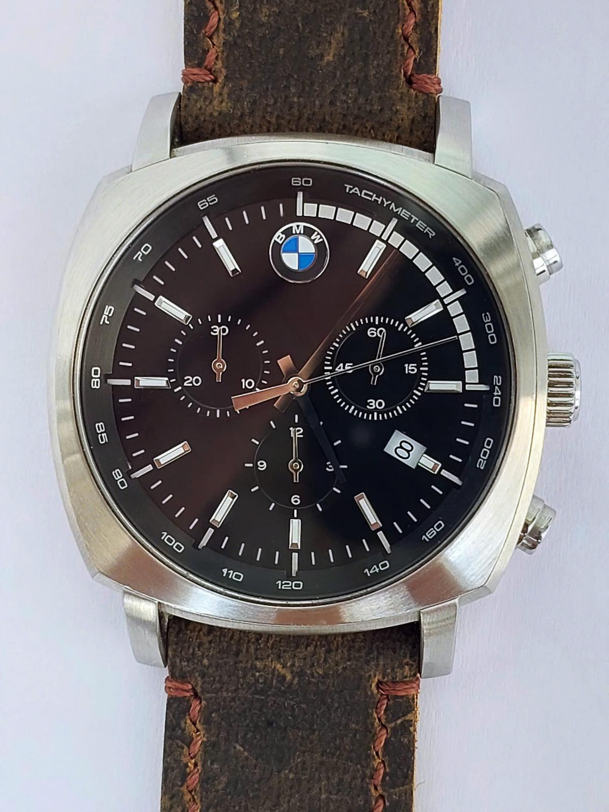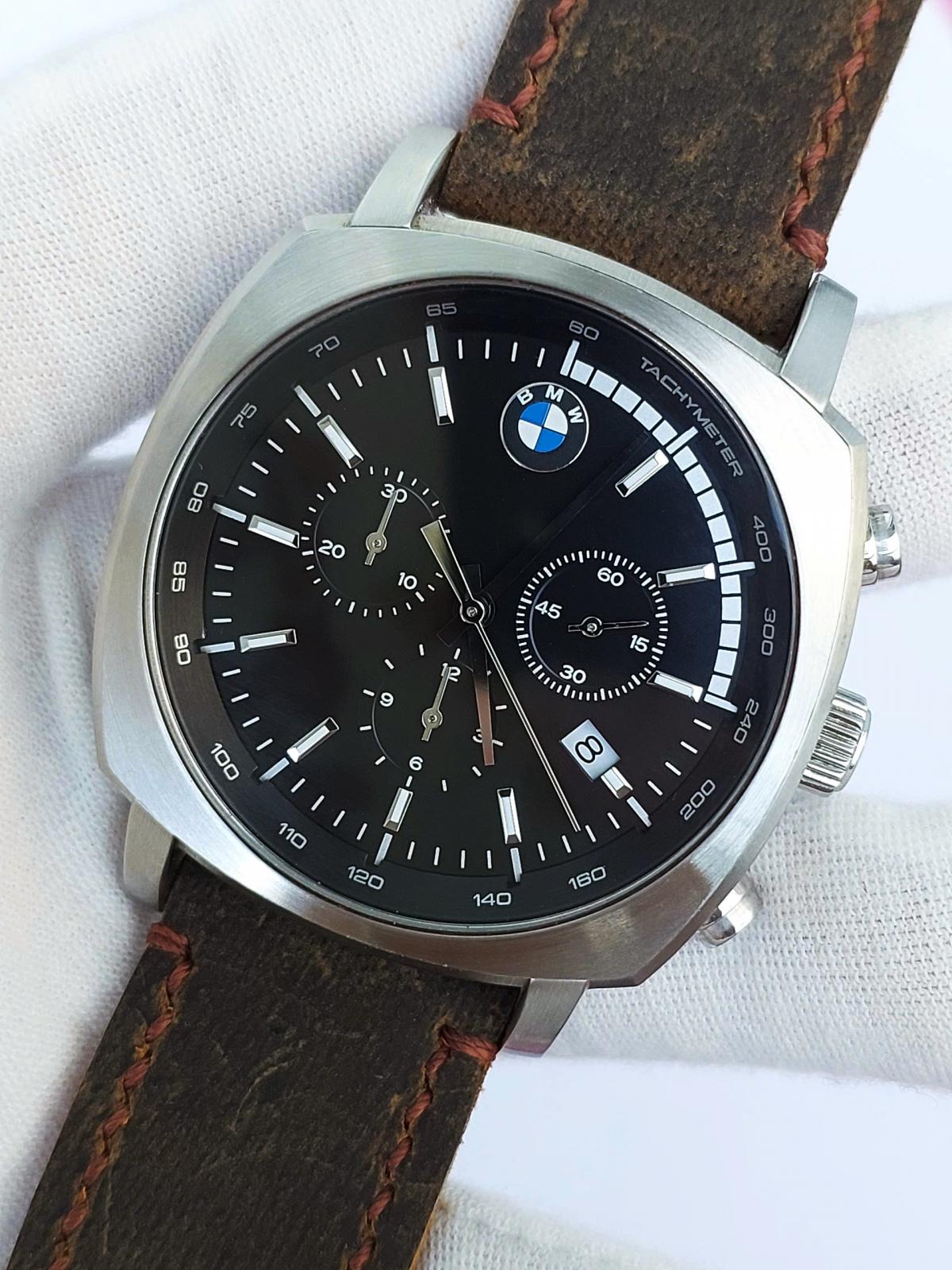 Xe đã sang, xịn và cả đồng hồ BMW cũng ko kém phần đẳng cấp từng chi tiết. Phom tank phong cách thể thao mạnh mẽ cho Men, vẫn là mẫu bo viền hút mắt, mặt số được thiết kế như 1 mặt đồng hồ tuyệt đẹp của 1 chiếc xe BMW với hệ thống chronograph 3 kim, các chi tiết trên mặt số được làm rất sắc nét và kim cọc với độ hoàn thiện cao, Logo hãng được đóng trang trọng góc 12h và nắp đáy, núm chỉnh và khóa dây khẳng định thương hiệu. ĐH chính hãng B.M.W, sx tại Đức, sử dụng máy Pin Thụy Sỹ, dây da ngựa điên handmade thay thế, size 41x41mm, độ mới tầm 97-98%