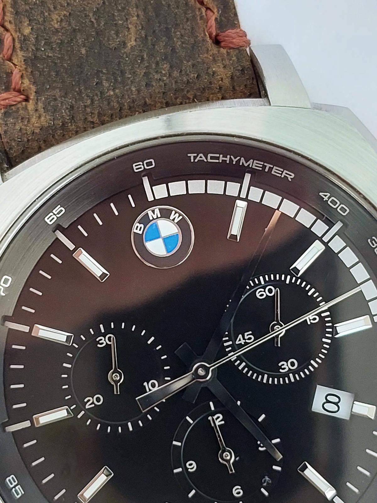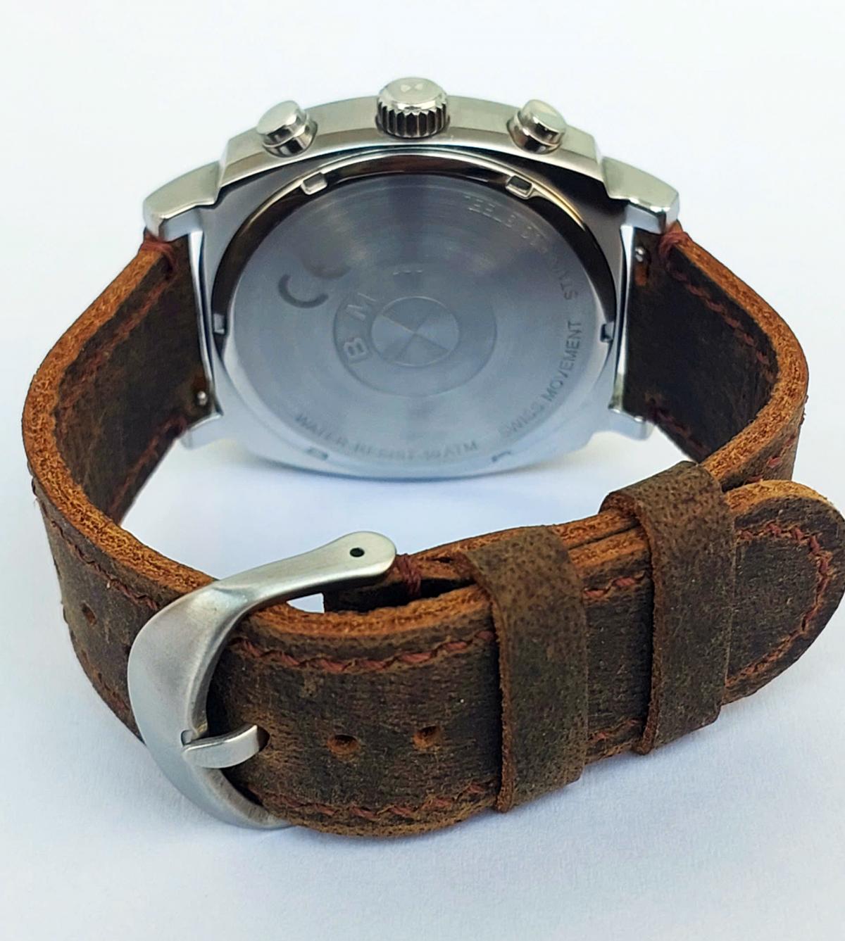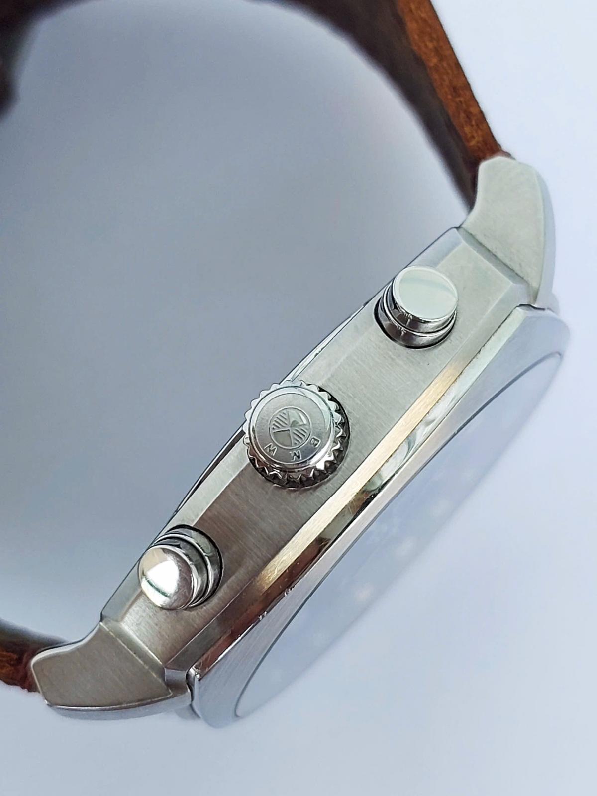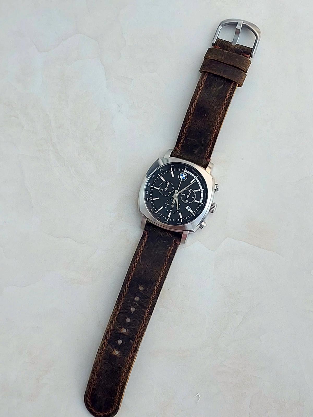 Xe đã sang, xịn và cả đồng hồ BMW cũng ko kém phần đẳng cấp từng chi tiết. Phom tank phong cách thể thao mạnh mẽ cho Men, vẫn là mẫu bo viền hút mắt, mặt số được thiết kế như 1 mặt đồng hồ tuyệt đẹp của 1 chiếc xe BMW với hệ thống chronograph 3 kim, các chi tiết trên mặt số được làm rất sắc nét và kim cọc với độ hoàn thiện cao, Logo hãng được đóng trang trọng góc 12h và nắp đáy, núm chỉnh và khóa dây khẳng định thương hiệu. ĐH chính hãng B.M.W, sx tại Đức, sử dụng máy Pin Thụy Sỹ, dây da ngựa điên handmade thay thế, size 41x41mm, độ mới tầm 97-98%