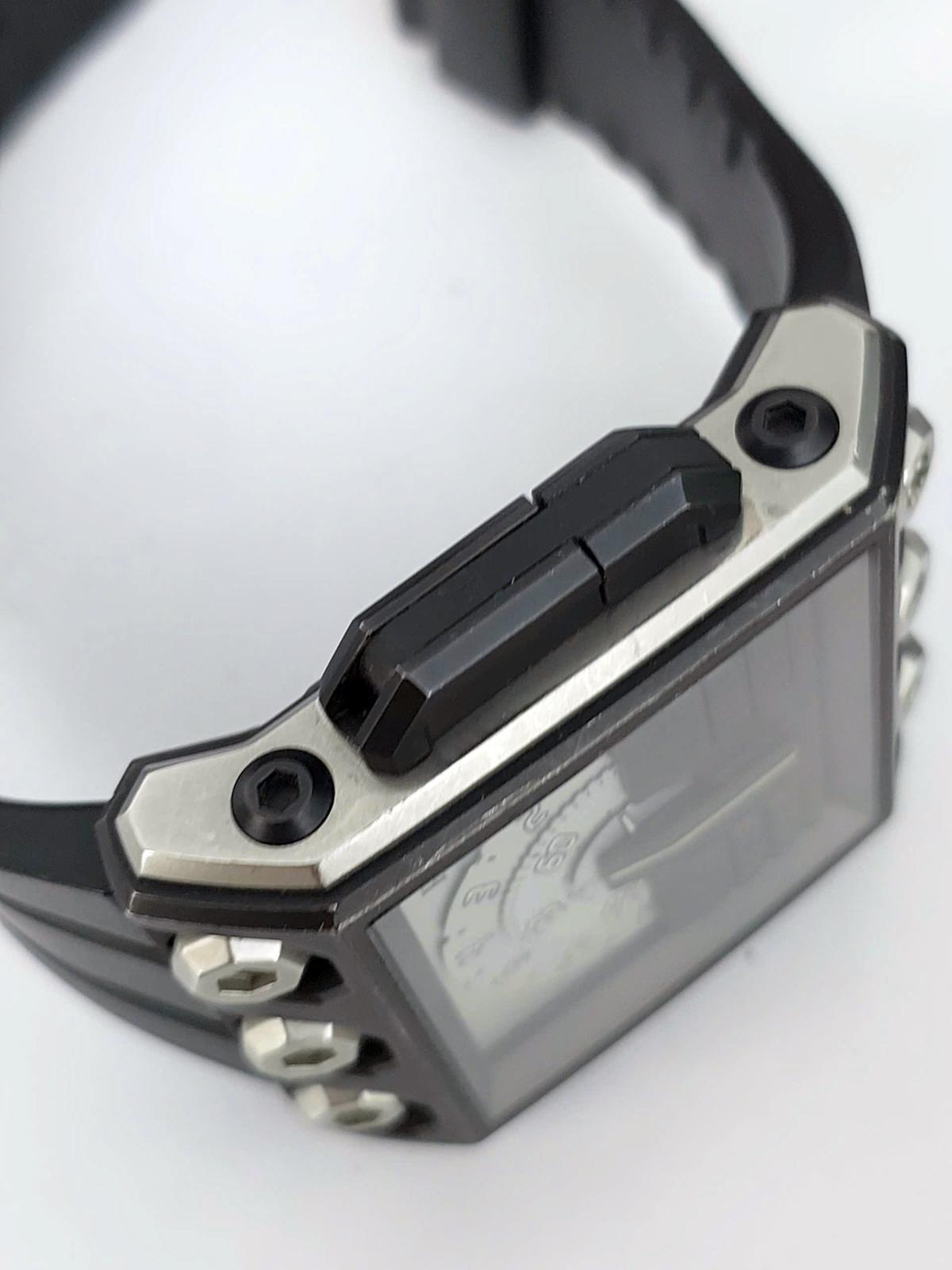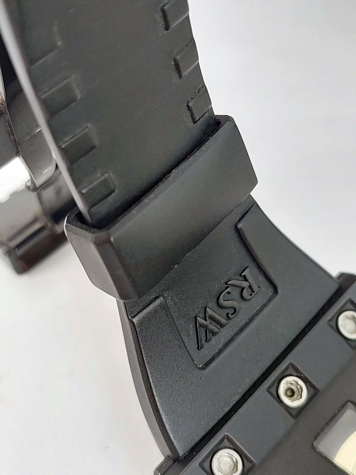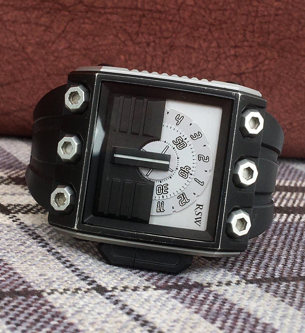 Nằm trong phân khúc ĐH tự động cao cấp của hãng RSW Thụy Sỹ, Mẫu Outland với giá thời điểm 2010 giá xuất xưởng chóng mặt 3150 franc Thụy Sỹ tương đương 101tr Vnđ. Mang trong mình thiết kế hầm hố chỉ dành cho tay nam to, khỏe bởi thiết kế độc đáo, không đụng hàng. Vỏ đồng hồ được làm từ chất liệu kim loại cứng cáp, kết hợp với các đinh ốc chắc chắn quanh viền, tạo cảm giác như một chiếc đồng hồ của những người đam mê công nghệ hoặc thể thao mạnh mẽ. Mặt đồng hồ có thiết kế khá đặc biệt với kim chỉ giờ được thể hiện qua một dạng quay số độc đáo từ ngoài vào trong là Giờ - Phút - Giây tạo sự khác biệt rõ rệt so với những mẫu đồng hồ truyền thống. Mặt dưới của đồng hồ lộ cơ khí, cho thấy các bộ phận hoạt động của máy, búa có đóng tên thương hiệu. Dây cao su cứng cáp, bền bỉ càng tôn thêm tinh thần thể thao của mẫu nam đặc biệt này. Chính hãng R-S-W sx tại Thụy Sỹ, máy cơ tự động Thụy Sỹ, dây khóa zin, quan sát ảnh trên thân đồng hồ có nhiều vết xước càng tăng thêm nét phong trần từng trải tại những vùng đất xa xôi (Outland)![]()