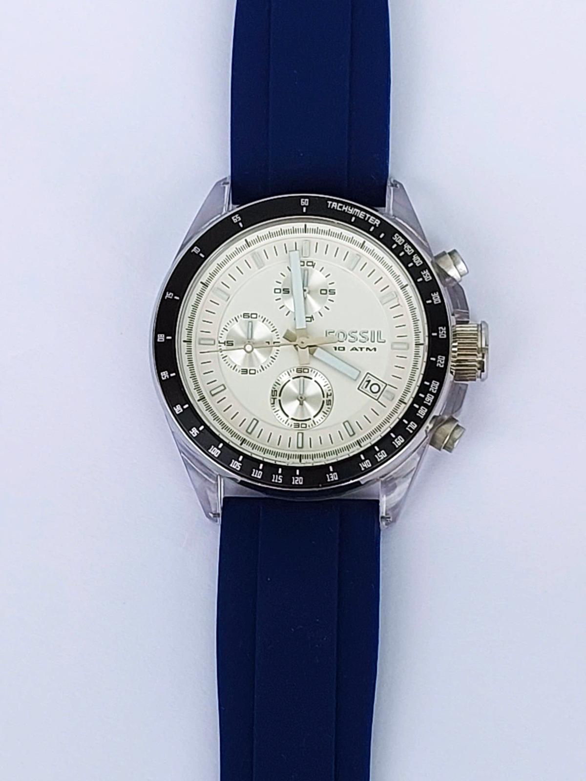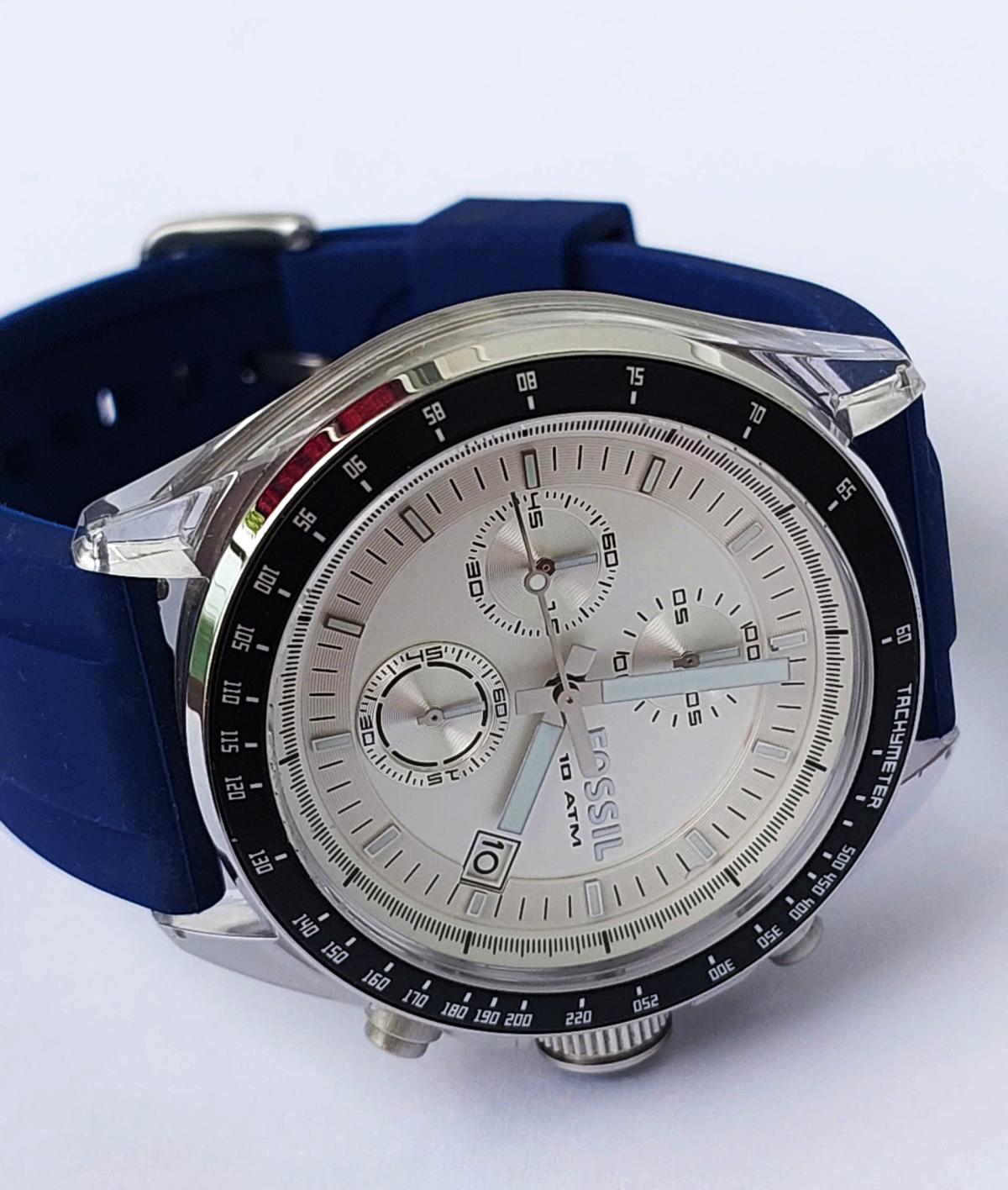 Mẫu Nam F0ssiL mang phong cách thể thao hiện đại với thiết kế mạnh mẽ và tinh tế, nổi bật với mặt số trắng bạc sang trọng kết hợp cùng viền niềng thép không gỉ sáng bóng, tạo nên vẻ cuốn hút đầy nam tính. Thân đồng hồ được làm từ nhựa cứng đặc biệt giúp giảm trọng lượng đáng kể, mang lại cảm giác đeo nhẹ nhàng, thoải mái nhưng vẫn bền bỉ và chắc chắn, lý tưởng cho những ai yêu thích sự năng động. Dây cao su xanh navy mềm mại ôm tay hoàn hảo, kết hợp cùng bộ ba mặt phụ chronograph tinh xảo, viền tachymeter đen cá tính tạo nên một tổng thể vừa trẻ trung, vừa đậm chất thể thao. Chính hãng F0ssiL Mỹ, sd máy pin Japan, khóa zin, dây cao su chất lượng thay thế, size 42, độ mơi tầm 98%.