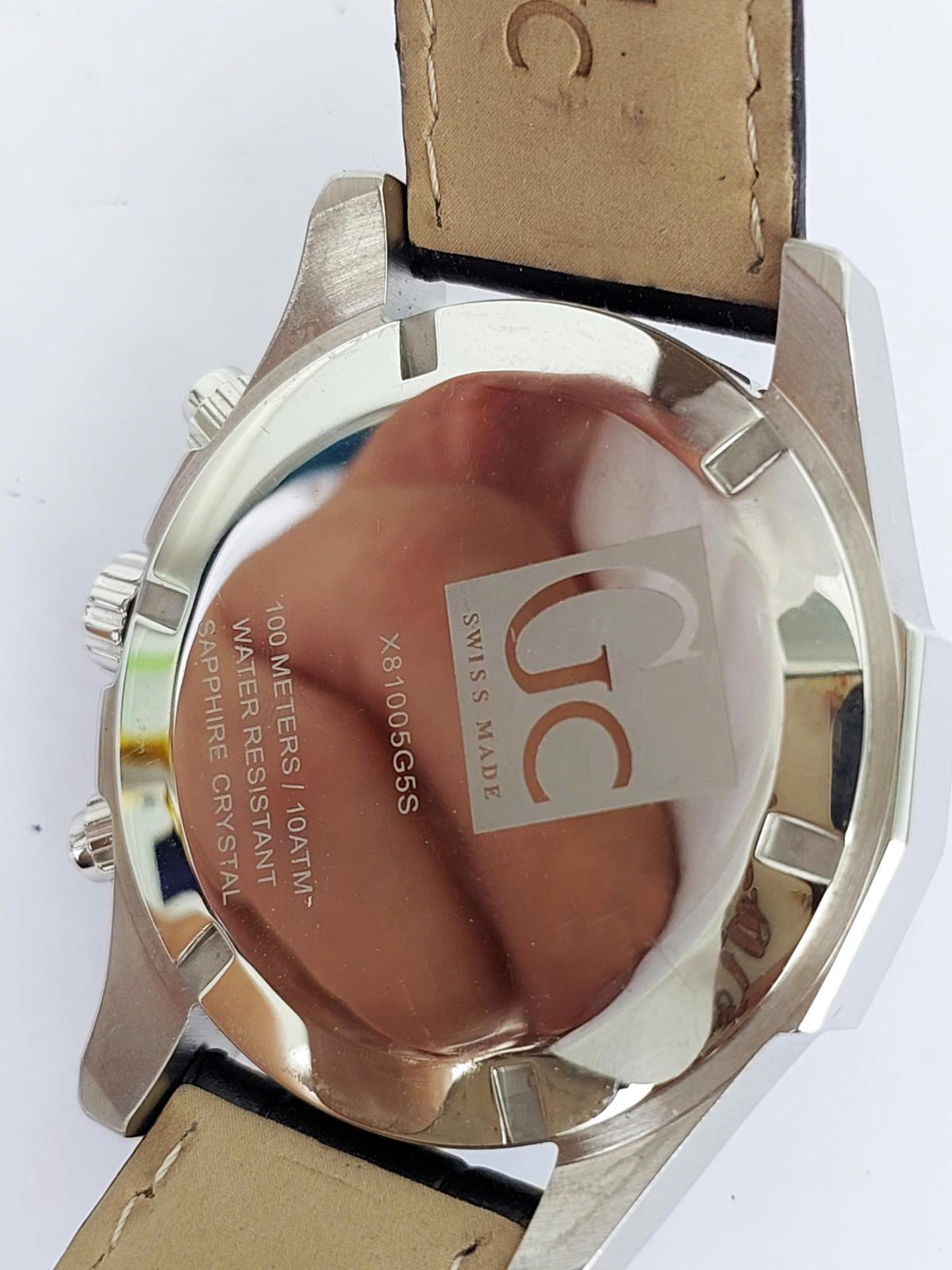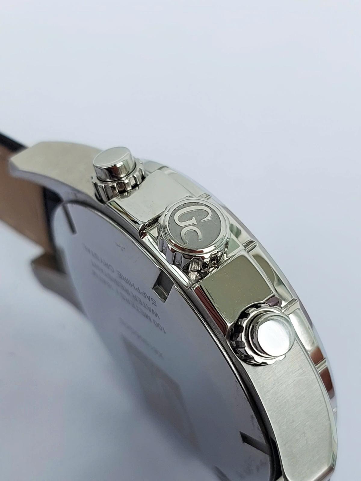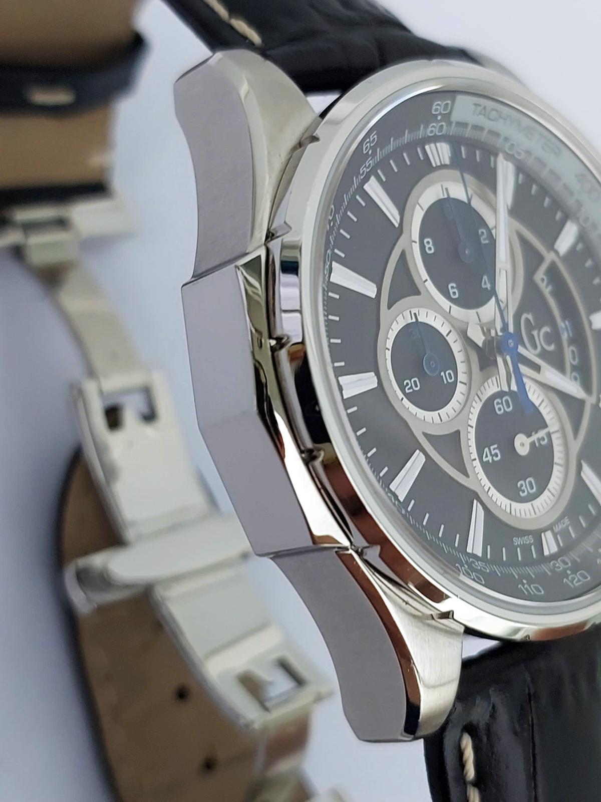 Phân khúc chuẩn Thụy Sỹ, serries cao cấp của Gu.ess GC với thiết kế hội tụ đầy đủ khí chất mạnh mẽ của phái mạnh với điểm nhấn trung tâm là mặt số màu xám khóichải tia sunburst đồng tâm cực kỳ sang trọng và ma mị. Nổi bật trên nền xám thời thượng là thiết kế 6 kim Chronograph thể thao được bố trí cân đối cùng các cọc số nổi khối cứng cáp và ô lịch ngày thiết kế vòng cung đầy phá cách tại góc 4 giờ dưới lớp kính Sapphire trong vắt. Case thép 316L chất lượng cao, chải xước kết hợp góc cạnh đầy nam tính. Khóa và núm chỉnh đính logo thương hiệu sắc xảo. Chính hãng Gu.ess GC sx tại Thụy Sỹ, sd máy pin Thụy Sỹ, nguyên bản dây khóa hãng, size 44mm cho Nam, độ mới tầm 97-98%.