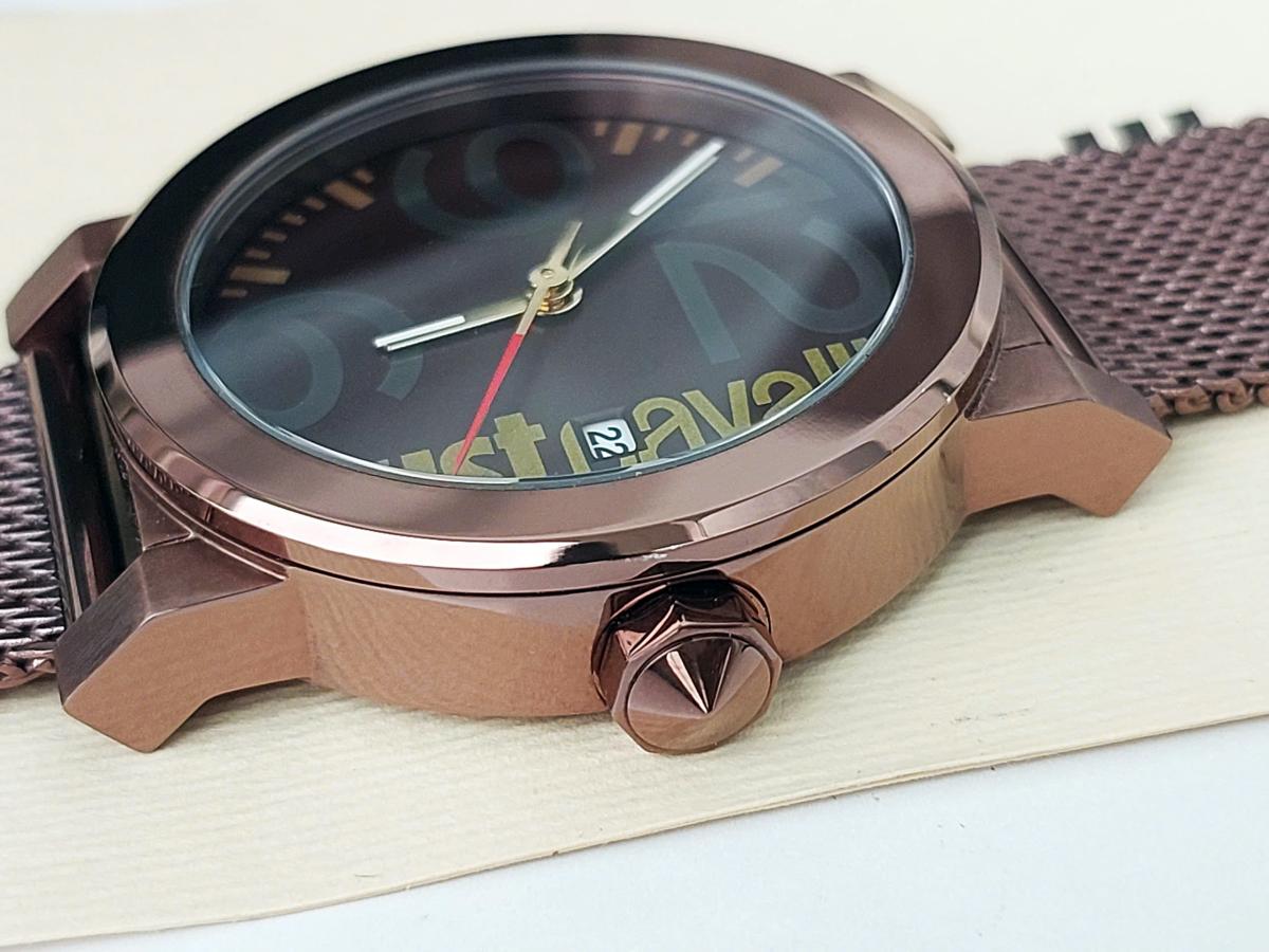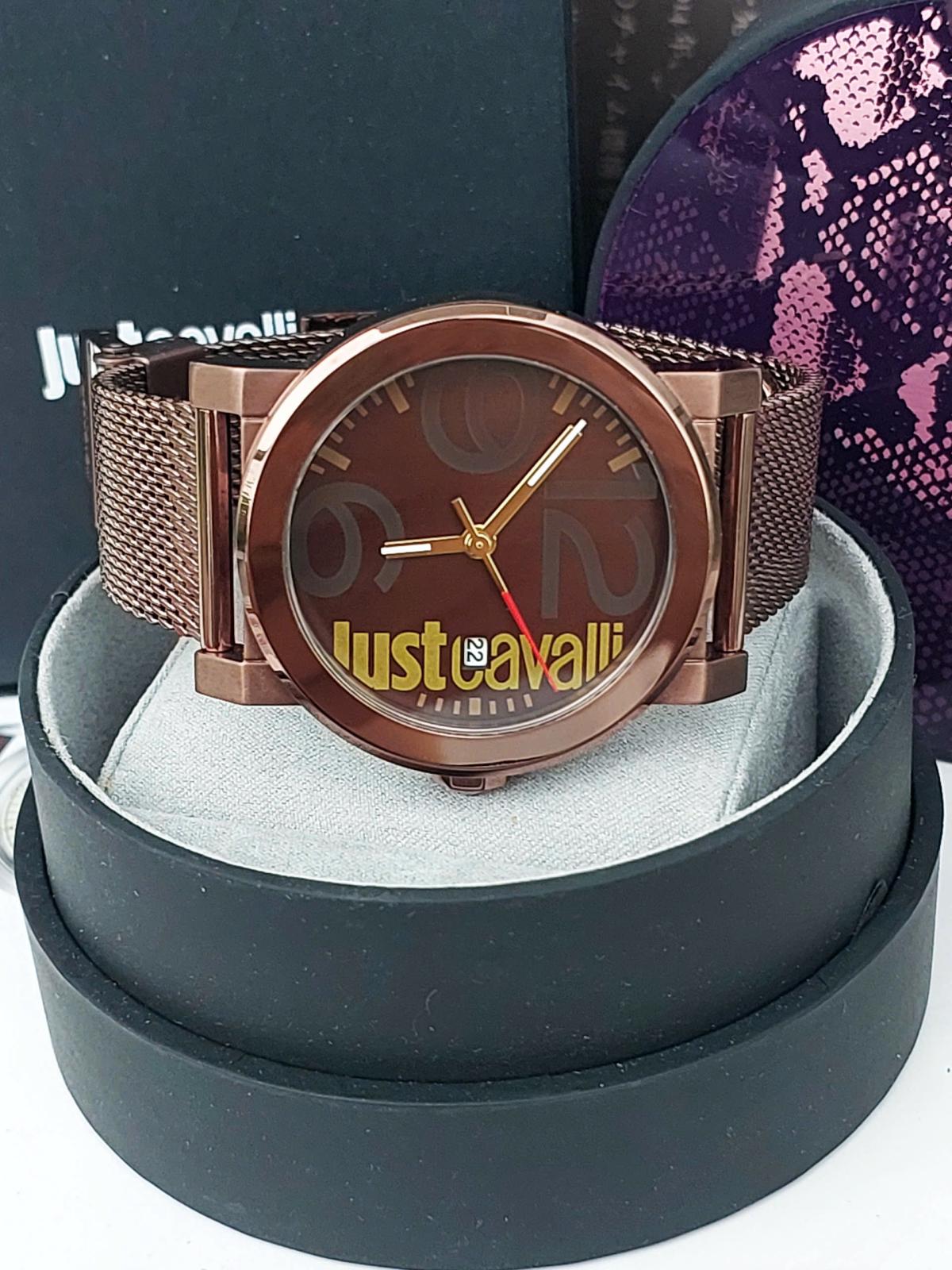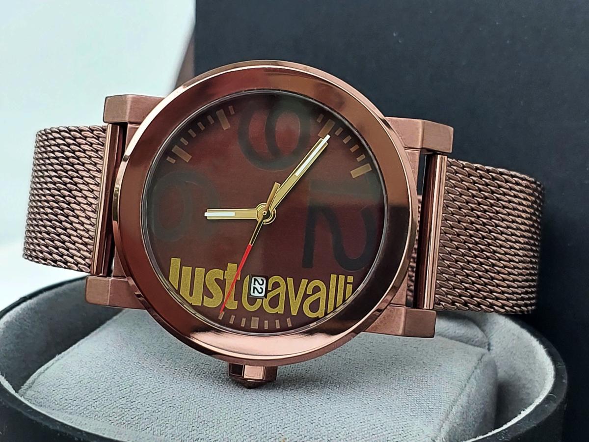 Chiếc đồng hồ nam này mang một phong cách hiện đại và đầy cá tính với mặt số màu nâu trầm ấn tượng. Đặc biệt, thiết kế cách điệu cọc giờ 6-9-12 bản lớn phong cách rất Ý, tên thương hiệu kẻ đứng cá tính, núm vỏ hình trụ , vát cạnh bat giác độc đáo. Mặt kính được phủ một lớp bóng bẩy, kết hợp với dây đeo kim loại lưới màu nâu có tăng đưa tiện lợi, tạo nên một vẻ ngoài sang trọng nhưng không kém phần trẻ trung. Cặp kim giờ và phút được thiết kế tinh tế với màu vàng và đỏ, tạo điểm nhấn nổi bật trên nền màu tối của mặt đồng hồ. Chính hãng J.ust Cavalli Ý, máy pin chuẩn hãng, full hộp, catalog, dây & khóa zin hãng, size 42mm, mới keng 98-99%.