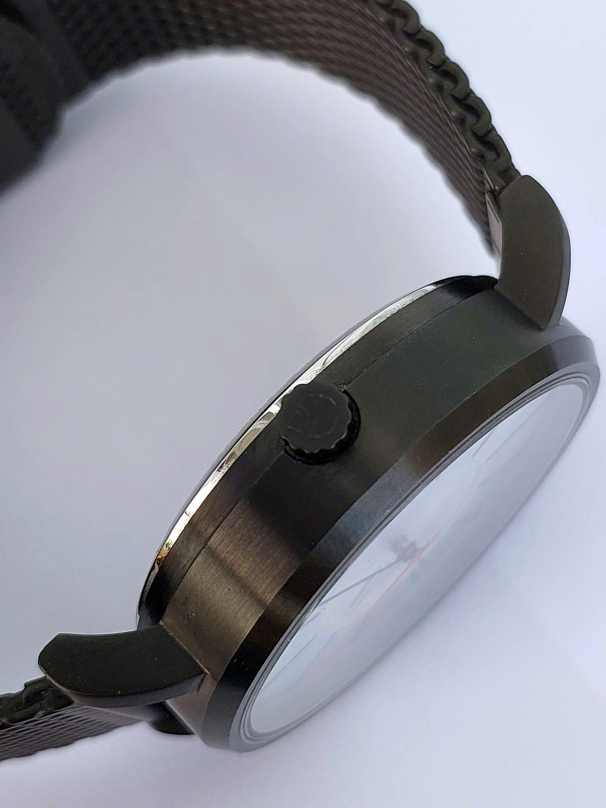 Mang mang đậm hơi thở Bauhaus tối giản nhưng đầy phá cách, thu hút mọi ánh nhìn ngay từ lần chạm mắt đầu tiên. Sở hữu bộ vỏ thép không gỉ mạ đen PVD toàn thân kết hợp hoàn hảo cùng dây đeo dạng lưới Milanese nhuyễn mịn, tổng thể chiếc đồng hồ toát lên vẻ nam tính, bí ẩn, hiện đại mang lại cảm giác thoải mái khi sử dụng. Sở hữu mặt số màu Hồng Bạc (Rose Silver) chải tia satin bắt sáng cực tốt với thiết kế phân vùng độc đáo, nơi các vạch chỉ giờ thanh mảnh hướng về trung tâm, làm nền để làm nổi bật kim giây màu đỏ rực rỡ trôi mượt mà, tạo nên sự tương phản đầy tinh tế và năng động. Mặt đáy thiết kế lộ cơ máy Automatic Miyota 21 chân kính bền bỉ của Nhật Bản, lộ diện hoàn toàn qua nắp lưng kính trong suốt có thể quan sát từng nhịp chuyển động cơ khí. Chính hãng Libenham sx nội địa Nhật, sd máy cơ tự động, nguyên bản size 42mm, độ mơi tầm 97%.