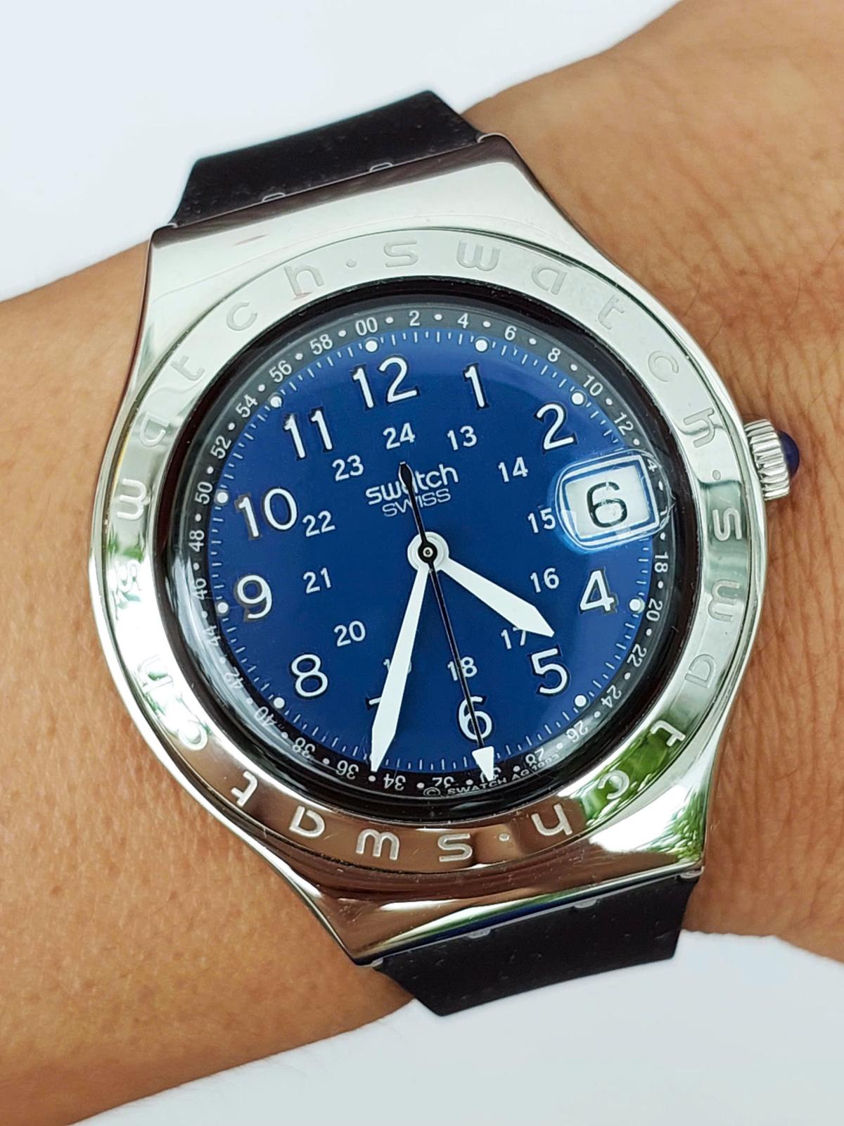 Swatch chính hãng Thụy Sỹ, thương hiệu được nhiều bạn trẻ yêu mến bởi độ bền, sự trẻ trung trong thiết kế,. Màu xanh dương rất đẹp và trẻ trung, vỏ thép đúc đặc nguyên khối, nguyên zin dây khóa hãng, chính hãng Sw.a.tc.h sz tại Thụy Sỹ, máy Pin Thụy Sỹ, khóa zin, dây cao su linh kiện, size 37mm cho Nam tay nhỏ - Độ mới tầm 97%