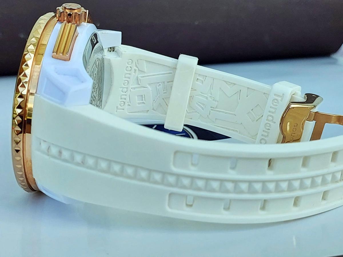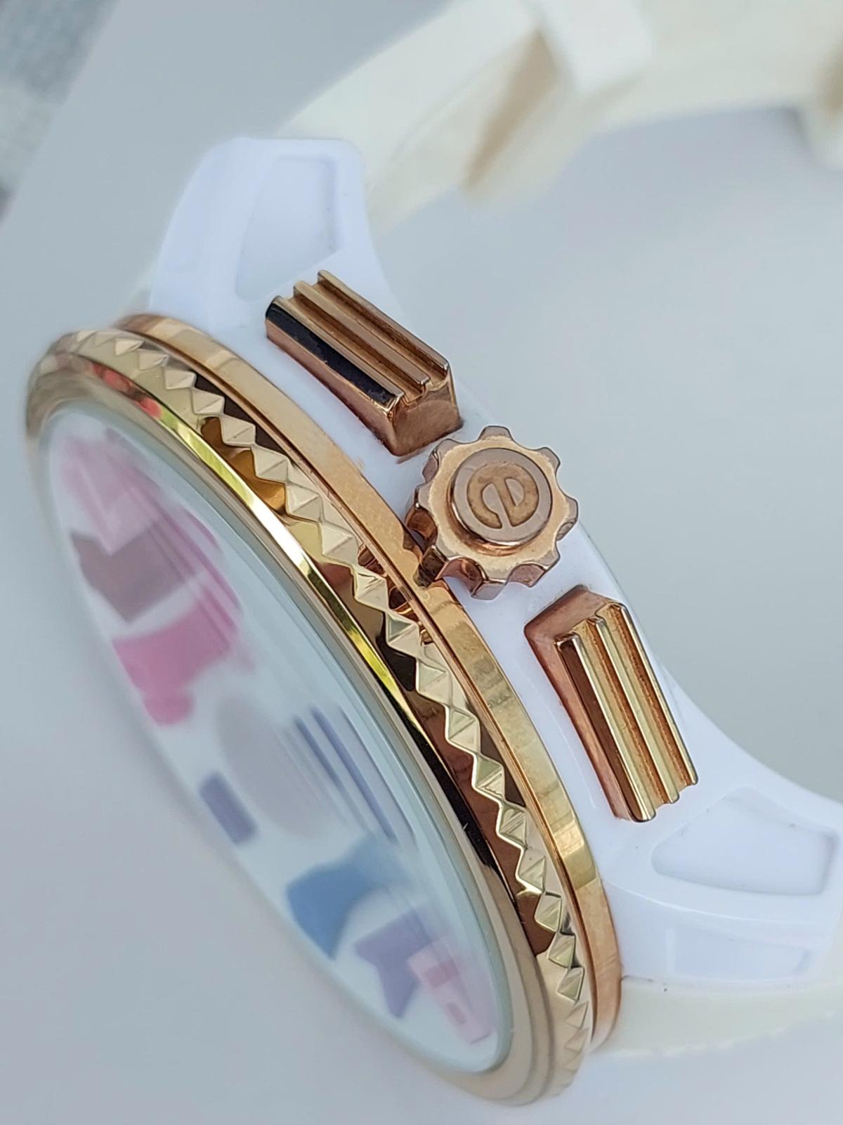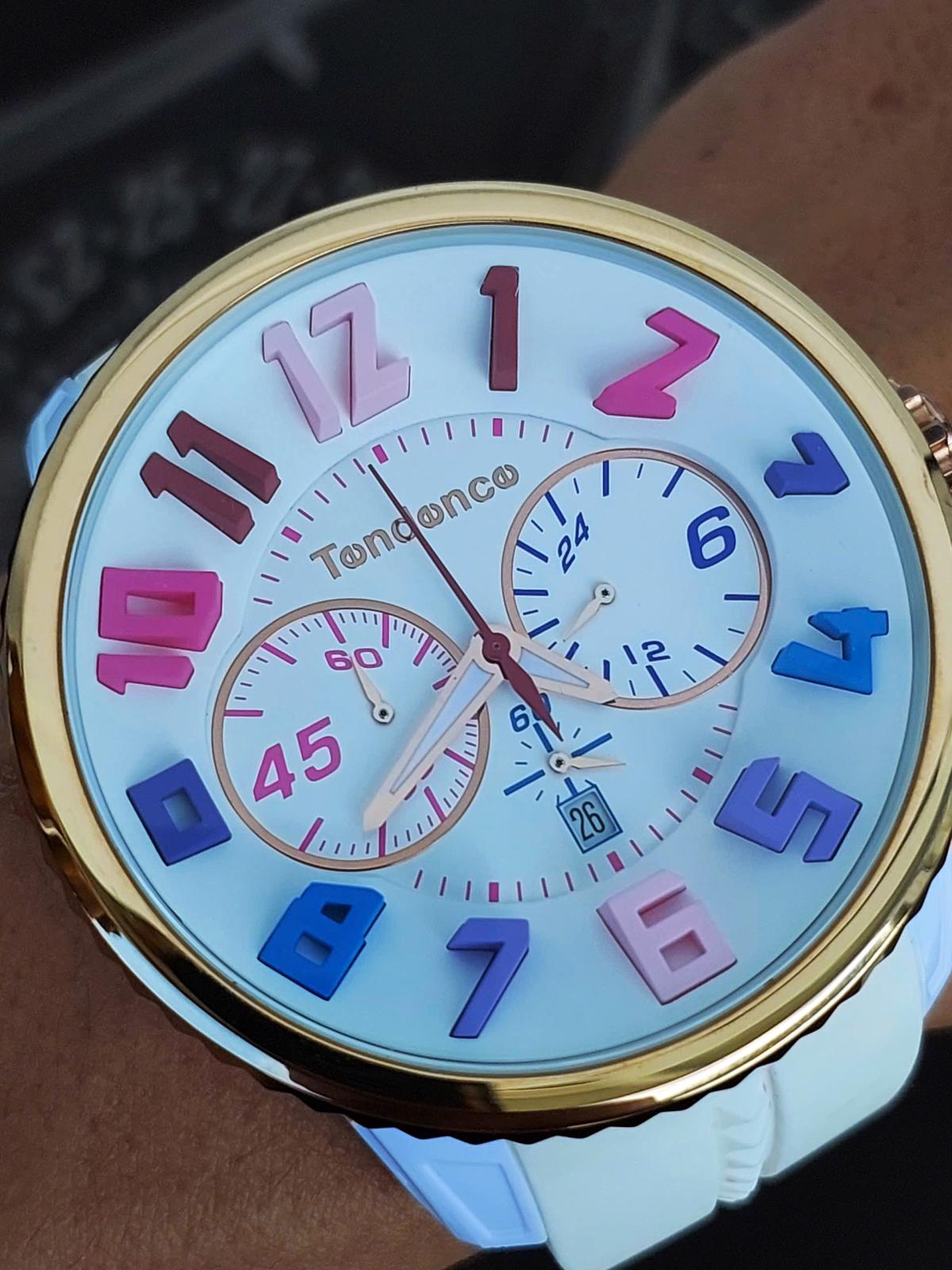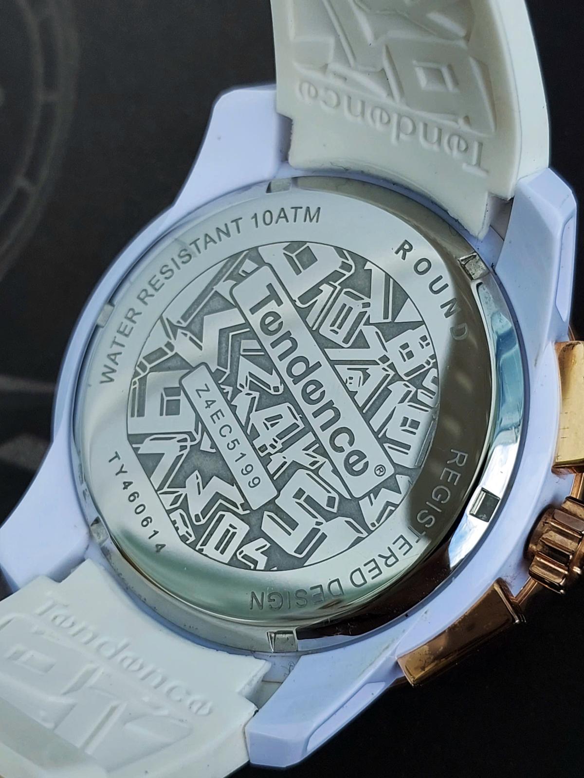 Mang tên "Cầu Vồng" thuộc series nổi bật của thương hiệu Tendence Nhật Bản là một lựa chọn tuyệt vời cho những ai yêu thích phong cách trẻ trung, năng động và thời thượng. Mặt đồng hồ tròn với thiết kế vạch số lớn phong cách 3D độc đáo và đầy màu sắc pastel, bao gồm các gam màu đẹp mắt tạo nên sự tương phản nổi bật và dễ dàng theo dõi thời gian. Thiết kế khá to nhưng với chất liệu polycarbonate cao cấp mang đến cảm giác nhẹ nhàng nhưng vẫn đảm bảo sự bền bỉ và chắc chắn cho sản phẩm. Các mặt đồng hồ phụ được thiết kế rõ ràng, có chức năng chrono, giờ GMT giúp người dùng dễ dàng theo dõi thời gian một cách tiện lợi. Với thiết kế sắc nét và hiện đại, đồng hồ "Cầu Vồng" sẽ là lựa chọn hoàn hảo cho những ai muốn thể hiện cá tính và phong cách sống năng động. ĐH Sx tại Japan, sd máy pin Japan, full hộp, khăn, nguyên bản dây khóa hãng, size 50mm khá to cho Nam hoặc Nữ có size tay phù hợp. Độ mới tàm 97%