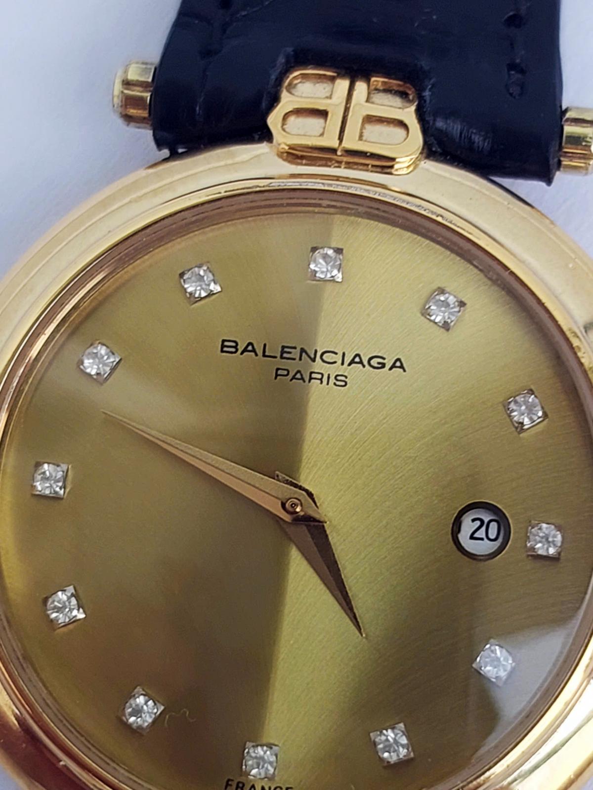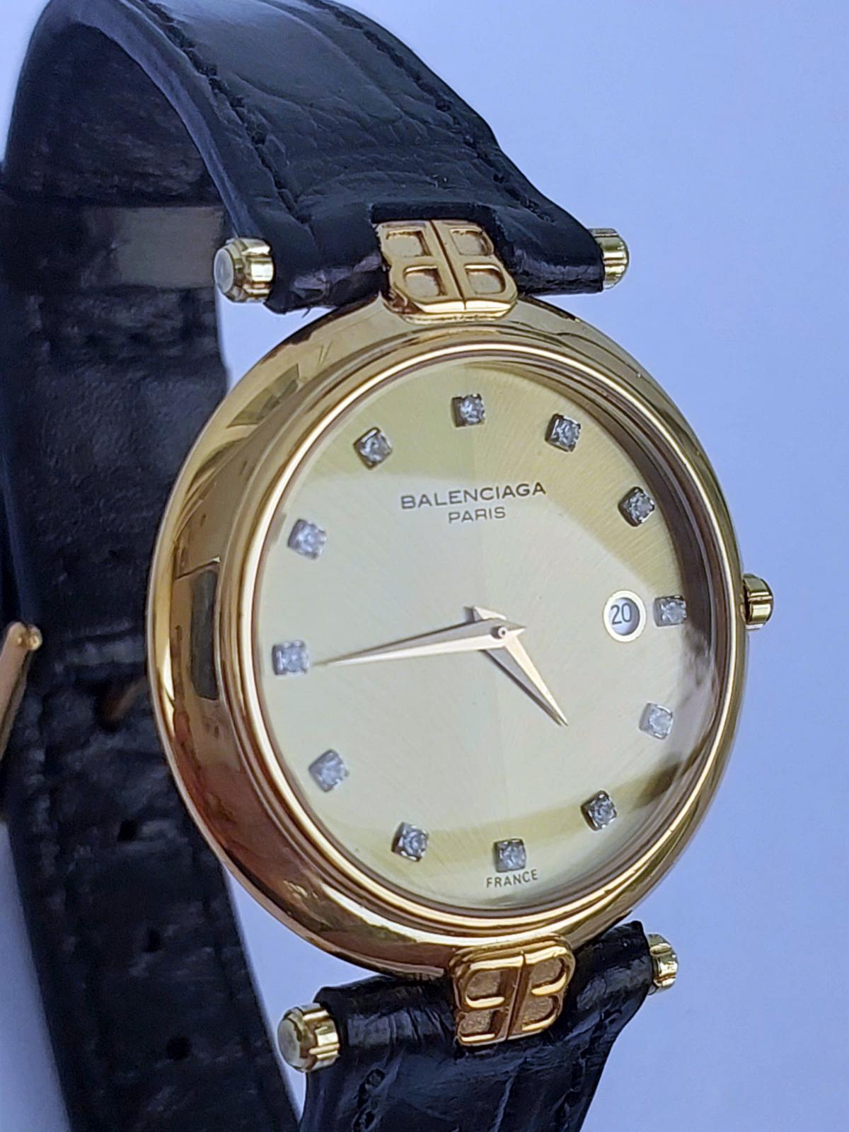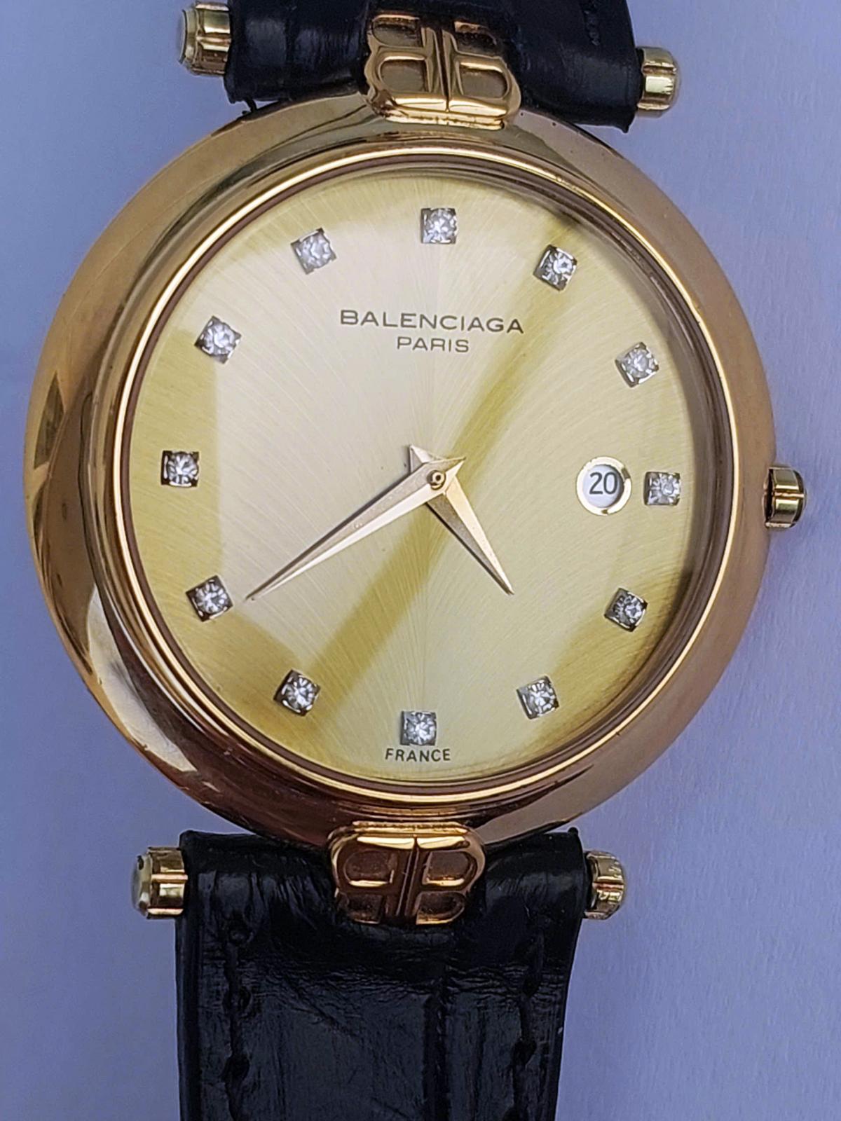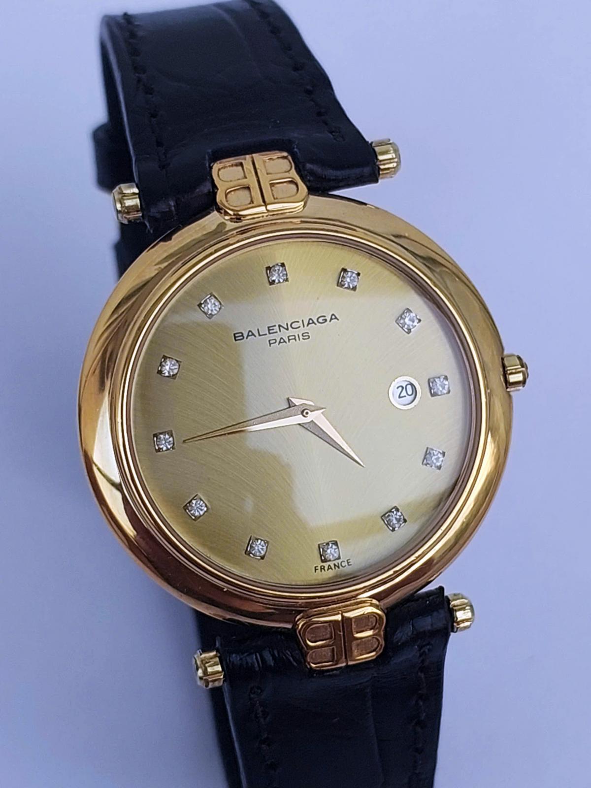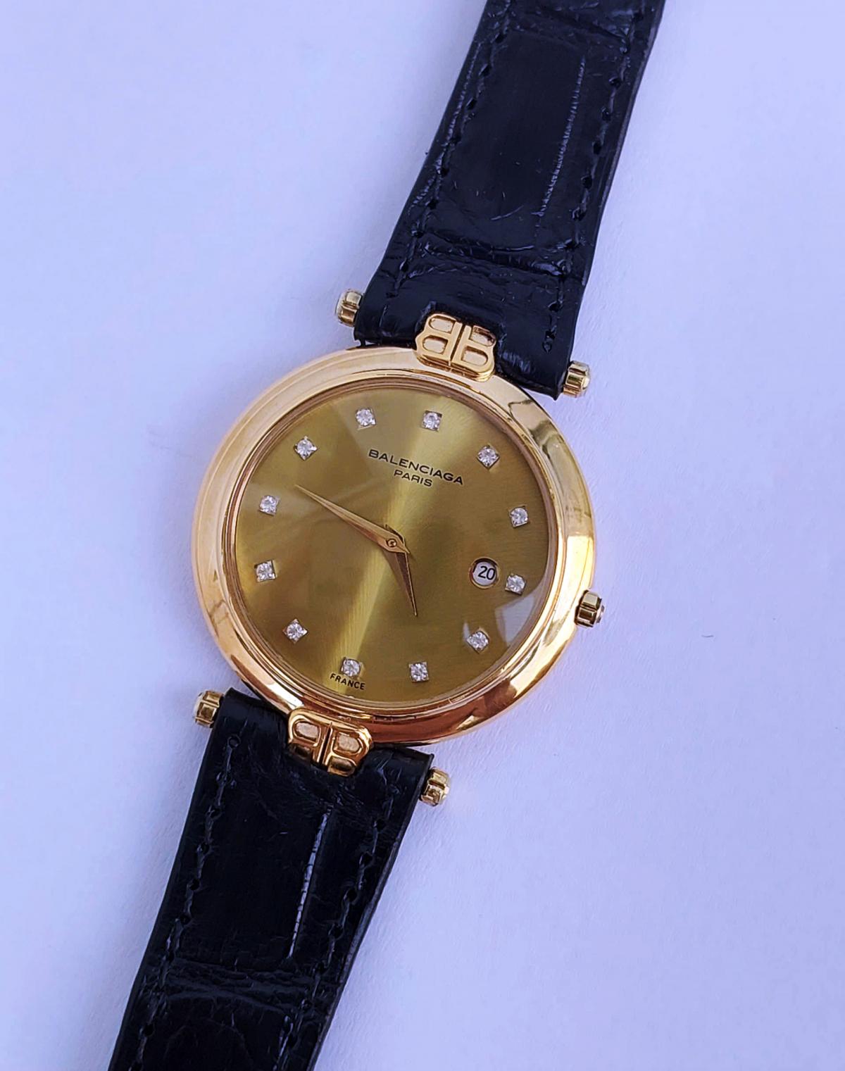 Mẫu nữ nhà Balenci.aga toát lên vẻ đẹp thanh lịch và cổ điển, phù hợp với những quý cô yêu thích sự tinh tế và quý phái. Với mặt số màu vàng sáng vân xương cá chìm độc đáo, dial c đồng hồ được tô điểm bởi những viên kim cương tự nhiên sang trọng tương đương với vị trí 12 cọc giờ, tạo nên nét đẹp lấp lánh mang làm nổi bật vẻ đẹp thanh nhã ko kém phần sang trọng của đồng hồ.. Vỏ đồng hồ mạ vàng 18k với phom dáng mỏng kết hợp cùng dây da đen mềm mại, không chỉ tạo sự hài hòa mà còn mang đến cảm giác nhẹ nhàng và thanh thoát. Chính hãng Balenci.aga Pháp, sd máy pin chuẩn hãng, khóa zin, dây da cá sấu thay thế, size 33mm cho nữ, độ mới tầm 97%.