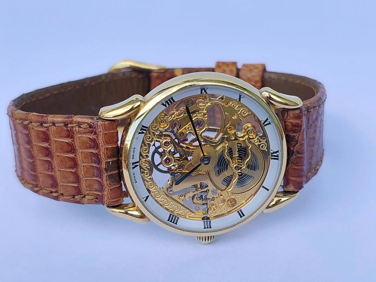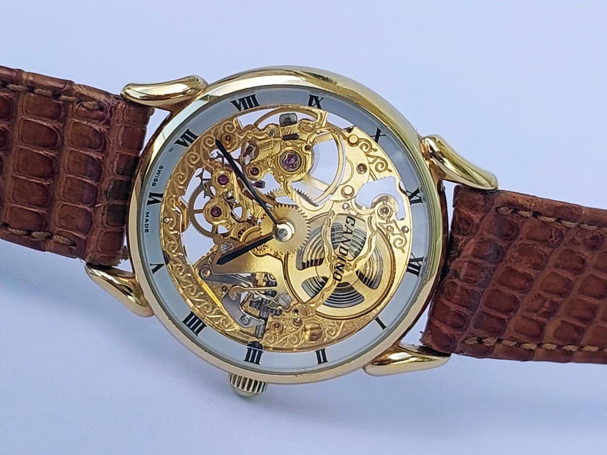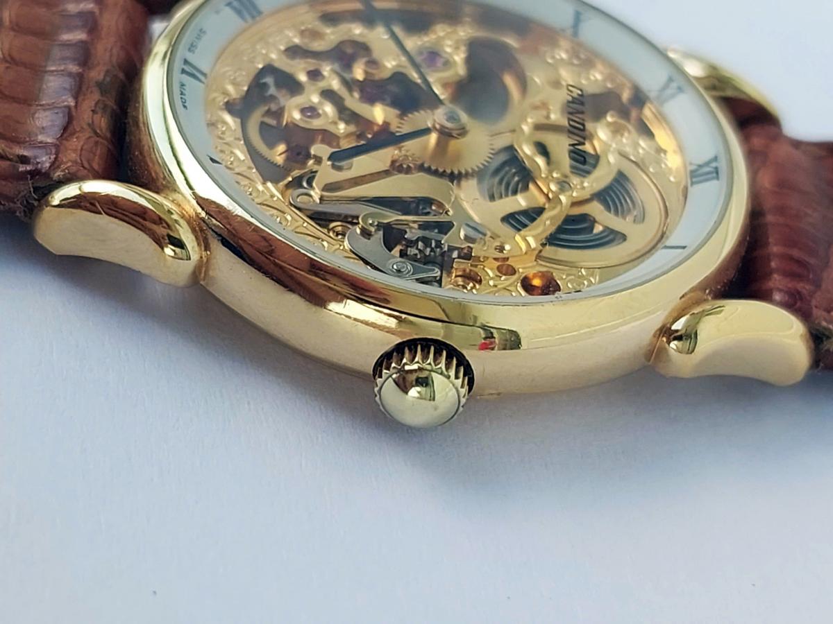 Mang một vẻ đẹp nghệ thuật cơ khí vượt thời gian của thập niên 70s, tựa như một bản nhạc cơ khí du dương và đầy chất thơ nằm êm ái trên cổ tay. Điểm quyến rũ nhất của tuyệt tác này chính là thiết kế lộ hoàn toàn phô diễn trọn vẹn nhịp đập tinh xảo của cỗ máy bên trong qua lớp kính trong suốt, nơi những chi tiết chạm khắc hoa văn uốn lượn mềm mại được phủ sắc vàng , điểm xuyết bởi những chân kính ruby lấp lánh đầy mê hoặc. Bao bọc lấy mặt số nghệ thuật ấy là lớp vỏ mạ vàng sáng bóng cùng vòng số La Mã cổ điển nổi bật trên viền trắng thanh lịch, tạo nên một sự giao thoa hoàn hảo giữa nét hoài cổ và vẻ đẹp vĩnh cửu. Chính hãng Candino sx tại Thụy Sỹ, sd máy cơ lên cót tay Thụy Sỹ, dây khóa zin, size 30mm cho Nữ. Độ mới tầm 97%.