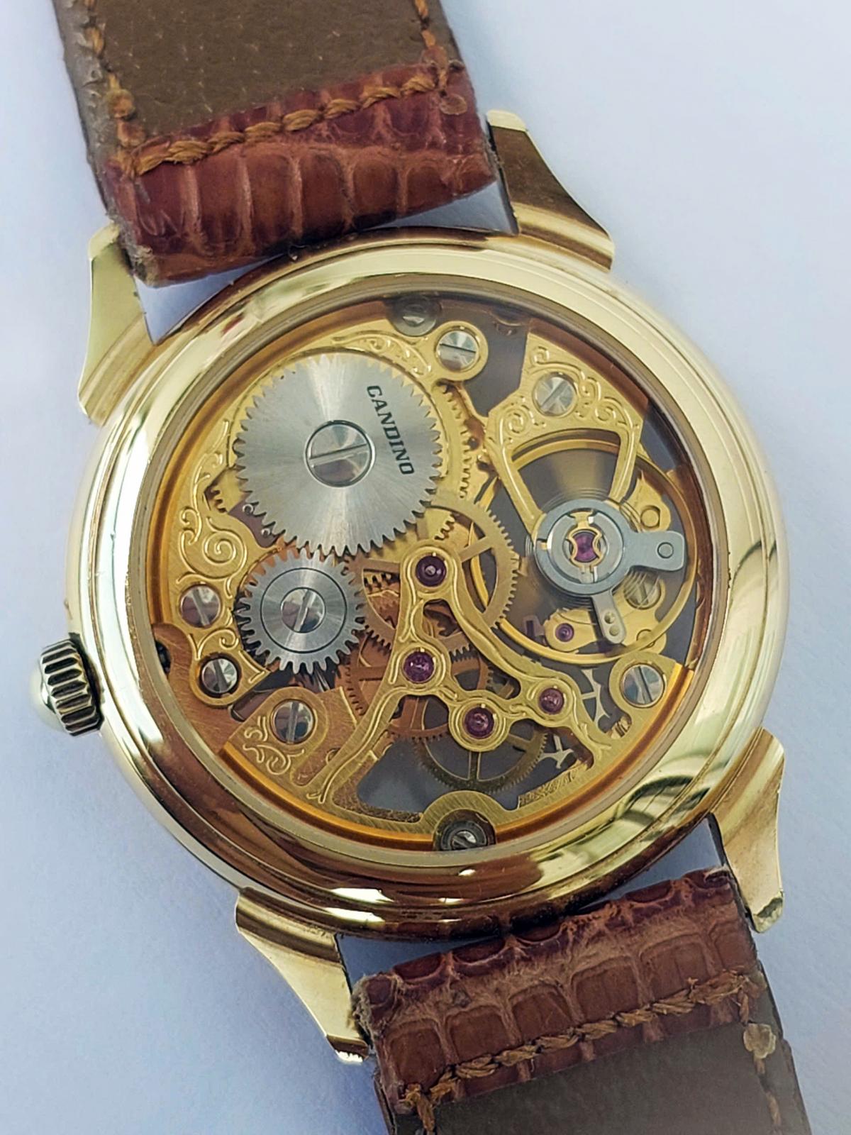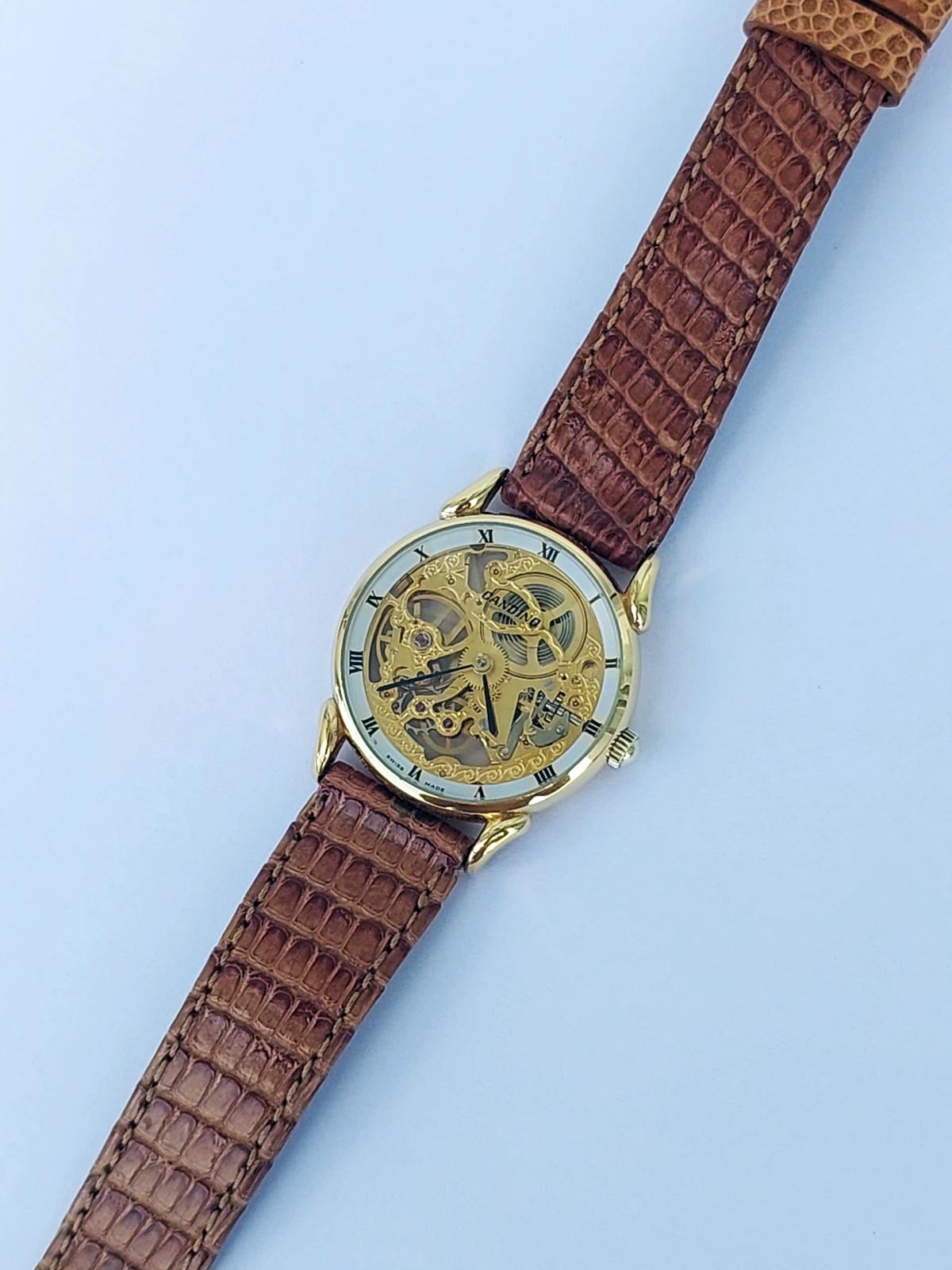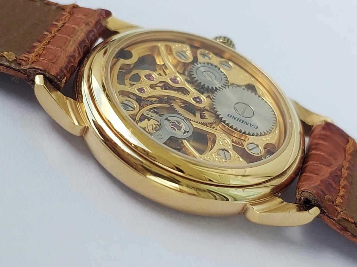 Mang một vẻ đẹp nghệ thuật cơ khí vượt thời gian của thập niên 70s, tựa như một bản nhạc cơ khí du dương và đầy chất thơ nằm êm ái trên cổ tay. Điểm quyến rũ nhất của tuyệt tác này chính là thiết kế lộ hoàn toàn phô diễn trọn vẹn nhịp đập tinh xảo của cỗ máy bên trong qua lớp kính trong suốt, nơi những chi tiết chạm khắc hoa văn uốn lượn mềm mại được phủ sắc vàng , điểm xuyết bởi những chân kính ruby lấp lánh đầy mê hoặc. Bao bọc lấy mặt số nghệ thuật ấy là lớp vỏ mạ vàng sáng bóng cùng vòng số La Mã cổ điển nổi bật trên viền trắng thanh lịch, tạo nên một sự giao thoa hoàn hảo giữa nét hoài cổ và vẻ đẹp vĩnh cửu. Chính hãng Candino sx tại Thụy Sỹ, sd máy cơ lên cót tay Thụy Sỹ, dây khóa zin, size 30mm cho Nữ. Độ mới tầm 97%.