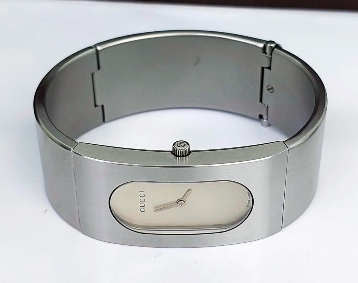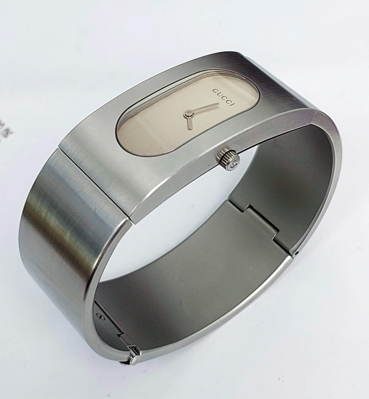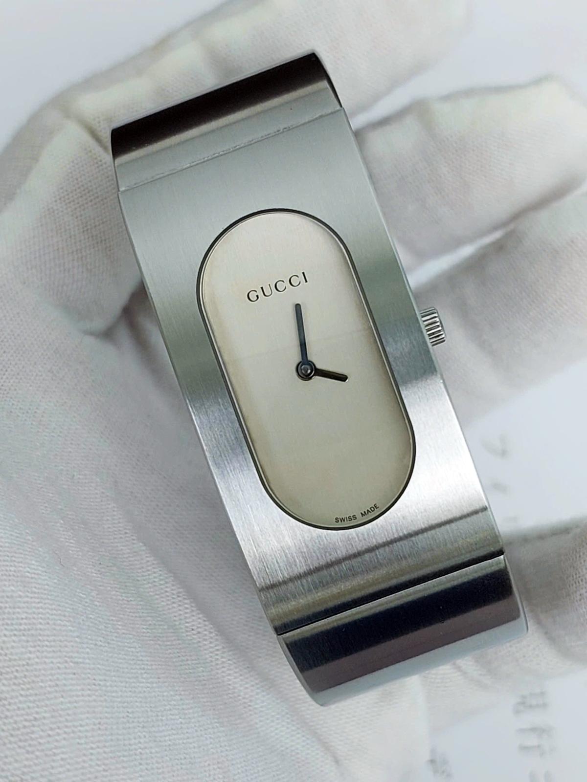 Là sự kết hợp hoàn hảo giữa vẻ đẹp tối giản và sang trọng tinh tế, mang đến vẻ đẹp thanh lịch , cá tính cho người sở hữu. Với vỏ thép không gỉ được chải xước tinh tế, mặt đồng hồ hình oval cùng màu nền trắng kem trang nhã, chiếc đồng hồ này toát lên sự tao nhã và thanh thoát. Chất liệu thép không gỉ cao cấp, siêu bền, không chỉ giúp đồng hồ bền bỉ mà còn mang lại vẻ ngoài hiện đại, đầy cuốn hút. Kim đồng hồ được thiết kế đơn giản, thanh mảnh, tạo nên sự tương phản hoàn hảo với mặt đồng hồ sáng màu, giúp người dùng dễ dàng xem giờ. Đặc biệt, phần dây đồng hồ dạng vòng ôm trọn cổ tay, mang lại cảm giác vừa vặn và thoải mái, thích hợp với nhiều phong cách thời trang khác nhau. Chính hãng Gu.cci sx tại Thụy Sỹ, sd máy Pin Thụy Sỹ, nguyên bản, Chiều dài size mặt 40mm, rộng 21mm. Vòng dây vòng thép thích hợp cho size tay nữ từ 16,5 cm trở xuống. Độ mới tầm 98%