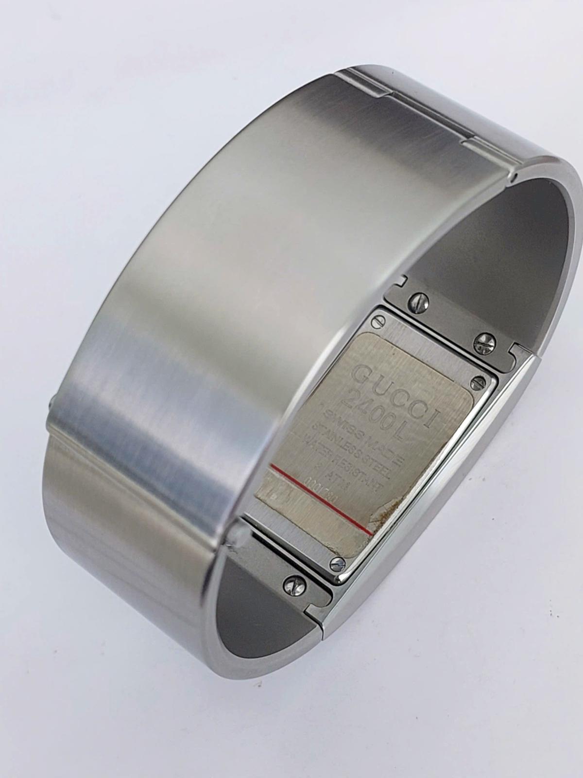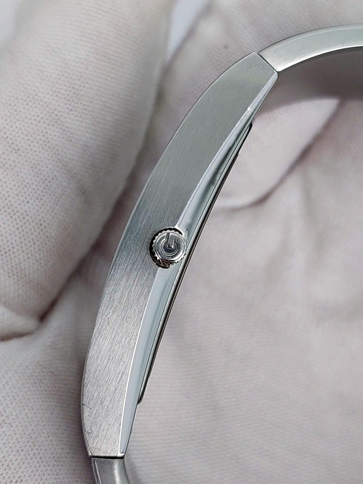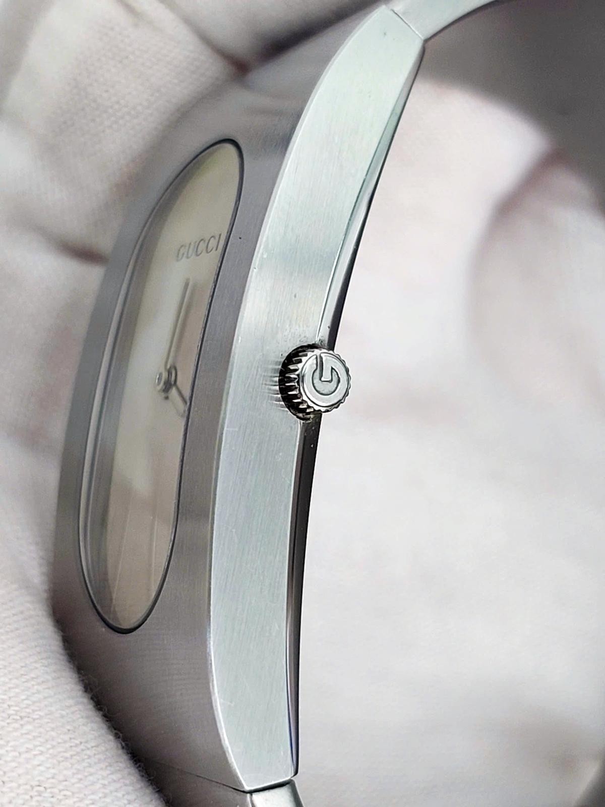 Là sự kết hợp hoàn hảo giữa vẻ đẹp tối giản và sang trọng tinh tế, mang đến vẻ đẹp thanh lịch , cá tính cho người sở hữu. Với vỏ thép không gỉ được chải xước tinh tế, mặt đồng hồ hình oval cùng màu nền trắng kem trang nhã, chiếc đồng hồ này toát lên sự tao nhã và thanh thoát. Chất liệu thép không gỉ cao cấp, siêu bền, không chỉ giúp đồng hồ bền bỉ mà còn mang lại vẻ ngoài hiện đại, đầy cuốn hút. Kim đồng hồ được thiết kế đơn giản, thanh mảnh, tạo nên sự tương phản hoàn hảo với mặt đồng hồ sáng màu, giúp người dùng dễ dàng xem giờ. Đặc biệt, phần dây đồng hồ dạng vòng ôm trọn cổ tay, mang lại cảm giác vừa vặn và thoải mái, thích hợp với nhiều phong cách thời trang khác nhau. Chính hãng Gu.cci sx tại Thụy Sỹ, sd máy Pin Thụy Sỹ, nguyên bản, Chiều dài size mặt 40mm, rộng 21mm. Vòng dây vòng thép thích hợp cho size tay nữ từ 16,5 cm trở xuống. Độ mới tầm 98%