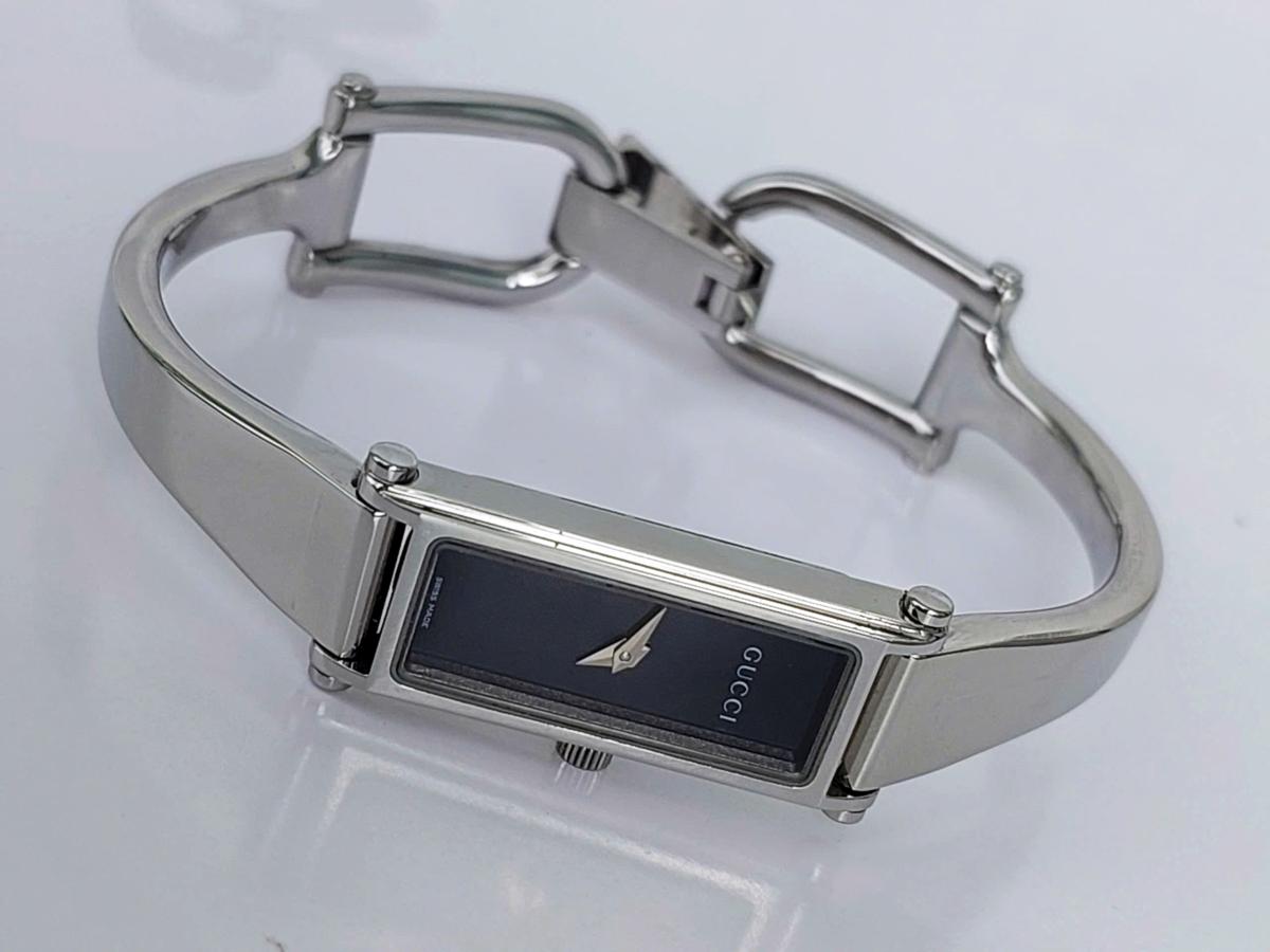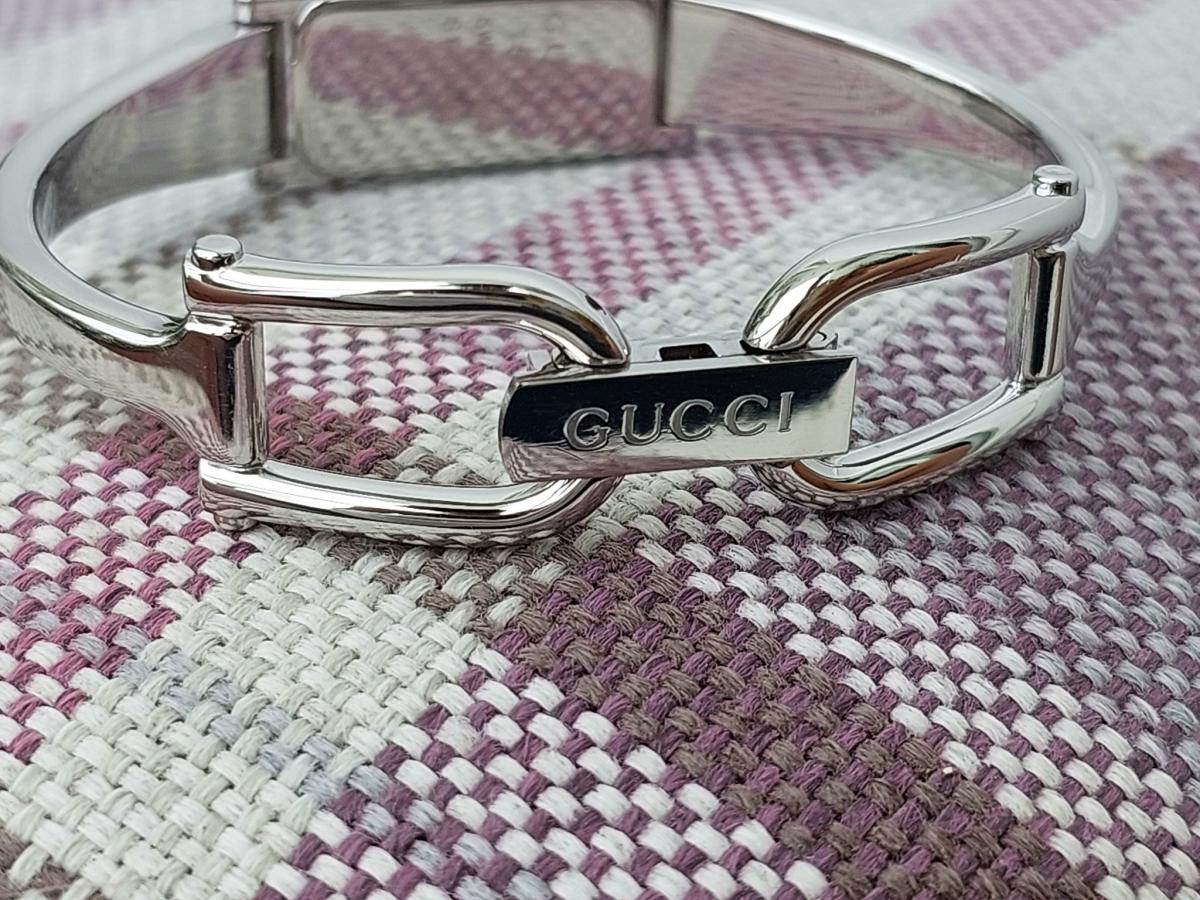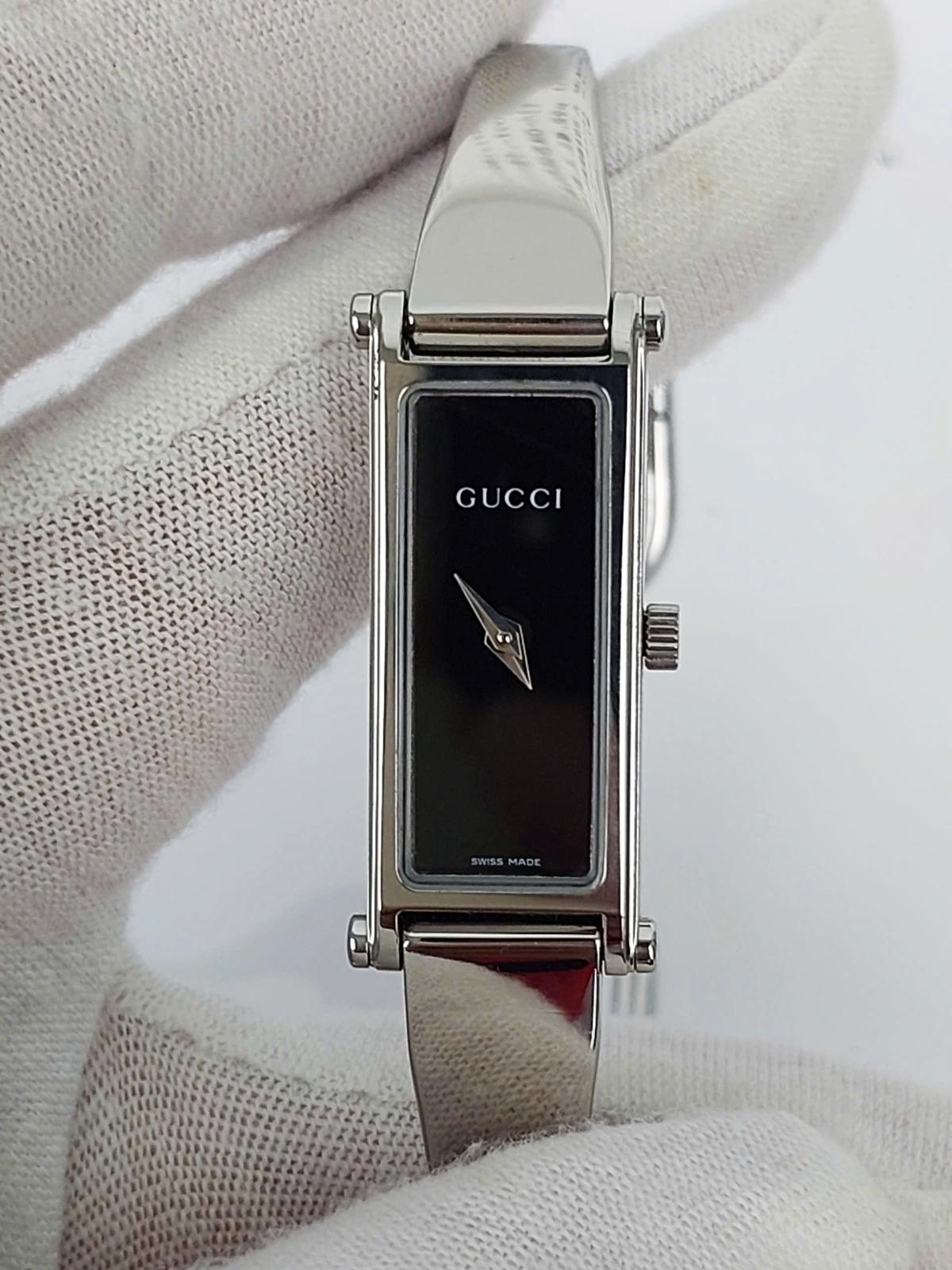 Với thiết kế mặt chữ nhật hài hòa, mẫu Gu.cci này toát lên vẻ đẹp tinh tế và nhẹ nhàng. Thiết kế tối giản nhưng đầy cuốn hút, là sự lựa chọn hoàn hảo cho những quý cô yêu thích phong cách cổ điển và thanh lịch. Mặt số đen bóng huyền bí kết hợp cùng kim thép lá lúa nổi bật. Dáng kiềng chất liệu kim loại sáng bóng, được chế tác tỉ mỉ, mang lại cảm giác chắc chắn nhưng không kém phần duyên dáng. Chính hãng Gu.cci sx tại Thụy Sỹ, sd máy Pin Thụy Sỹ, nguyên bản, size 12x30mm, độ rộng kiềng phù hợp cho tay nữ từ 16 - 17,5mm, độ mới tầm 97-98%.