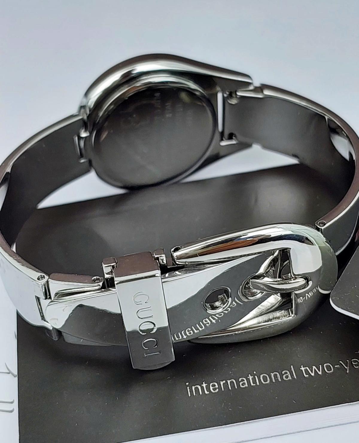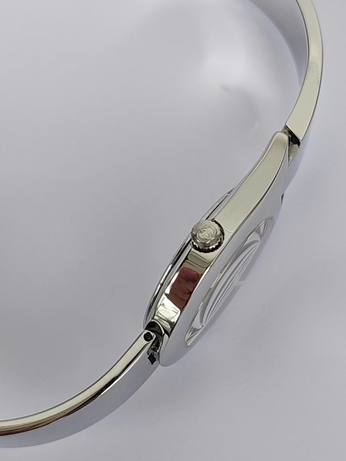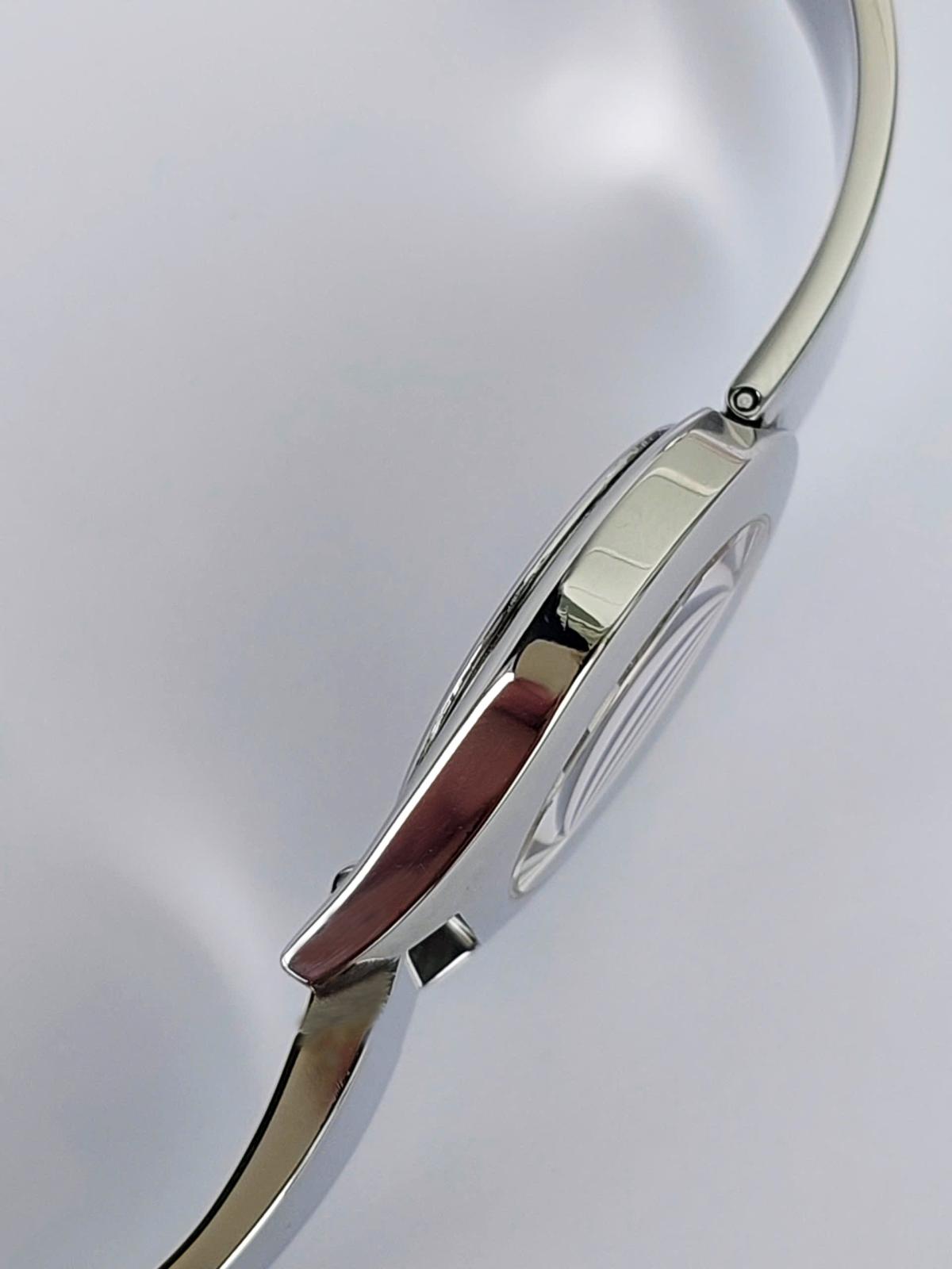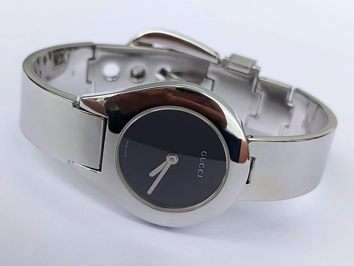Mẫu nữ Gu.cci mang đậm phong cách thời trang cao cấp đến từ nước Ý, với thiết kế mặt số nhỏ nhắn, phom giọt nước mềm mại, tôn lên sự dịu dàng và quý phái. Dây kim loại sáng bóng dạng lắc tay cực kỳ nữ tính và sang trọng và có dạng gài như dây da bởi 1 thiết kế thông minh, tiện lợi. Dia mặt đen tối giản làm nổi bật kim chỉ giờ và logo Gu.cci sắc sảo. Một mẫu nữ tuyệt hảo giúp tôn lên cổ tay của phái đẹp một cách đầy tinh tế, phù hợp cho cả đi tiệc, công sở hay dạo phố. Chính hãng Gu.cci sx tại Thụy Sỹ, sd máy Pin Thụy Sỹ, , nguyên bản size 26mm, độ mới cao tầm 98%.