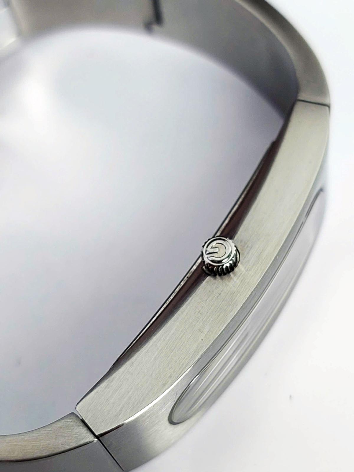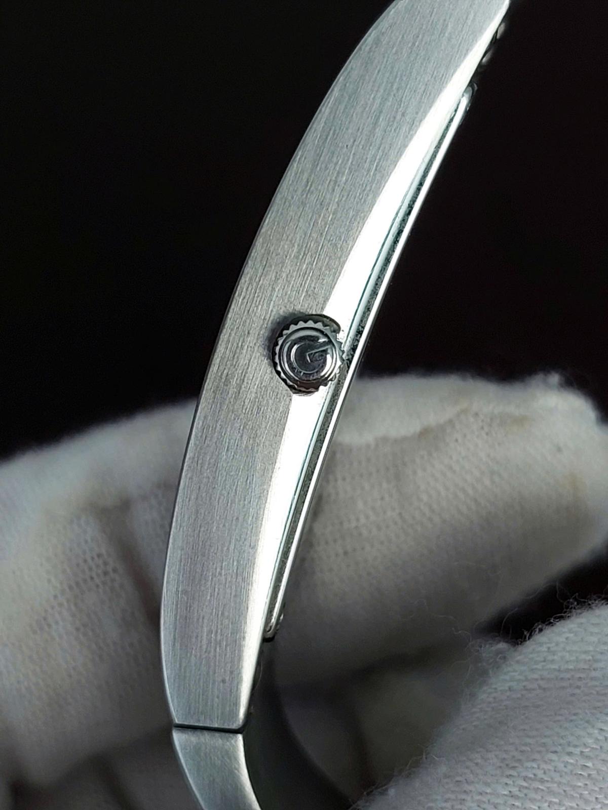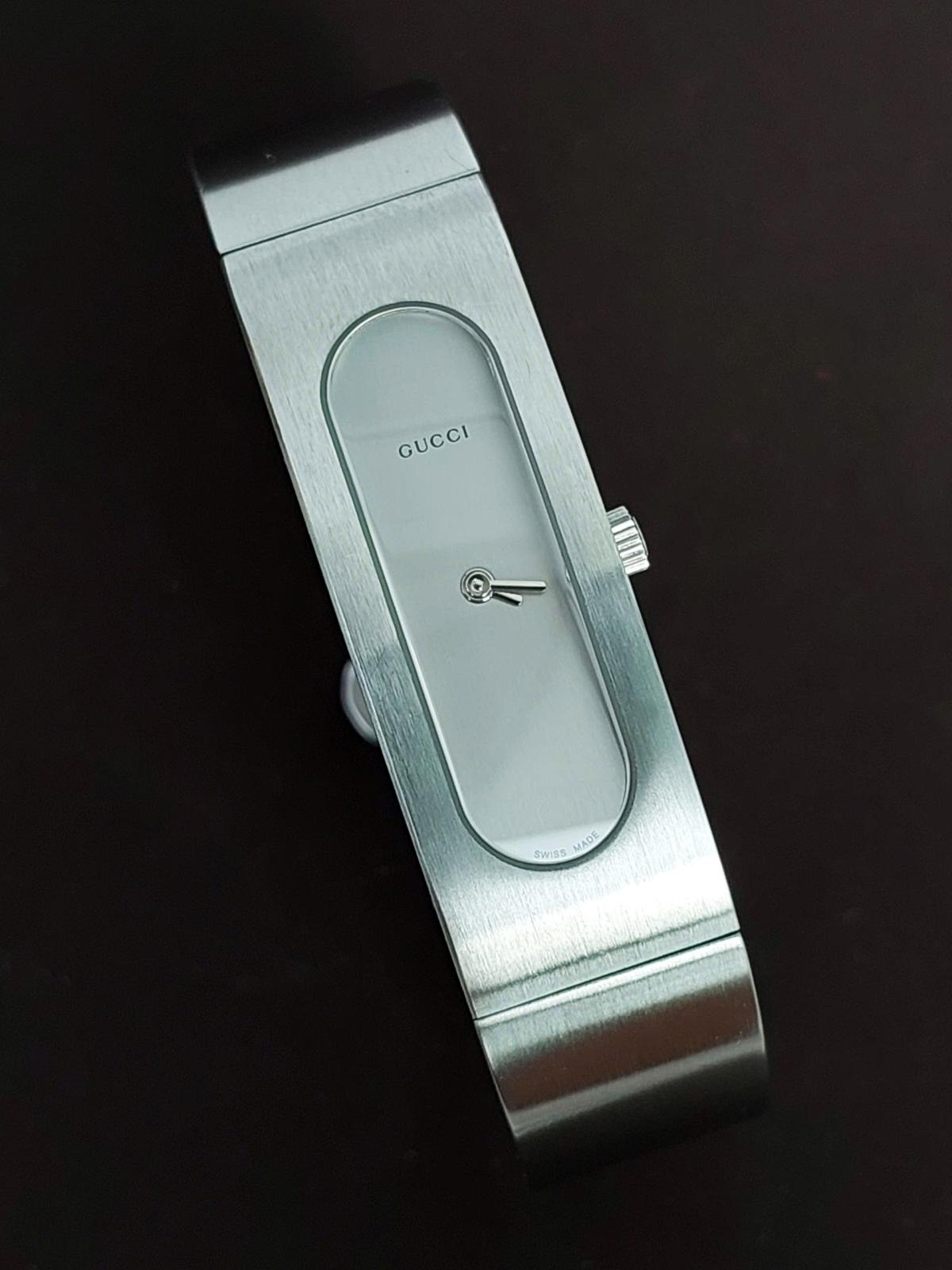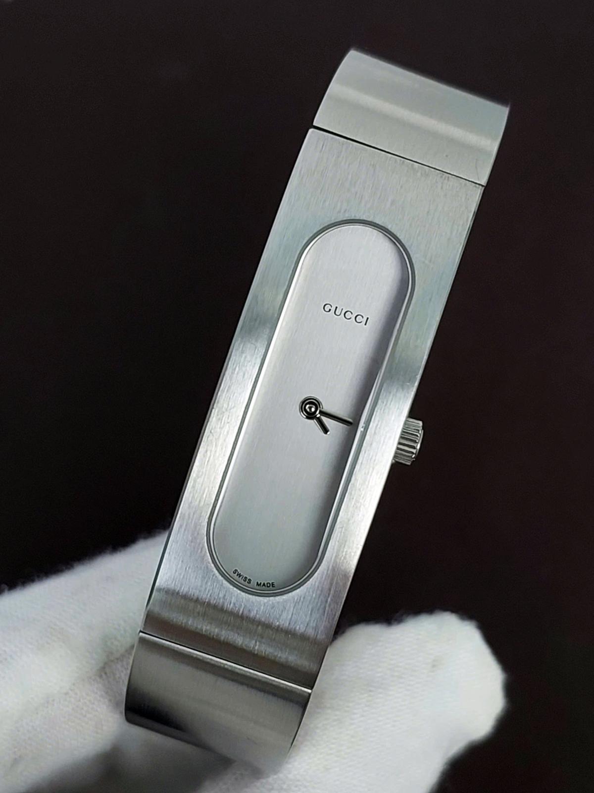 Là sự kết hợp hoàn hảo giữa vẻ đẹp tối giản và sang trọng tinh tế, mang đến vẻ đẹp thanh lịch , cá tính cho người sở hữu. Với vỏ thép không gỉ được chải xước tinh tế, mặt kính đồng hồ hình oval cùng màu nền trắng bạc trang nhã, này toát lên sự tao nhã và thanh thoát. Chất liệu thép không gỉ cao cấp, siêu bền, không chỉ giúp đồng hồ bền bỉ mà còn mang lại vẻ ngoài hiện đại, đầy cuốn hút. Kim đồng hồ được thiết kế đơn giản, thanh mảnh, tạo nên sự tương phản hoàn hảo với mặt đồng hồ sáng màu, giúp người dùng dễ dàng xem giờ. Đặc biệt, phần dây đồng hồ dạng vòng ôm trọn cổ tay, mang lại cảm giác vừa vặn và thoải mái, thích hợp với nhiều phong cách thời trang khác nhau. Chính hãng Gu.cci sx tại Thụy Sỹ, sd máy Pin Thụy Sỹ, nguyên bản, Chiều dài size mặt 40mm, rộng 14 mm. Vòng dây vòng thép thích hợp cho size tay nữ từ 16,5 - 18cm . Độ mới cao tầm 98%
