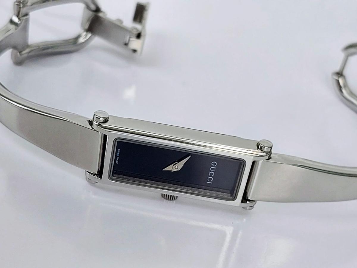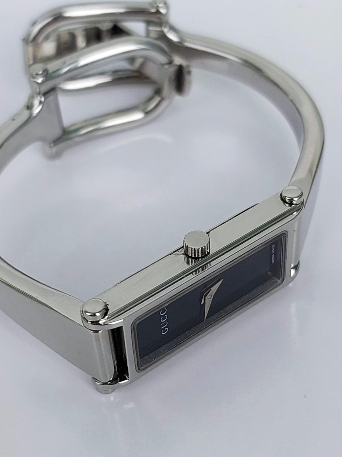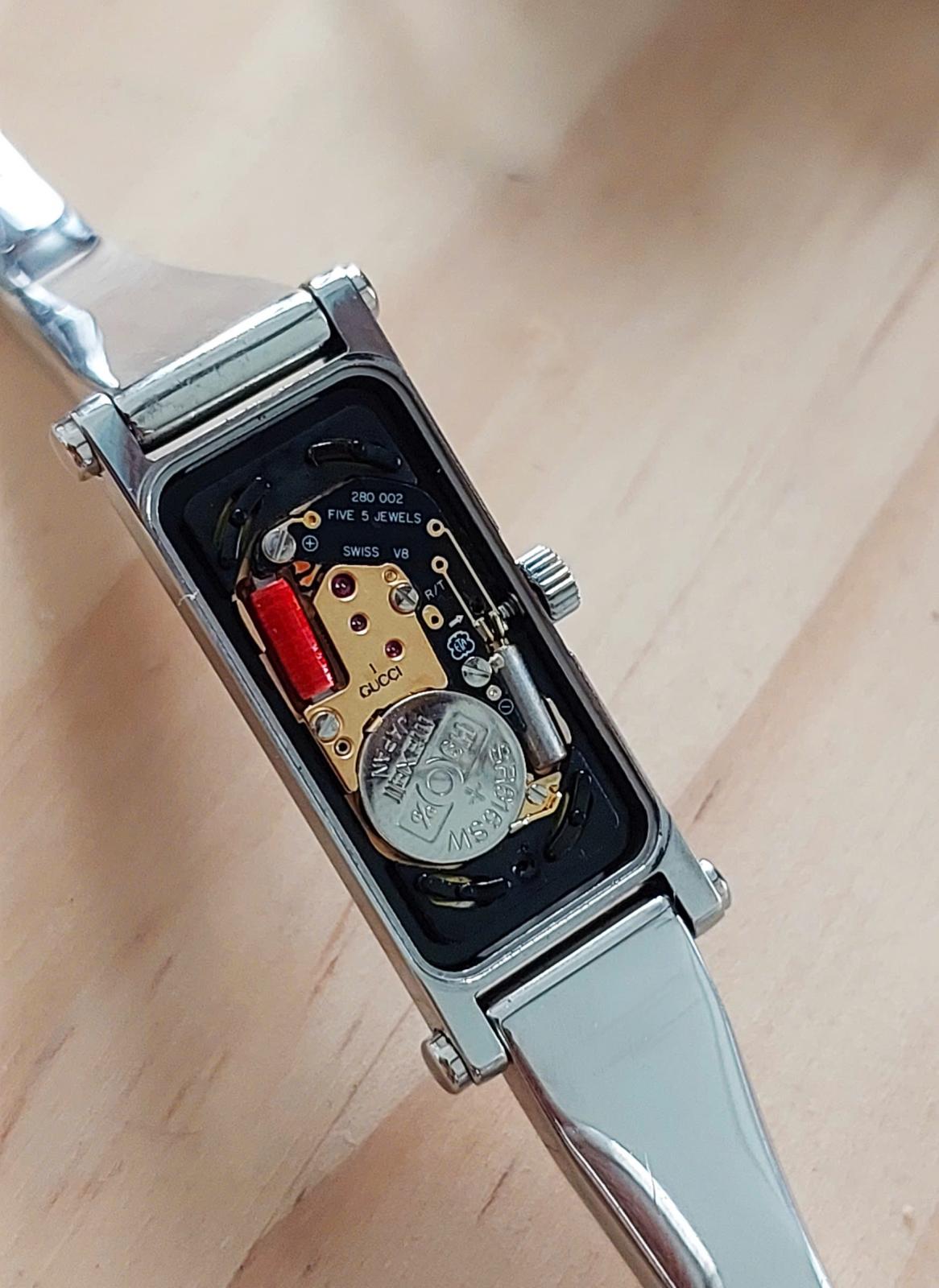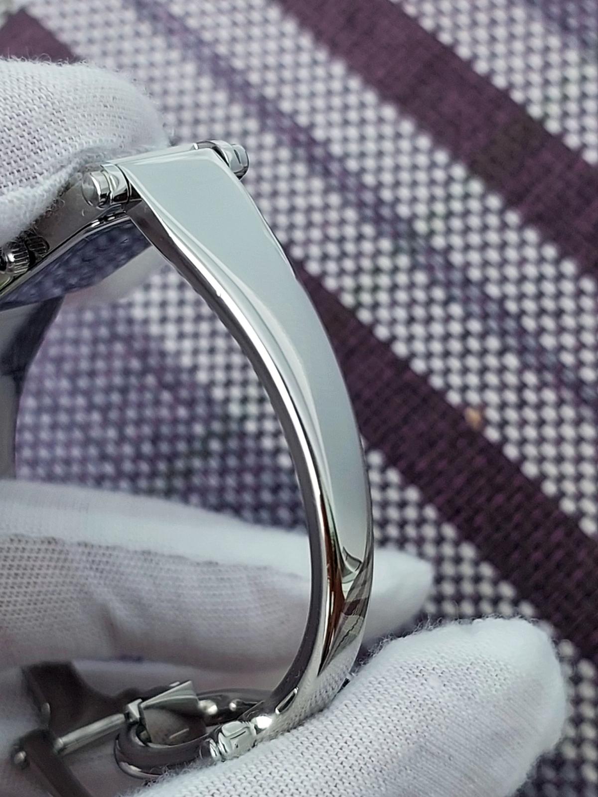 Với thiết kế mặt chữ nhật hài hòa, mẫu Gu.cci này toát lên vẻ đẹp tinh tế và nhẹ nhàng. Thiết kế tối giản nhưng đầy cuốn hút, là sự lựa chọn hoàn hảo cho những quý cô yêu thích phong cách cổ điển và thanh lịch. Mặt số đen bóng huyền bí kết hợp cùng kim thép lá lúa nổi bật. Dáng kiềng chất liệu kim loại sáng bóng, được chế tác tỉ mỉ, mang lại cảm giác chắc chắn nhưng không kém phần duyên dáng. Chính hãng Gu.cci sx tại Thụy Sỹ, sd máy Pin Thụy Sỹ, nguyên bản, size 12x30mm, độ rộng kiềng phù hợp cho tay nữ từ 16 - 17,5mm, độ mới tầm 97-98%.