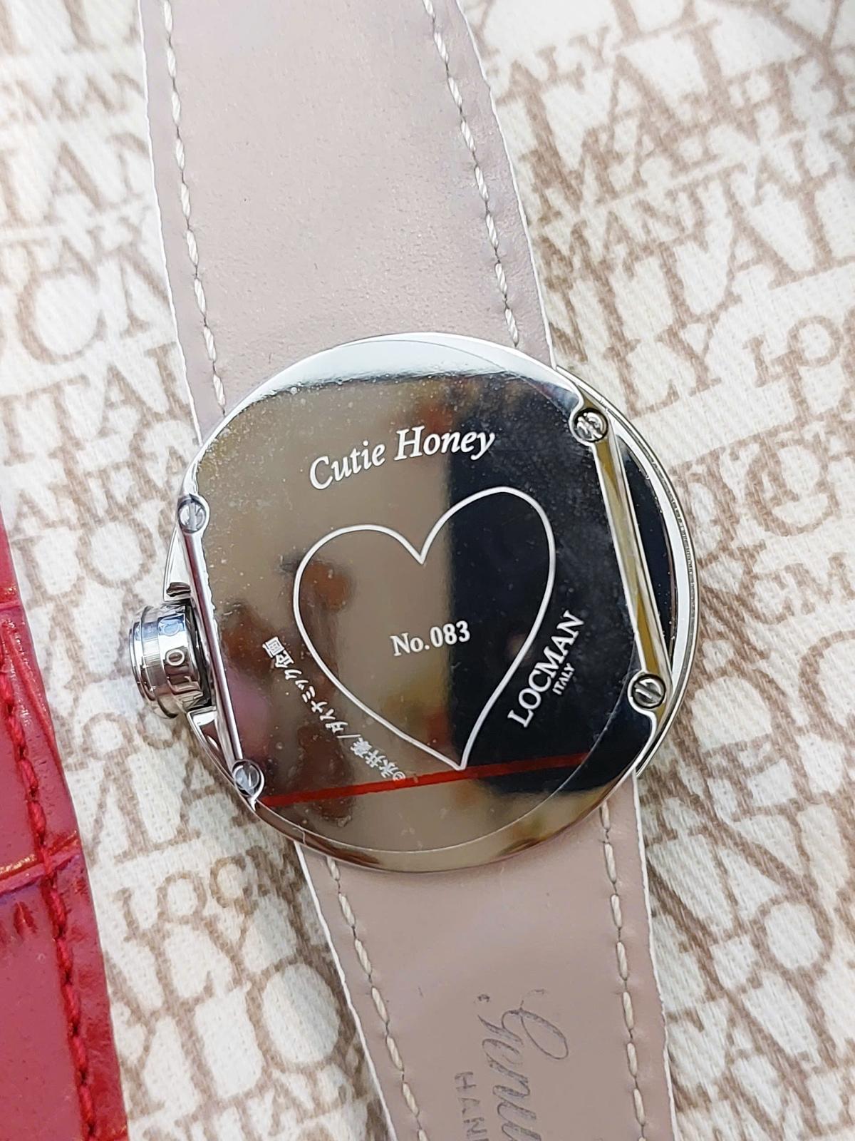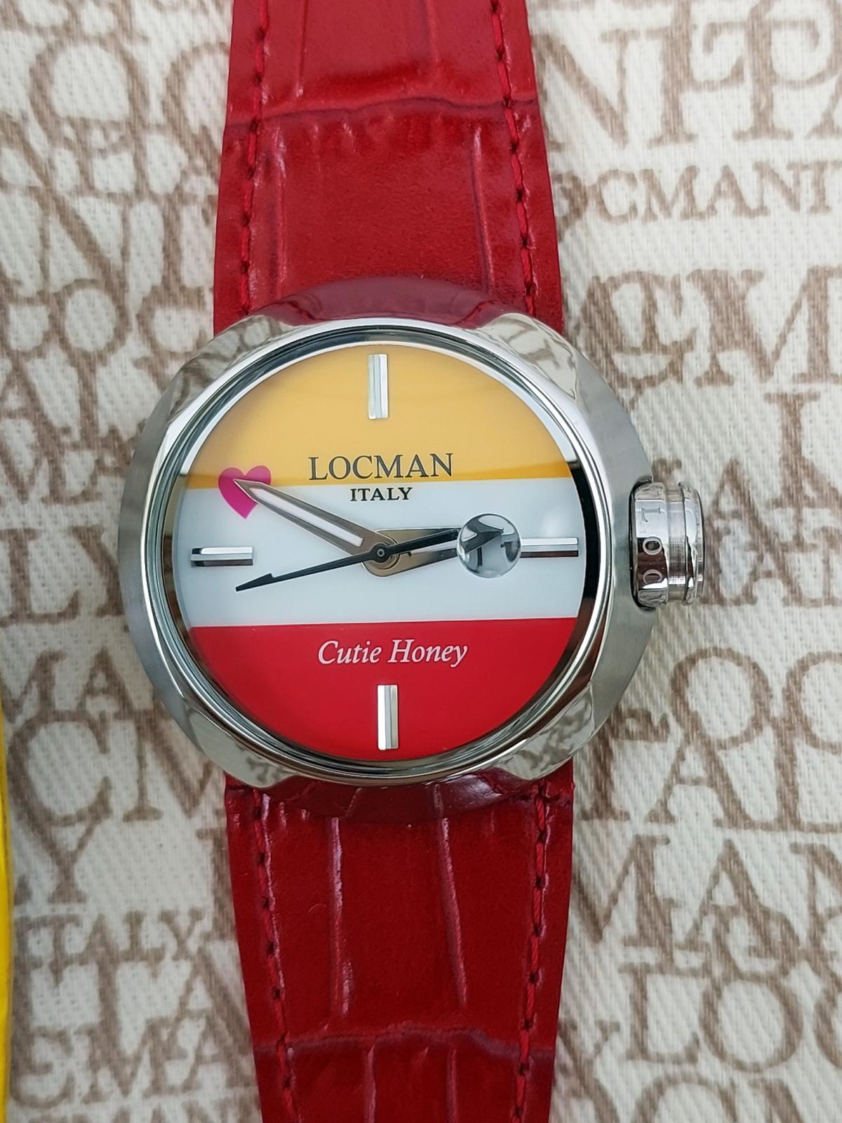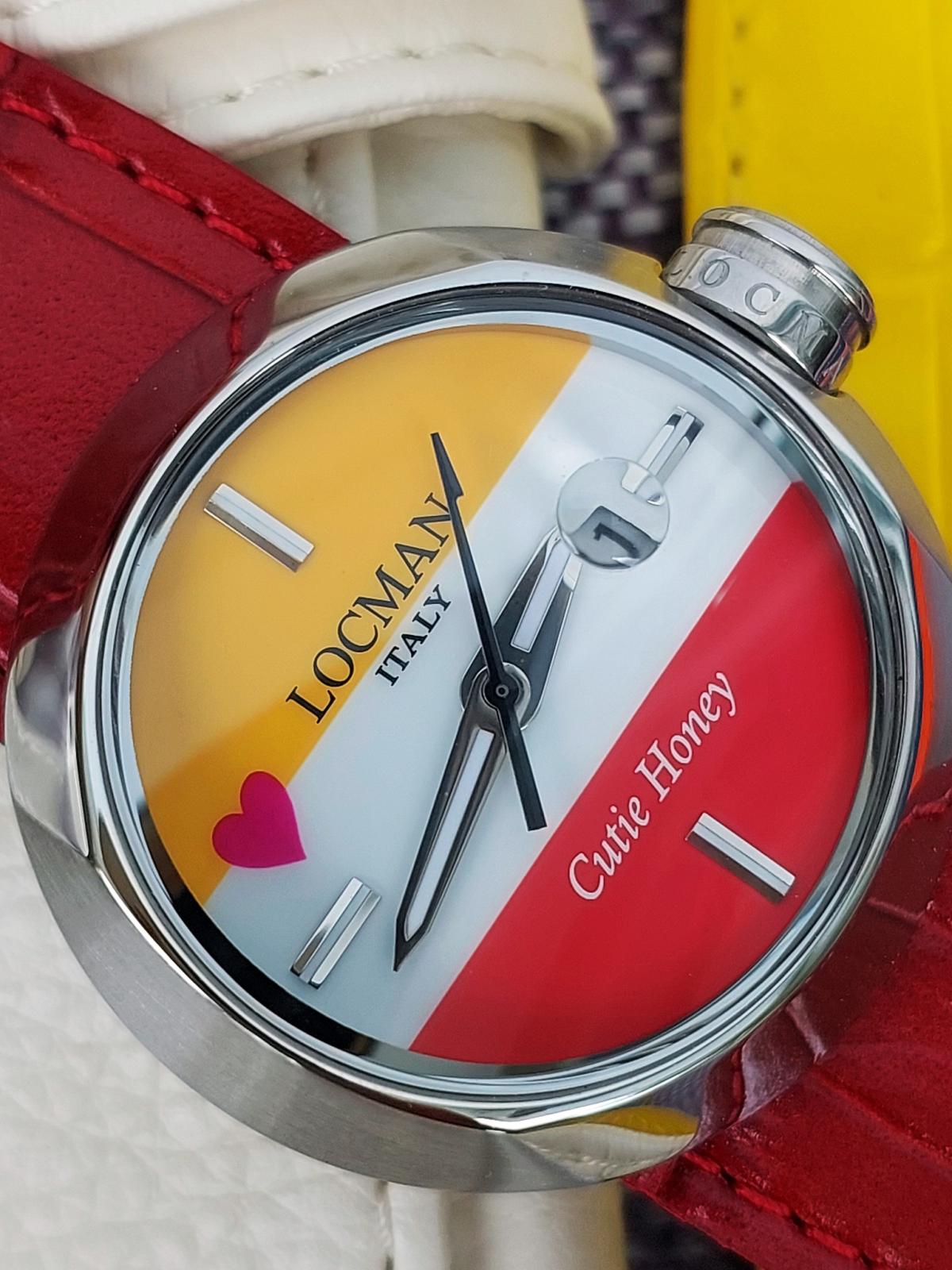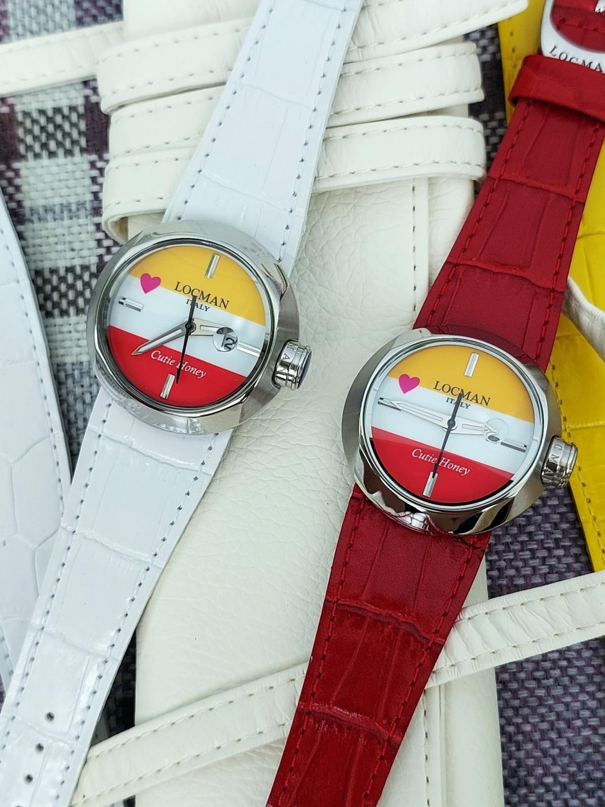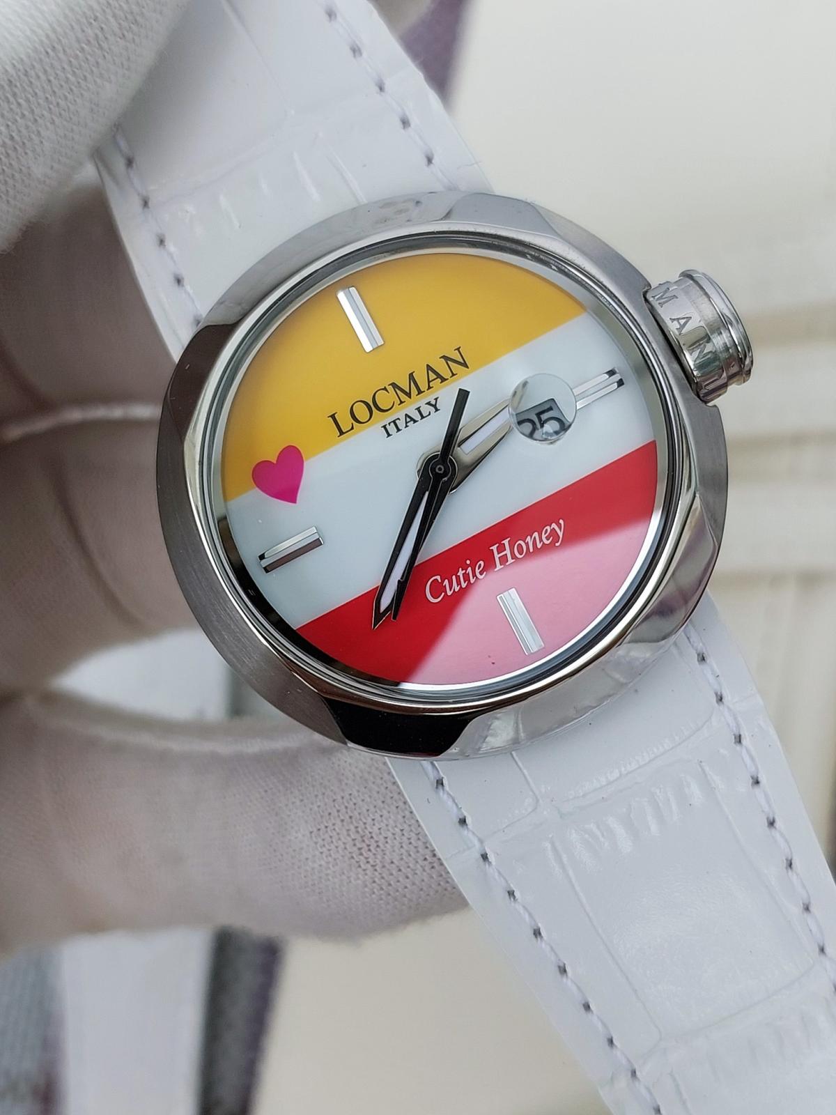 100 chiếc sx Giới hạn được sx cho mẫu đồng hồ Ý siêu dễ thương đánh dấu sự hợp tác của thương hiệu Locman Ý và họa sĩ truyện tranh nổi tiếng người Nhật Go Nagai. Chủ đề là "Cutie Honey" và chiếc đồng hồ cũng thật ngọt ngào như cái tên của nó. 3 màu Đỏ, Trắng và Vàng mịn màng, sắc nét được phối cực chuẩn chia đều mặt số theo chiều ngang và 1 trái tim màu Hồng đặt cạnh bên tạo sự thu hút khó cưỡng bởi sự đáng yêu, duyên dáng đậm chất Ý hòa quyện phong cách manga Nhật Bản. Bộ dây handmade sành điệu zin hãng gồm 3 màu kèm theo để thay đổi tùy thích (Có kèm theo vít để mở ốc đổi dây), Mặt đáy số thứ tự limited và tên của sản phẩm. Chính hãng Locman sx tại Ý, sd máy Pin chuẩn hãng, hàng mới chưa sd gồm bao da zin, 3 dây zin Đỏ, Vàng, Trắng đính kèm, size 36mm.