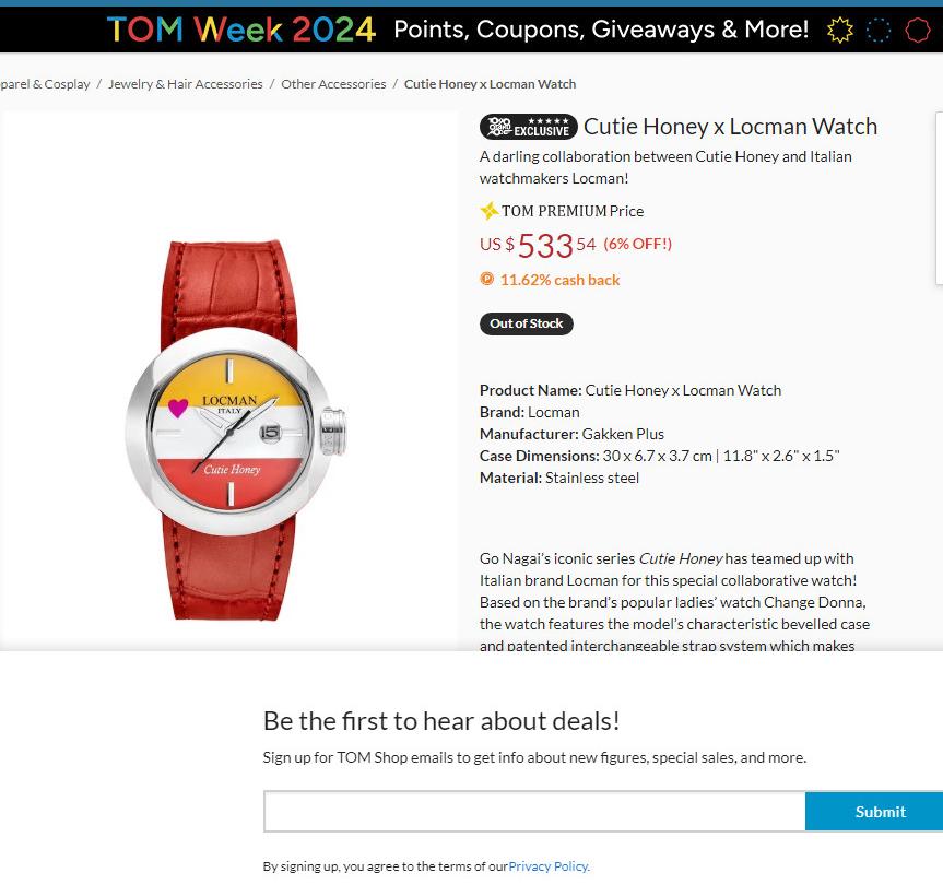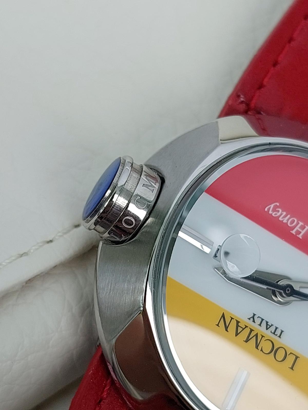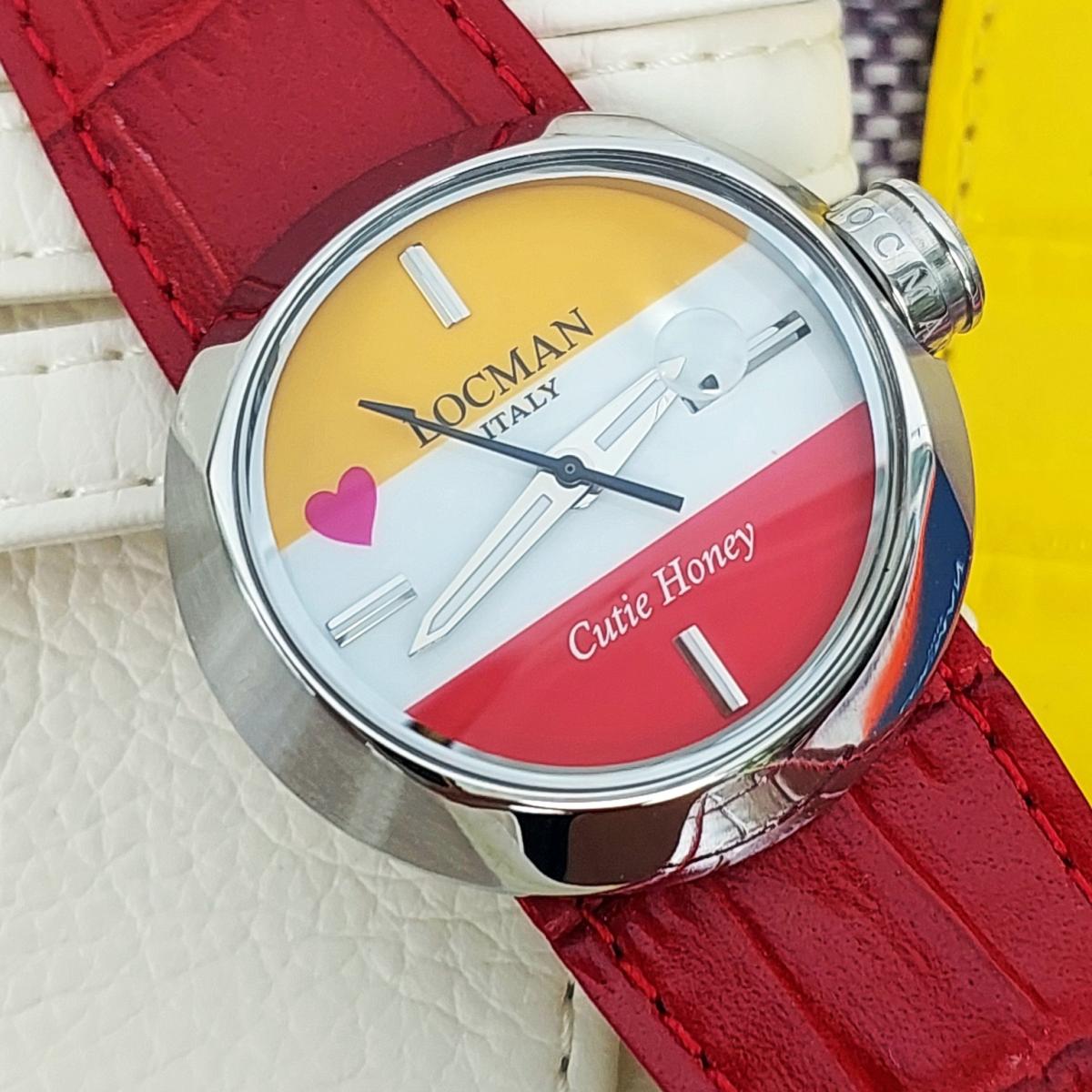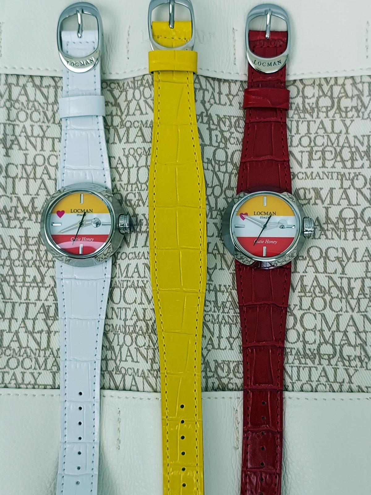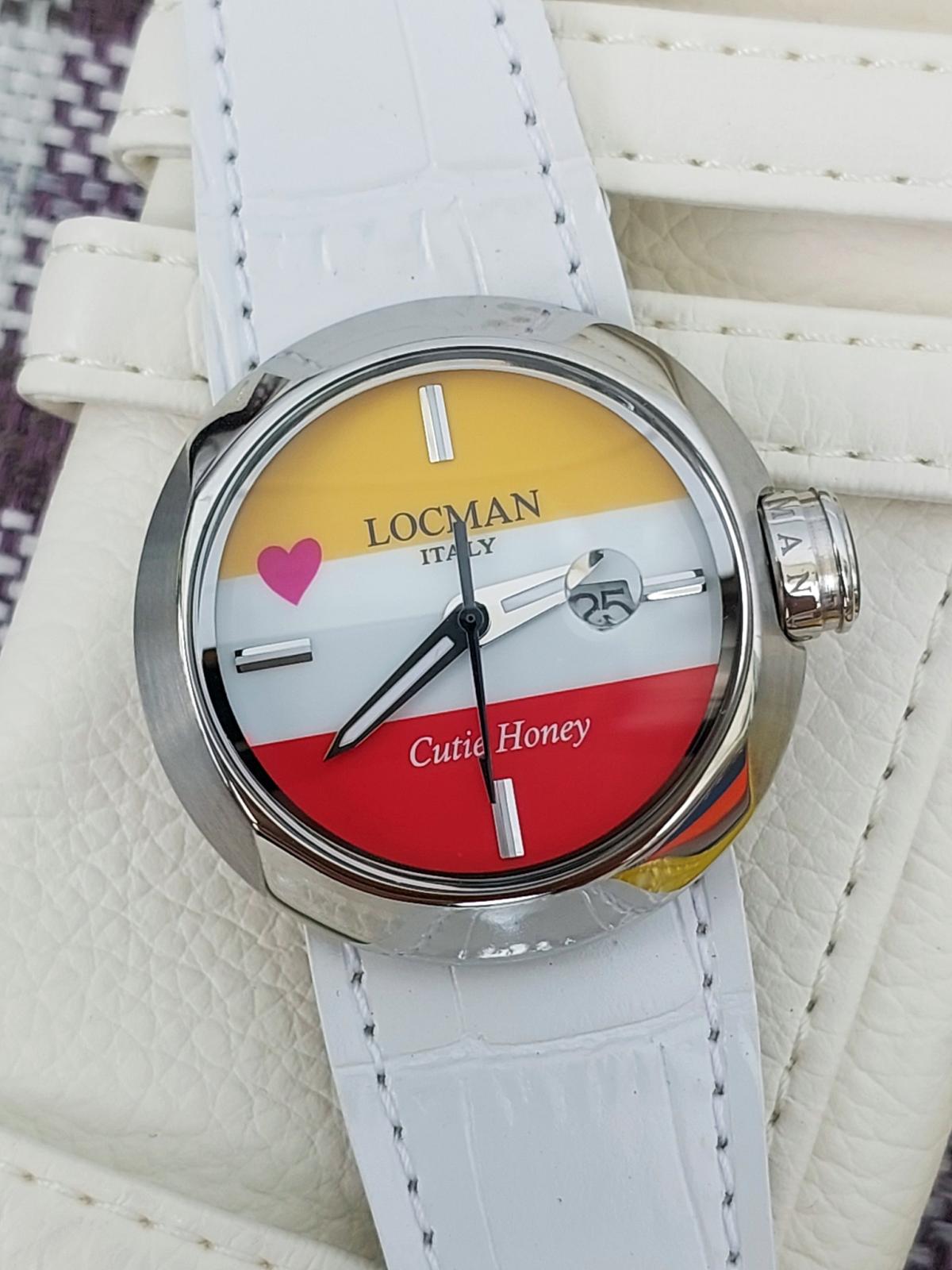 100 chiếc sx Giới hạn được sx cho mẫu đồng hồ Ý siêu dễ thương đánh dấu sự hợp tác của thương hiệu Locman Ý và họa sĩ truyện tranh nổi tiếng người Nhật Go Nagai. Chủ đề là "Cutie Honey" và chiếc đồng hồ cũng thật ngọt ngào như cái tên của nó. 3 màu Đỏ, Trắng và Vàng mịn màng, sắc nét được phối cực chuẩn chia đều mặt số theo chiều ngang và 1 trái tim màu Hồng đặt cạnh bên tạo sự thu hút khó cưỡng bởi sự đáng yêu, duyên dáng đậm chất Ý hòa quyện phong cách manga Nhật Bản. Bộ dây handmade sành điệu zin hãng gồm 3 màu kèm theo để thay đổi tùy thích (Có kèm theo vít để mở ốc đổi dây), Mặt đáy số thứ tự limited và tên của sản phẩm. Chính hãng Locman sx tại Ý, sd máy Pin chuẩn hãng, hàng mới chưa sd gồm bao da zin, 3 dây zin Đỏ, Vàng, Trắng đính kèm, size 36mm.
