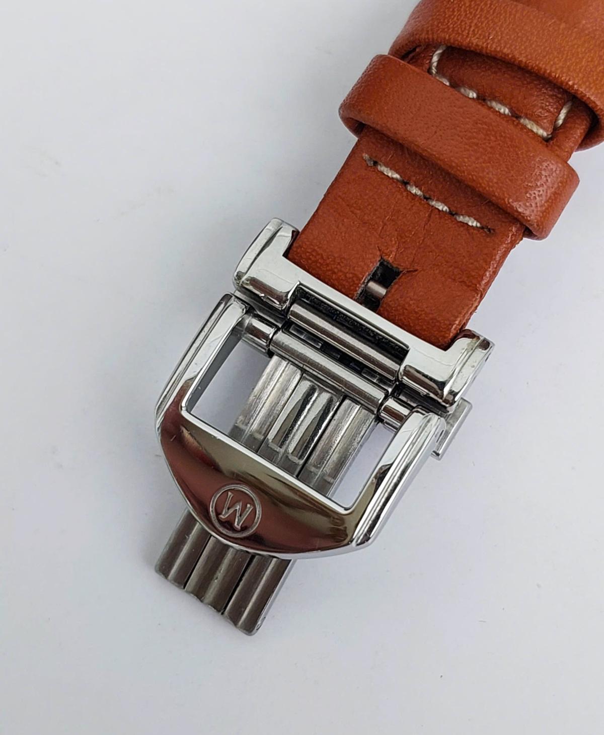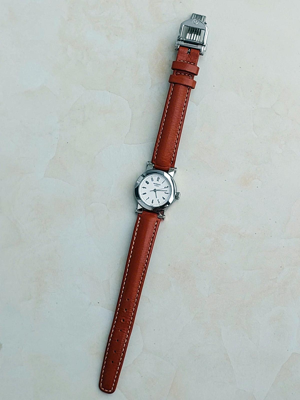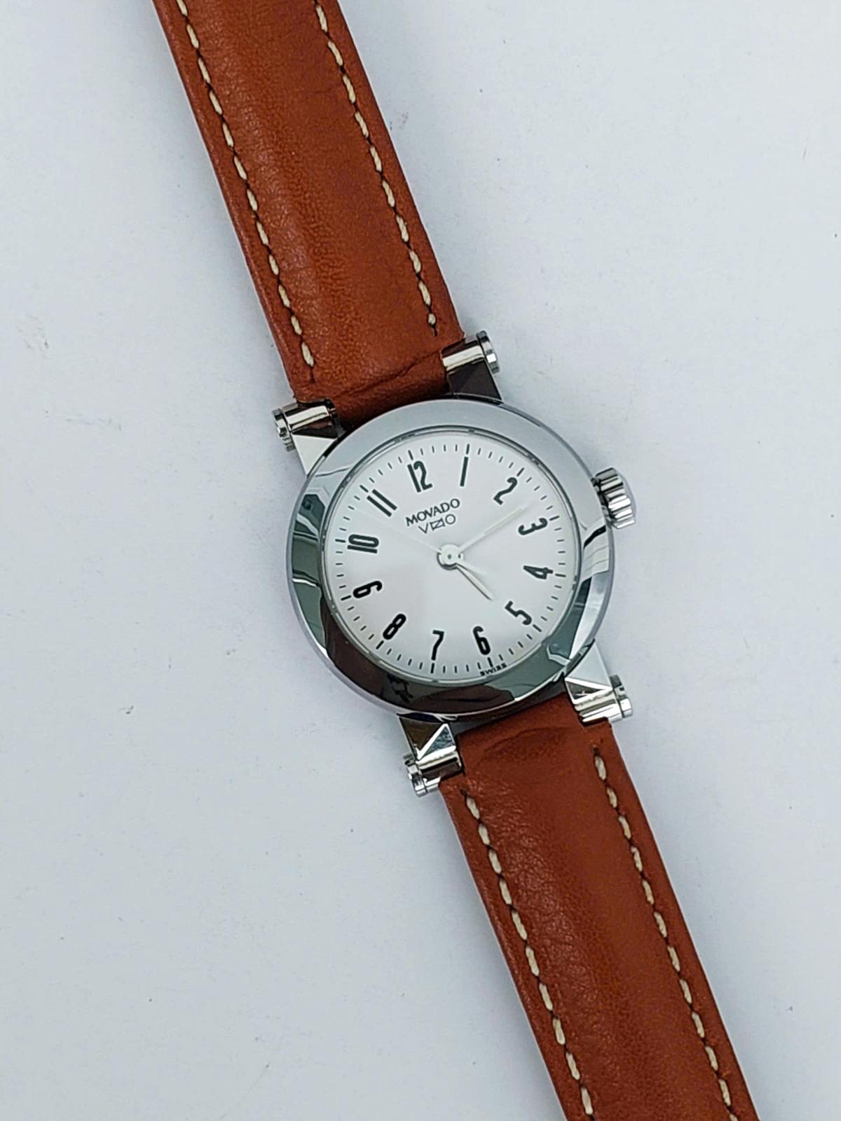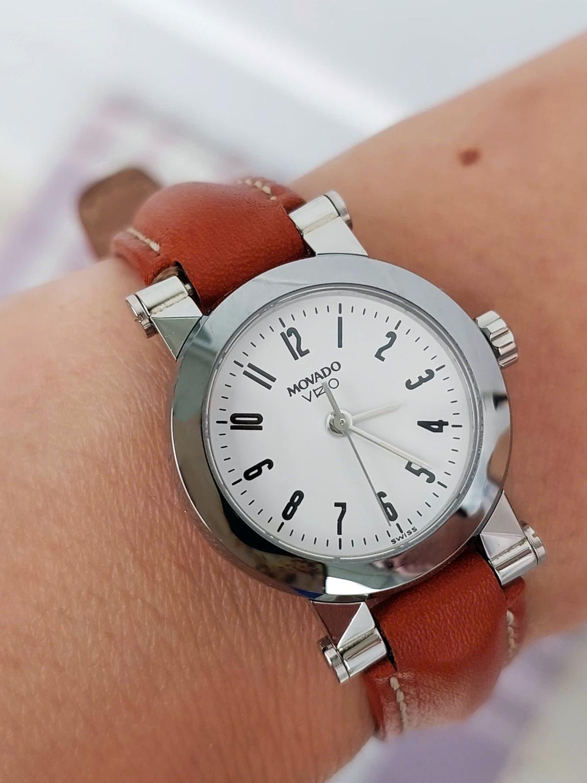 Mẫu nữ M0vado vizio phong cách thanh lịch, hiện đại và tinh tế. Phần trên vỏ đồng hồ được làm từ chất liệu gốm ceramic bóng bẩy, sang trọng kết hợp với mặt số trắng trang nhã, tạo nên sự tương phản nhẹ nhàng nhưng đầy cuốn hút. Những con số arabic đen được in rõ ràng, giúp dễ dàng theo dõi thời gian. Kim giờ được thiết kế tối giản nhưng nổi bật, làm tăng sự hài hòa cho toàn bộ mặt đồng hồ. Dây đeo bằng da bò màu nâu tự nhiên, mềm mại và dễ chịu khi đeo, càng tôn lên vẻ đẹp tinh tế của chiếc đồng hồ. Dưới mặt sau là logo M0vad0 Vizio được khắc tinh xảo, tạo nên một điểm nhấn sang trọng. Chính hãng M0vad0 sx tại Thụy Sỹ, sd máy Pin Thụy Sỹ, nguyên bản dây khóa, size 24mm (kính saphire) cho Nữ, độ mới 97-98%.