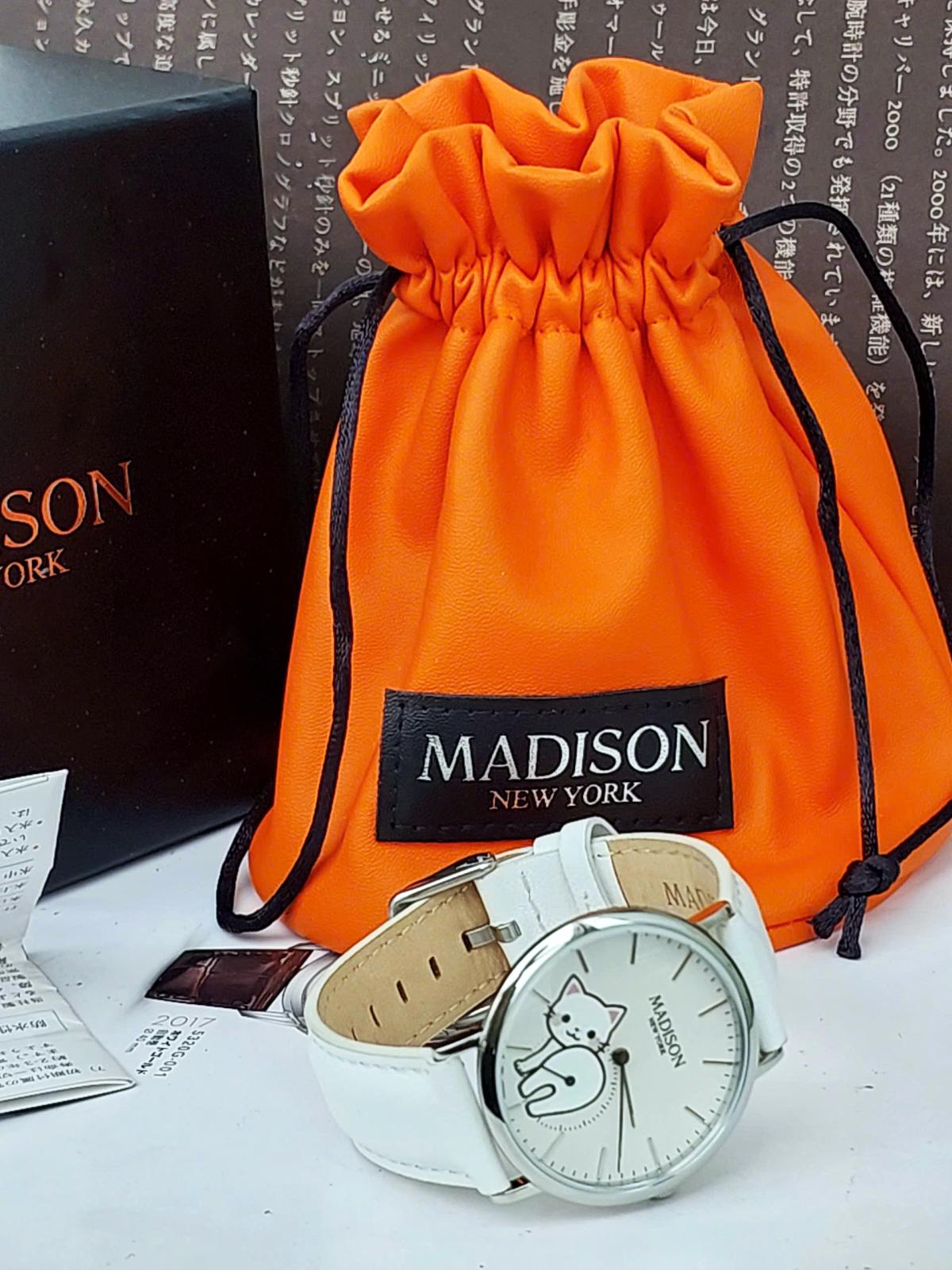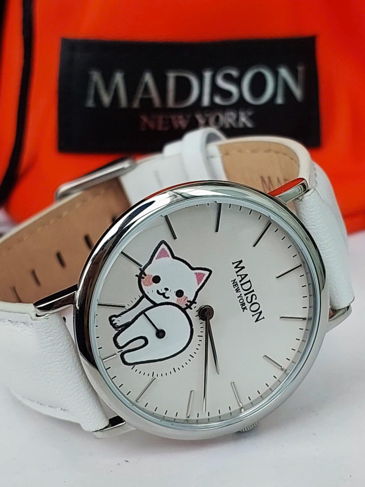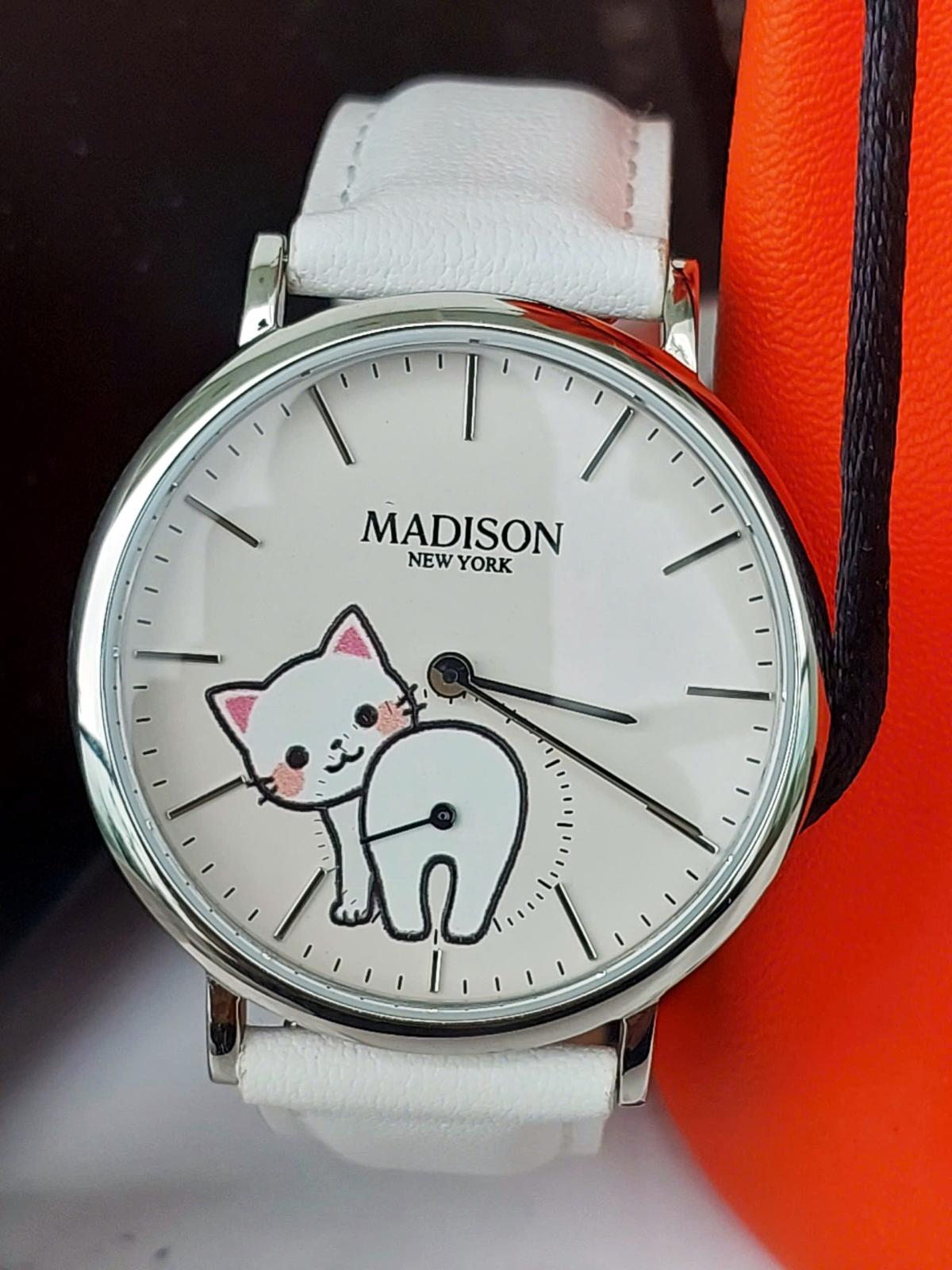 Madison là kết hợp hoàn hảo giữa thiết kế dễ thương và sáng tạo với hình ảnh chú mèo đang ngoái đầu nhìn, tạo nên một cảm giác ngộ nghĩnh và sinh động. Đặc biệt, chiếc đuôi mèo được thiết kế như kim dây, xoay nhẹ nhàng và ngoe nguẩy theo từng giây, mang lại một hiệu ứng vui tươi, đầy sức sống. Sự kết hợp này không chỉ tạo điểm nhấn độc đáo mà còn làm cho đồng hồ trở nên thú vị và dễ thương hơn bao giờ hết. Mỗi lần nhìn vào, người đeo như được trải nghiệm một thế giới nhỏ đầy niềm vui, sự dễ thương và phong cách thời trang riêng biệt. Chính hãng Madison USA, sd máy Pin Japan, full hộp, nguyên bản dây khóa, đẹp như mới 99%, size 36mm cho Nữ.
