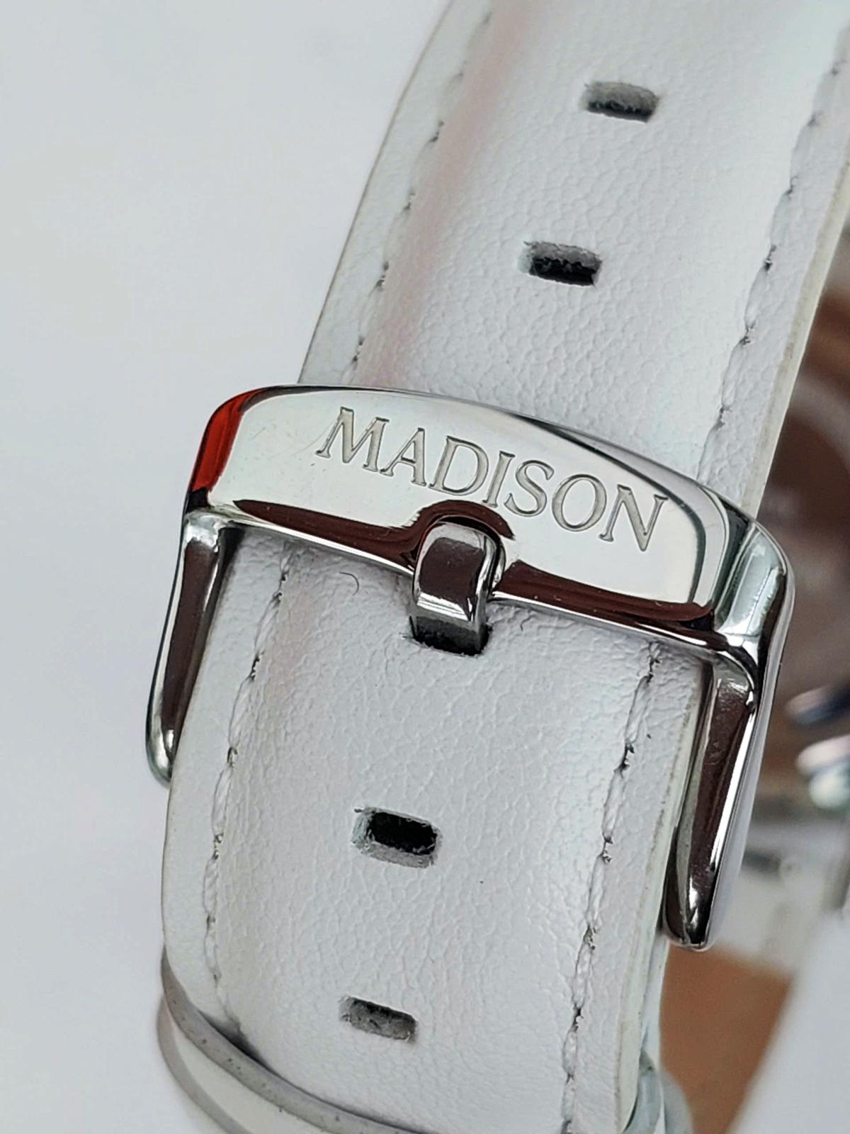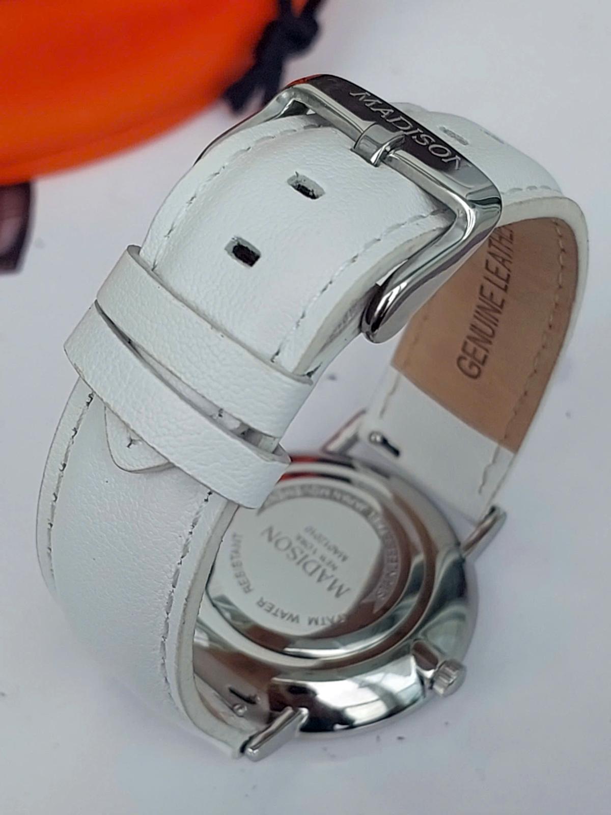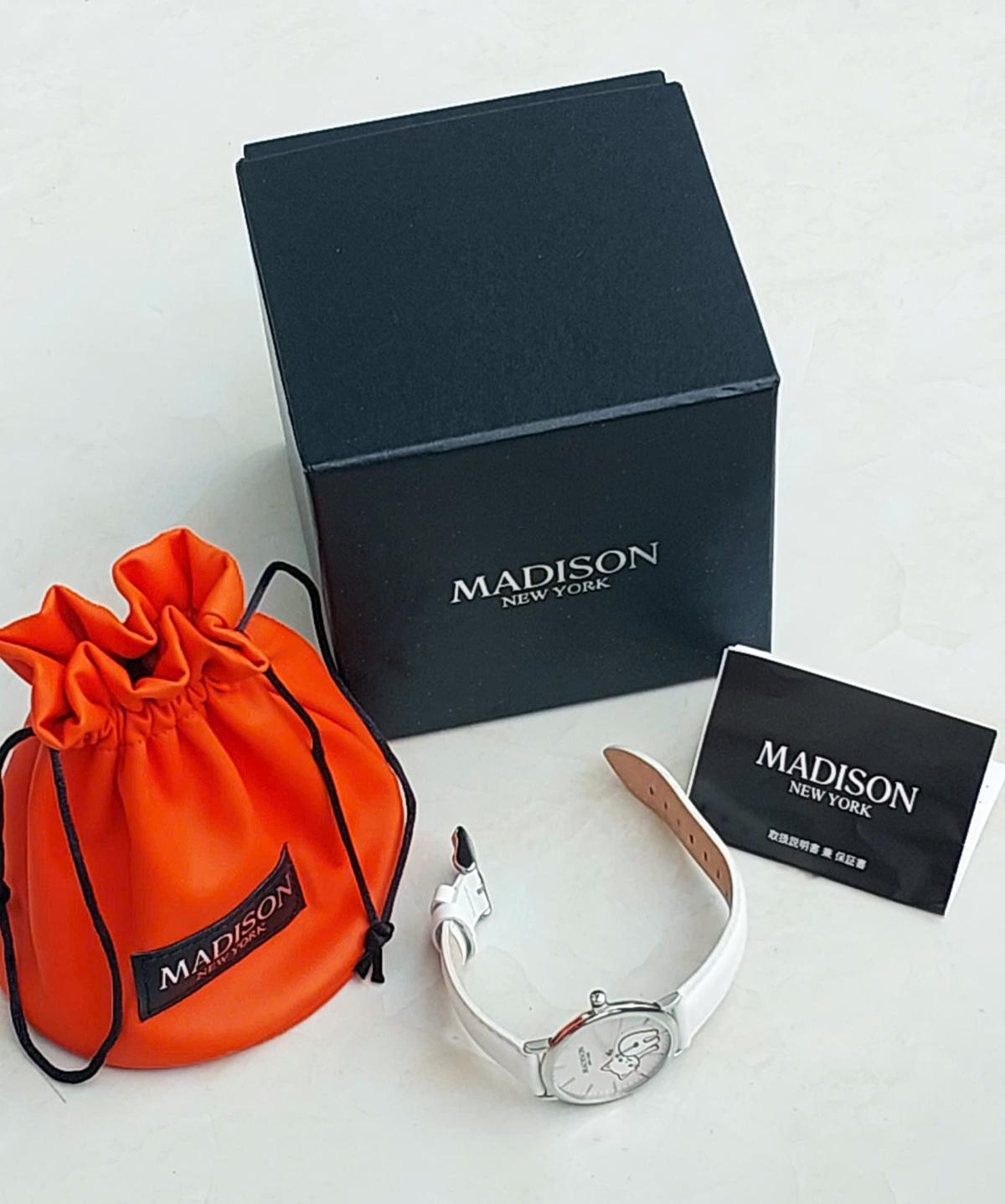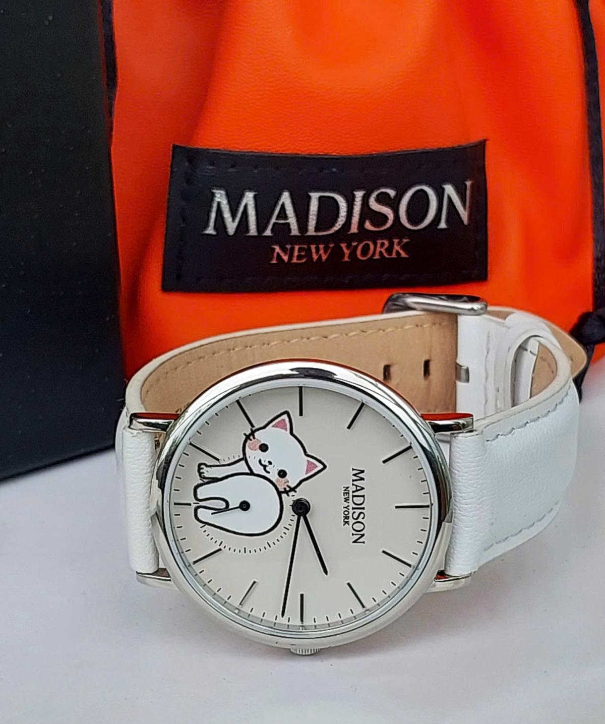 Madison là kết hợp hoàn hảo giữa thiết kế dễ thương và sáng tạo với hình ảnh chú mèo đang ngoái đầu nhìn, tạo nên một cảm giác ngộ nghĩnh và sinh động. Đặc biệt, chiếc đuôi mèo được thiết kế như kim dây, xoay nhẹ nhàng và ngoe nguẩy theo từng giây, mang lại một hiệu ứng vui tươi, đầy sức sống. Sự kết hợp này không chỉ tạo điểm nhấn độc đáo mà còn làm cho đồng hồ trở nên thú vị và dễ thương hơn bao giờ hết. Mỗi lần nhìn vào, người đeo như được trải nghiệm một thế giới nhỏ đầy niềm vui, sự dễ thương và phong cách thời trang riêng biệt. Chính hãng Madison USA, sd máy Pin Japan, full hộp, nguyên bản dây khóa, đẹp như mới 99%, size 36mm cho Nữ.
