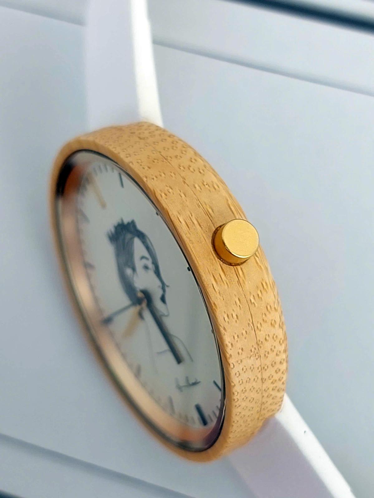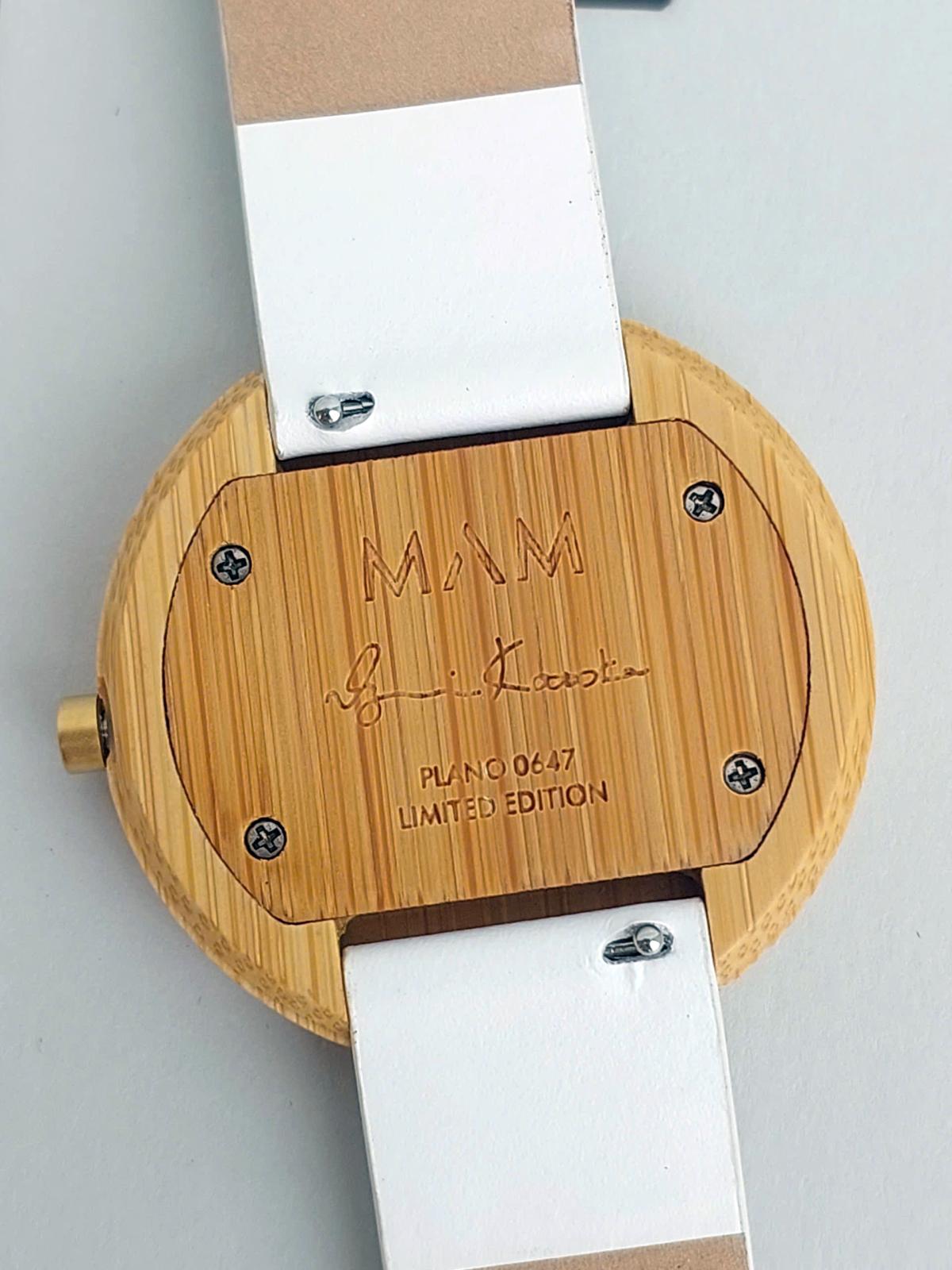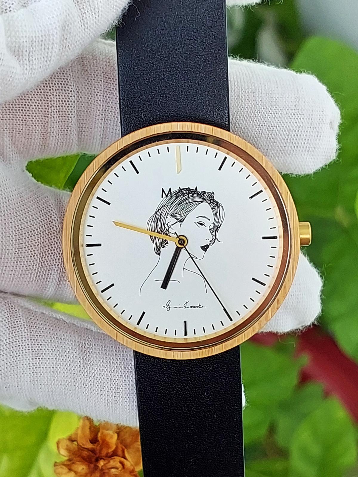 Bạn đang tìm kiếm một chiếc đồng hồ không chỉ để xem giờ, mà còn là một tác phẩm nghệ thuật trên cổ tay? Mẫu đồng hồ này chính là sự giao thoa giữa nét đẹp cổ điển và tinh thần hiện đại, dành riêng cho những tâm hồn yêu cái đẹp. Được sx giới hạn được sx bởi thương hiệu Mam Tây Ban Nha và họa sĩ Kotoda Izumi Nhật Bản. Vỏ được chế tác từ chất liệu tự nhiên vỏ Tre tự nhiên. Dưới lớp kính saphire trong vắt là là chân dung nghiêng 1 cô gái tóc ngắn gợi lên vẻ kiêu sa, bí ẩn nhưng đầy khí chất. Vân gỗ tự nhiên mang đến sự ấm áp, gần gũi, trong khi dây đeo trắng tinh khôi tạo nên nét thanh lịch, trang nhã. Chính hãng Mam Tây Ban Nha, sd máy Pin Japan, full hộp, nguyên bản mới chưa sd, size 38mm cho Nữ.