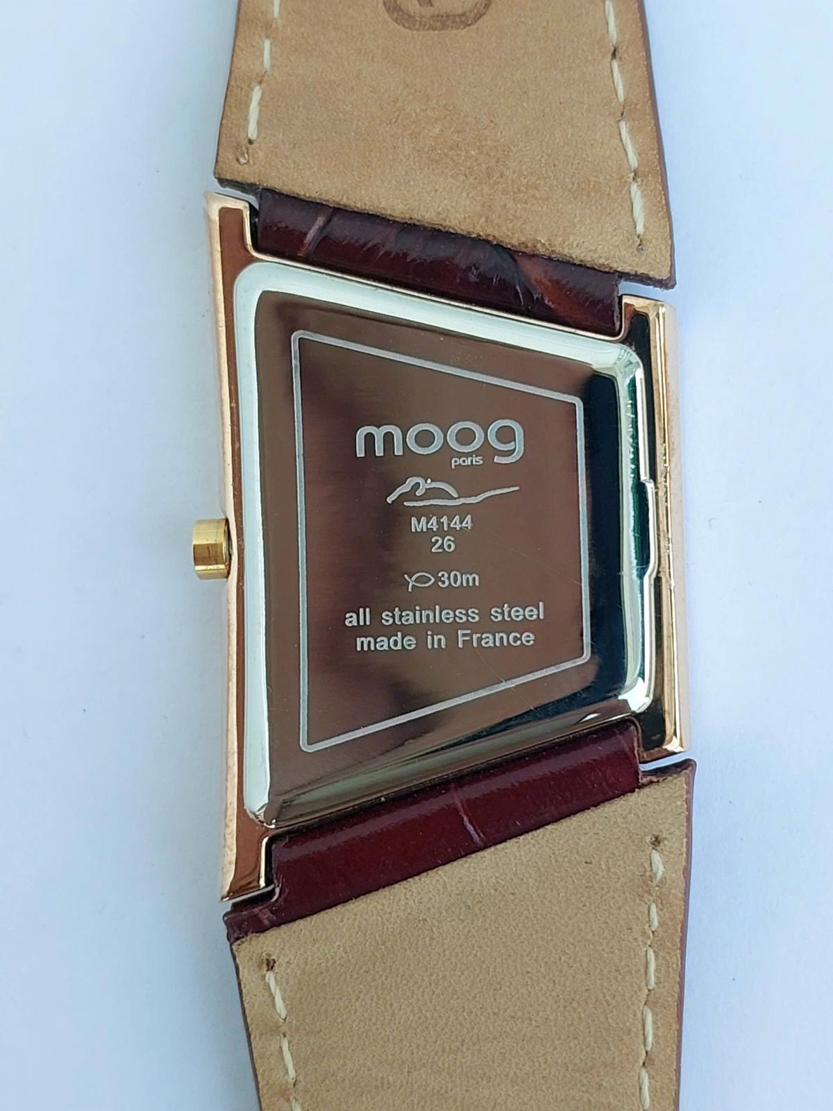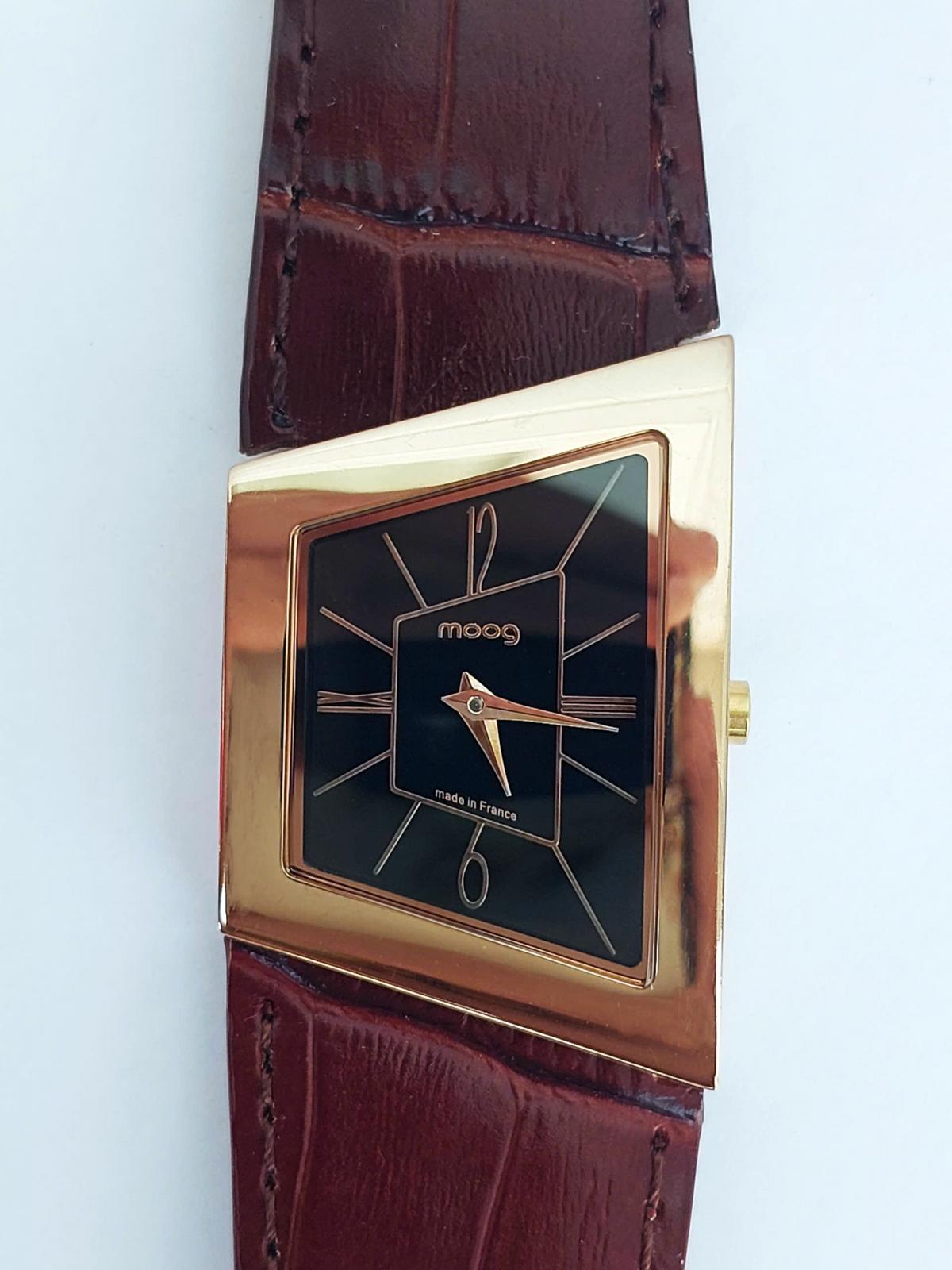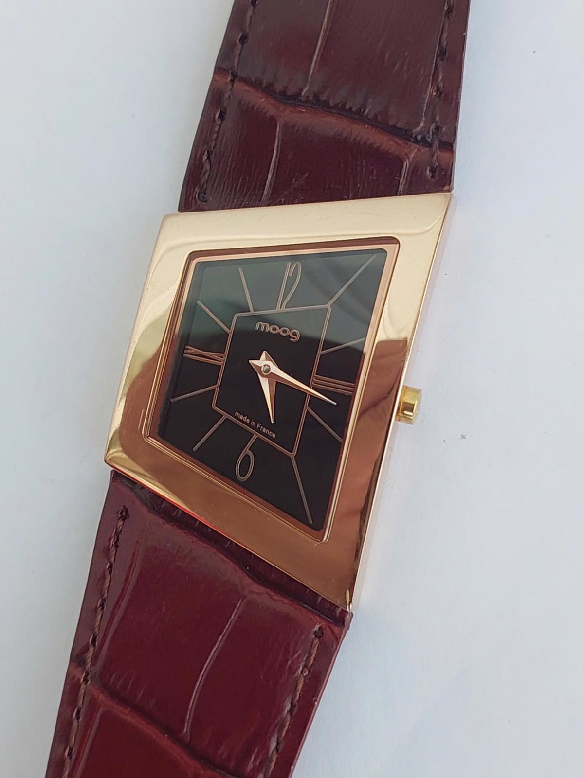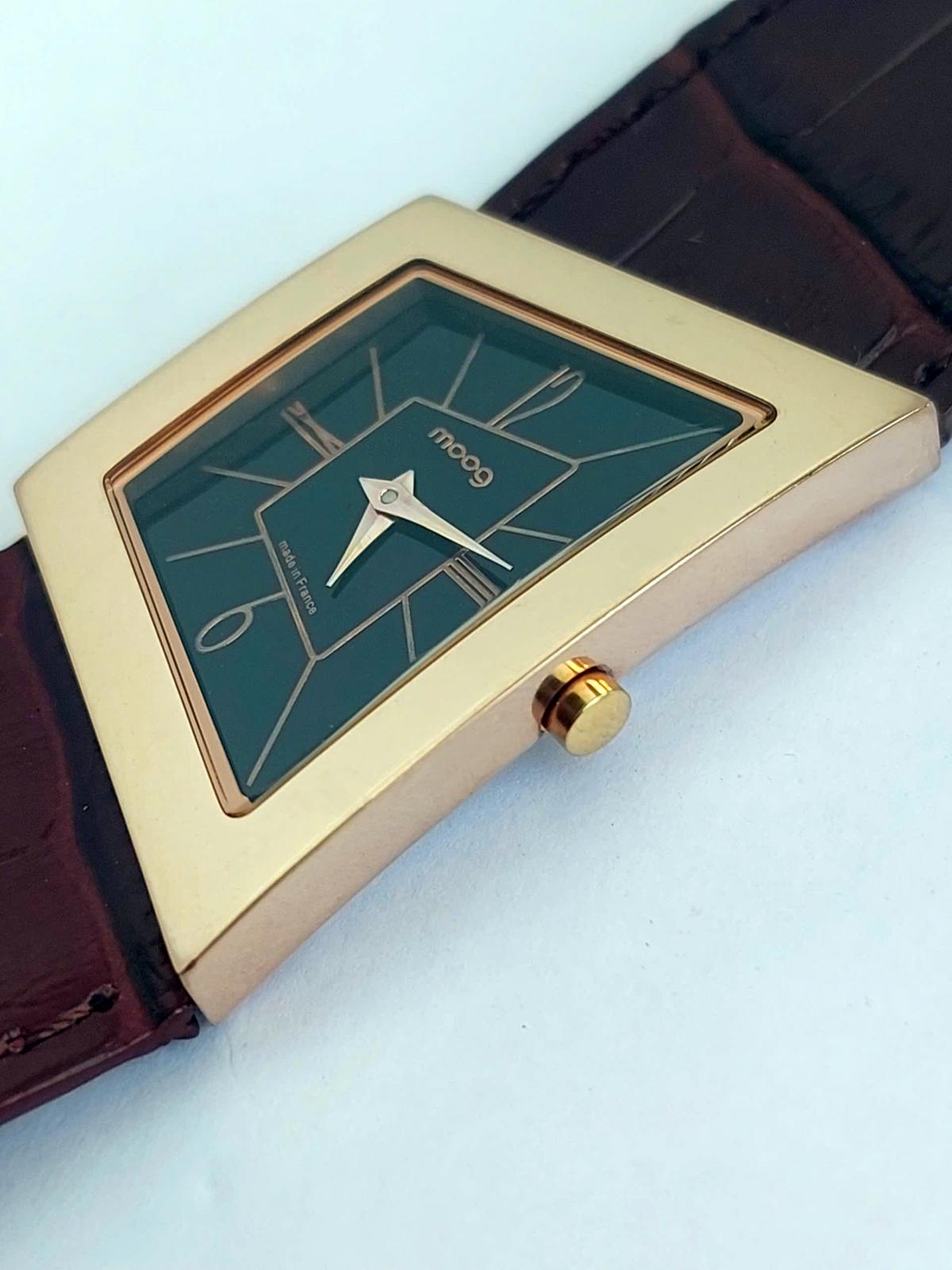 Mang một vẻ đẹp thanh lịch nhưng gây ấn tượng mạnh mẽ bởi thiết kế mỏng với vỏ hình học bất đối xứng vô cùng độc đáo và phá cách. Sự giao thoa tinh tế giữa sắc vàng hồng sang trọng của khung viền và mặt số đen huyền bí mang đến một vẻ đẹp có chiều sâu, nơi những đường nét cọc số đan chéo thanh mảnh tạo đầy lôi cuốn và mang hơi thở đương đại. Một mẫu nữ đẹp toát lên trọn vẹn sự thanh lịch, kiêu kỳ đặc trưng của kinh đô thời trang Pháp. Chính hãng Moog sx tại Pháp, sd máy pin Thụy Sỹ, full hộp, dây khóa zin, size các cạnh 24x26x38mm cho Nữ, độ mới tầm 97%.