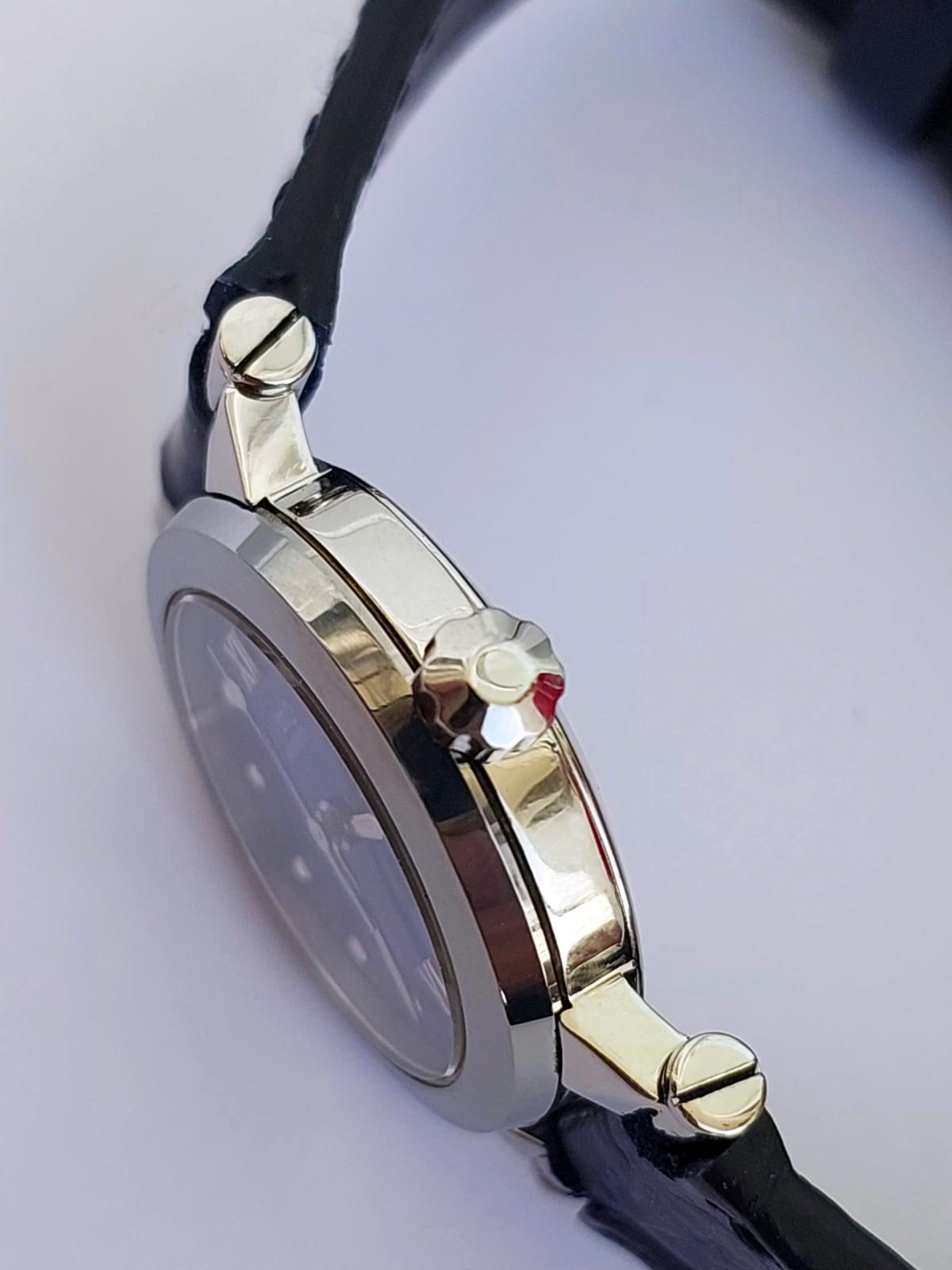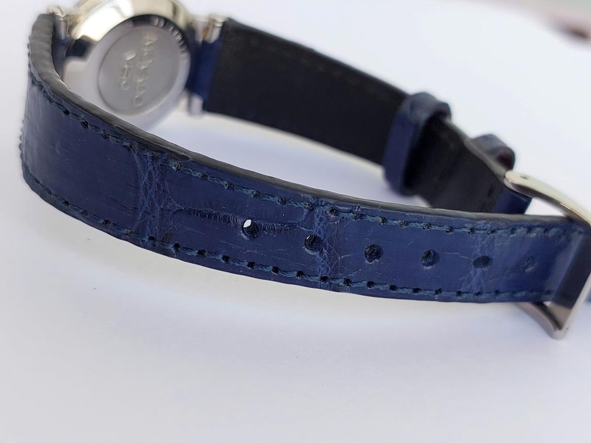 Sắc xanh cobalt đầy quyền lực và sâu thẳm, mang đến vẻ đẹp vừa bí ẩn vừa sang trọng tuyệt đối cho quý cô sở hữu. Sở hữu thiết kế mang tính biểu tượng với niềng đá ceramic, phần càng nối dây vát cạnh đặc trưng mạnh mẽ nhưng vẫn giữ được nét thanh lịch, chiếc đồng hồ nổi bật với mặt số chải tia sunburst rực rỡ, điểm xuyết là các cọc số bi tròn tinh tế kết hợp cùng cọc số La Mã cổ điển tại vị trí 12h và 6h tạo nên một tổng thể hài hòa đến từng chi tiết. Là phiên bản Limited Edition chỉ được sản xuất đúng 50 chiếc màu xanh cobalt trên toàn cầu và chiếc bạn đang chiêm ngưỡng mang số thứ tự 03 cực đẹp, dây da cá s.ấu được thay thế mềm mạ,i ôm tay, tôn nét thanh lịch. Chính hãng M0vado sx tại Thụy Sỹ, sd máy Pin Thụy Sỹ, khóa cao cấp thay thế, size 24mm cho Nữ tay nhỏ, độ mới tầm 98%.