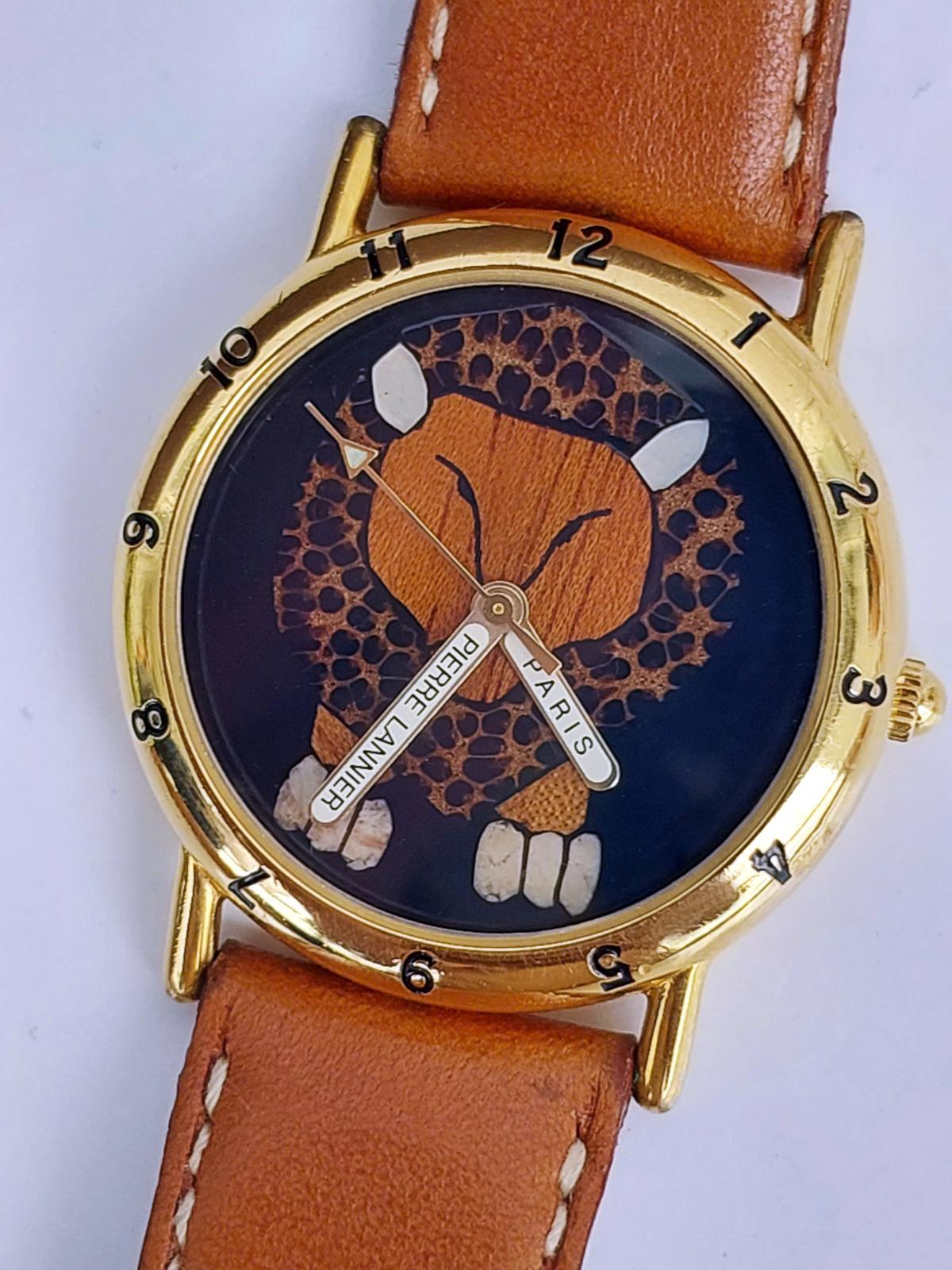 Chiếc đồng hồ Pierre Lannier này thực sự là một tác phẩm thủ công tuyệt vời, với mặt số được làm hoàn toàn bằng gỗ tự nhiên và khảm trai. Mỗi chi tiết trên mặt số đều được chế tác tỉ mỉ, tạo nên hình ảnh chú sư tử không chỉ dễ thương mà còn vô cùng tinh tế, với đôi mắt to tròn và chiếc mũi nhỏ nhắn, tạo nên vẻ đẹp nhẹ nhàng, đáng yêu. Các vân gỗ tự nhiên mang đến vẻ đẹp độc đáo, không giống bất kỳ chiếc đồng hồ nào khác, kết hợp với những miếng khảm trai óng ánh, tạo nên sự tương phản hoàn hảo. Toàn bộ mặt số được làm thủ công, điều này khiến mỗi chiếc đồng hồ trở thành một tác phẩm nghệ thuật độc đáo và được sx giới hạn 999 chiếc. Chính hãng Pierre Lannier sx tại Pháp, sd máy pin Thụy Sỹ, dây khóa zin, size 33mm cho Nữ, độ mới tầm 96%
