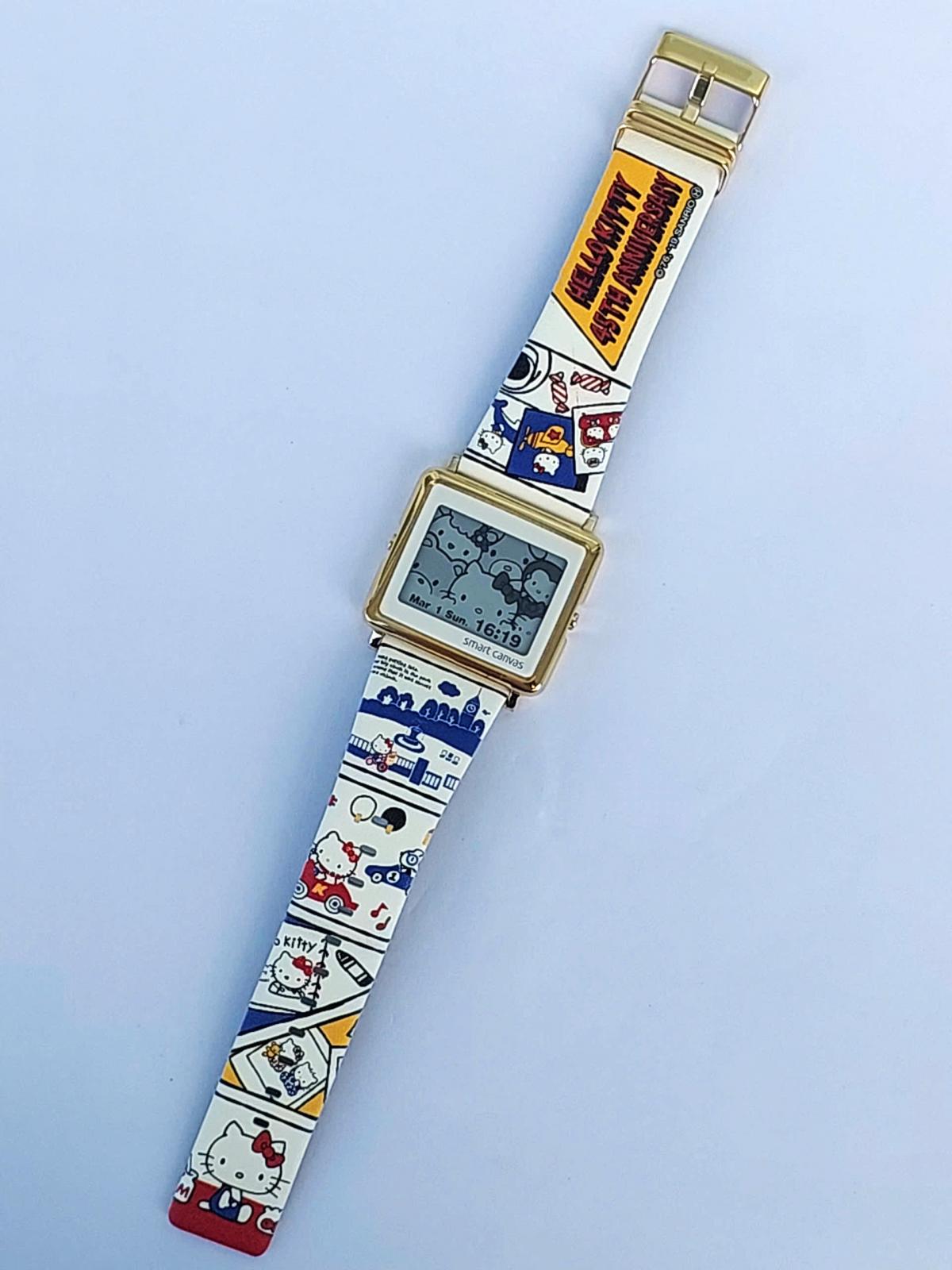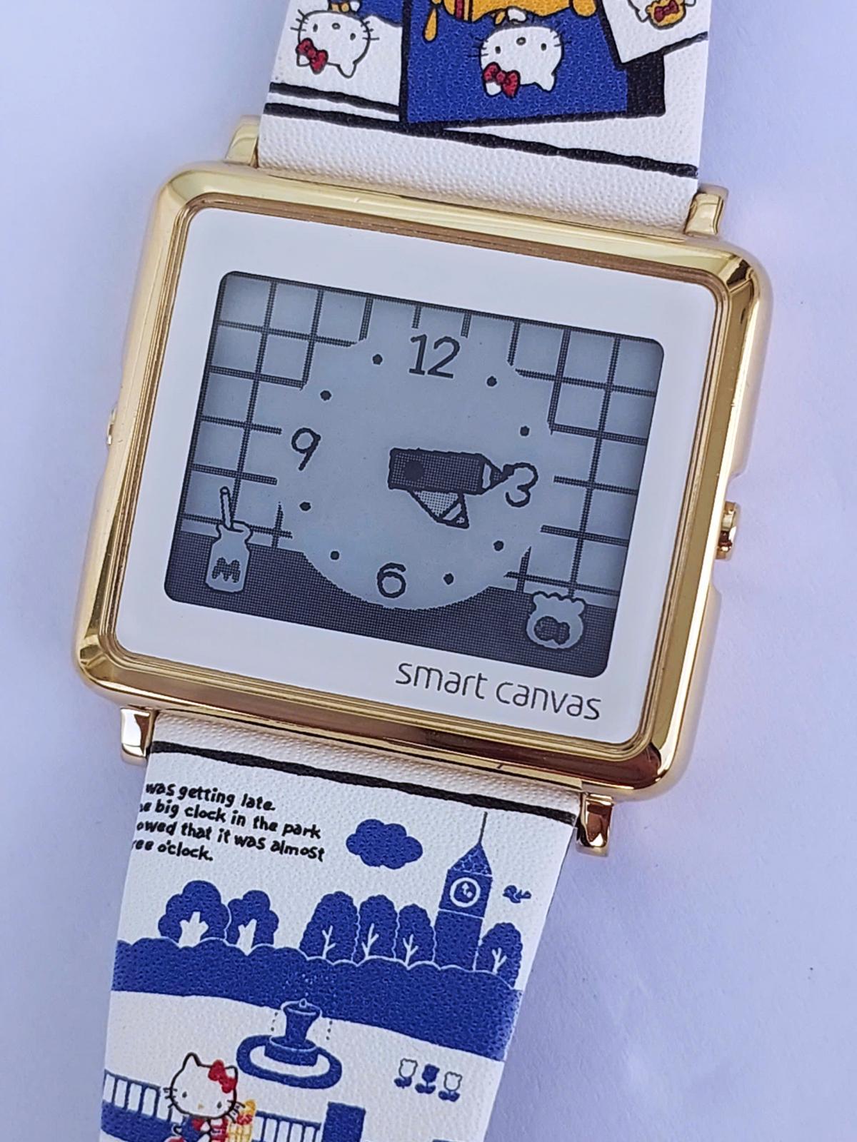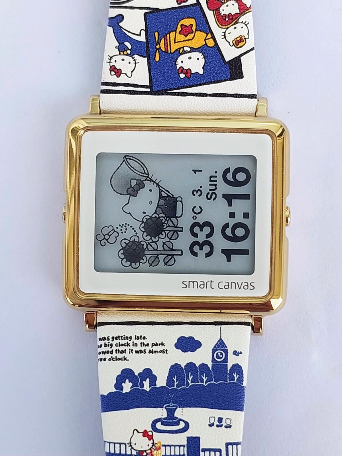 Smart Canvas phiên bản đặc biệt kỷ niệm 45 năm Hello Kitty sx giới hạn 300 chiếc (được chế tác bởi Epson, thuộc tập đoàn Seiko) mang đến sự kết hợp hoàn hảo giữa nét thanh lịch hiện đại và vẻ đáng yêu vượt thời gian. Ôm trọn lấy màn hình e-ink độc đáo có khả năng biến đổi hình ảnh linh hoạt, tái hiện rất nhiều những khoảnh khắc sinh động của cô mèo Hello Kitty thay đổi theo thời gian trong ngày như đang say sưa đánh đàn piano, chơi xếp hình, hay rạng rỡ bên những người bạn nhỏ. Phần dây đeo còn là một tác phẩm nghệ thuật thực thụ với vô số hình minh họa rực rỡ sắc màu, kể lại những chuyến hành trình vui nhộn của Hello Kitty Mặt đáy đồng hồ lại mang vẻ đẹp sắc nét với logo kỷ niệm 45 năm được khắc tinh xảo, khẳng định giá trị sưu tầm của một ấn bản đặc biệt. Mang trên tay cỗ máy thời gian này không chỉ là cách để theo dõi giờ giấc mà còn giống như bạn đang sở hữu một bức tranh hoạt hình thu nhỏ trên cổ tay, đầy ắp niềm vui, sự ngọt ngào và chắc chắn sẽ làm bừng sáng phong cách mỗi ngày của những quý cô yêu thích sự mộng mơ. ĐH sx nội địa Nhật, sd máy pin Japan, nguyên bản, size 33x37mm. Độ mới tầm 98%