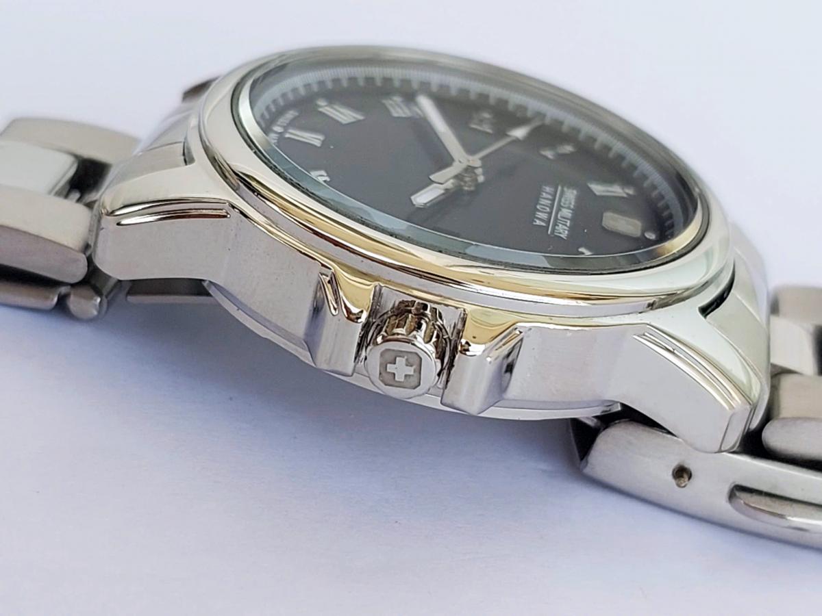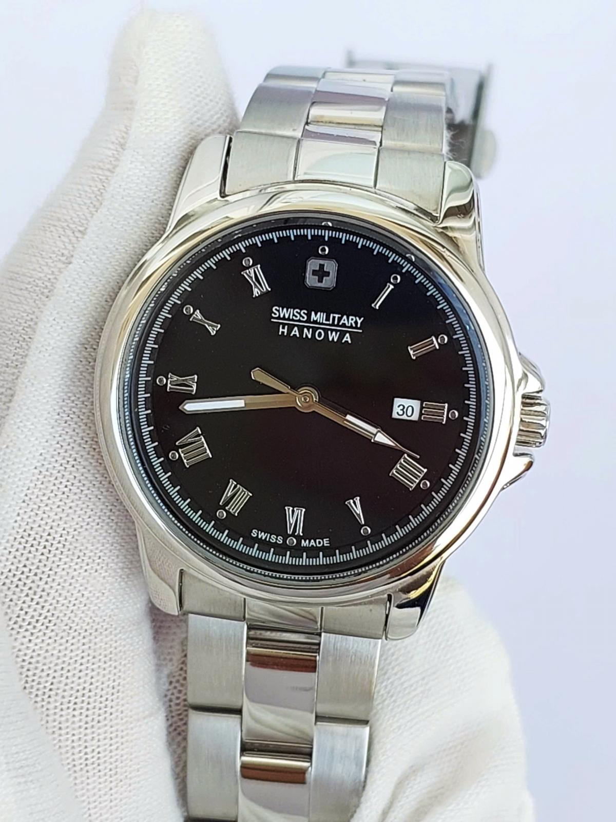 Thương hiệu Swiss Mili.tary Hanowa cũng có những mẫu tuyệt đẹp cho nữ, mang thiết kế thanh lịch, đơn giản cùng sự bền bỉ. Điểm nhấn nổi bật nhất là mặt số màu đen huyền bí với các cọc số La Mã bạc cổ điển, tạo nên một diện mạo vừa quý phái vừa dễ quan sát. Thân vỏ và dây đeo được làm từ thép không gỉ sáng bóng, với những mắt xích chế tác tinh xảo giúp ôm sát và tôn lên nét duyên dáng của cổ tay người đeo. Chính hãng Swiss Mili.tary sx tại Thụy Sỹ, sd máy pin Thụy Sỹ, nguyên bản, size 32mm cho nữ (dây zin phù hợp cho tay nữ từ 16cm trở xuống), độ mới trầm 97-98%.