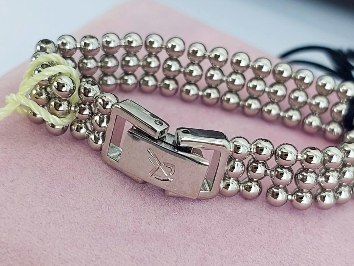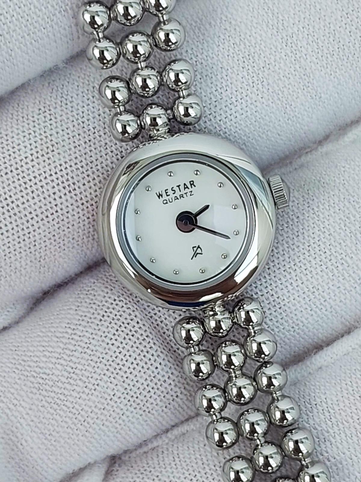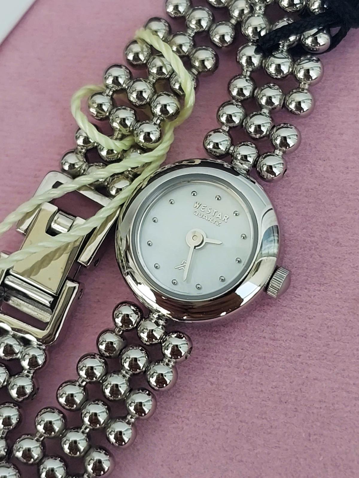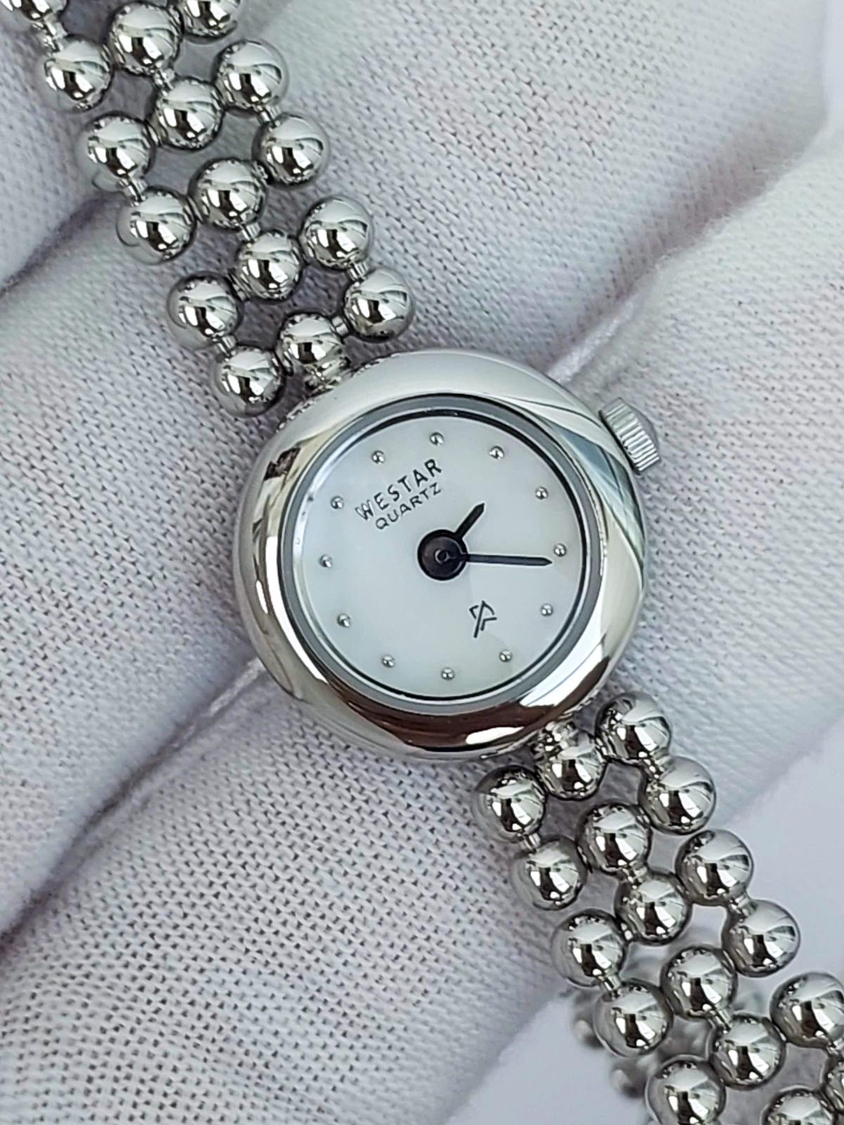 Thực sự là 1 chiếc đồng hồ nữ nhỏ nhắn và dễ thương, mang đến vẻ đẹp tinh tế đến từng chi tiết. Với mặt số siêu nhỏ chỉ 17mm, đồng hồ tạo cảm giác như một viên ngọc nhỏ xinh, nhưng lại tỏa sáng đầy cuốn hút. Mặt số trắng tinh khiết được trang trí đơn giản với những chấm chỉ giờ nhỏ nhắn, càng làm nổi bật sự thanh thoát, nhẹ nhàng tạo nên một tổng thể vô cùng duyên dáng. Dây đeo được thiết kế bằng những viên bi tròn, xếp khéo léo và gắn kết với nhau, tạo ra một hình dáng vừa mềm mại vừa có sức hút riêng biệt. Chính hãng Westar, full hộp, nguyên bản, size 17mm cho Nữ, gần như chưa sd 99%.