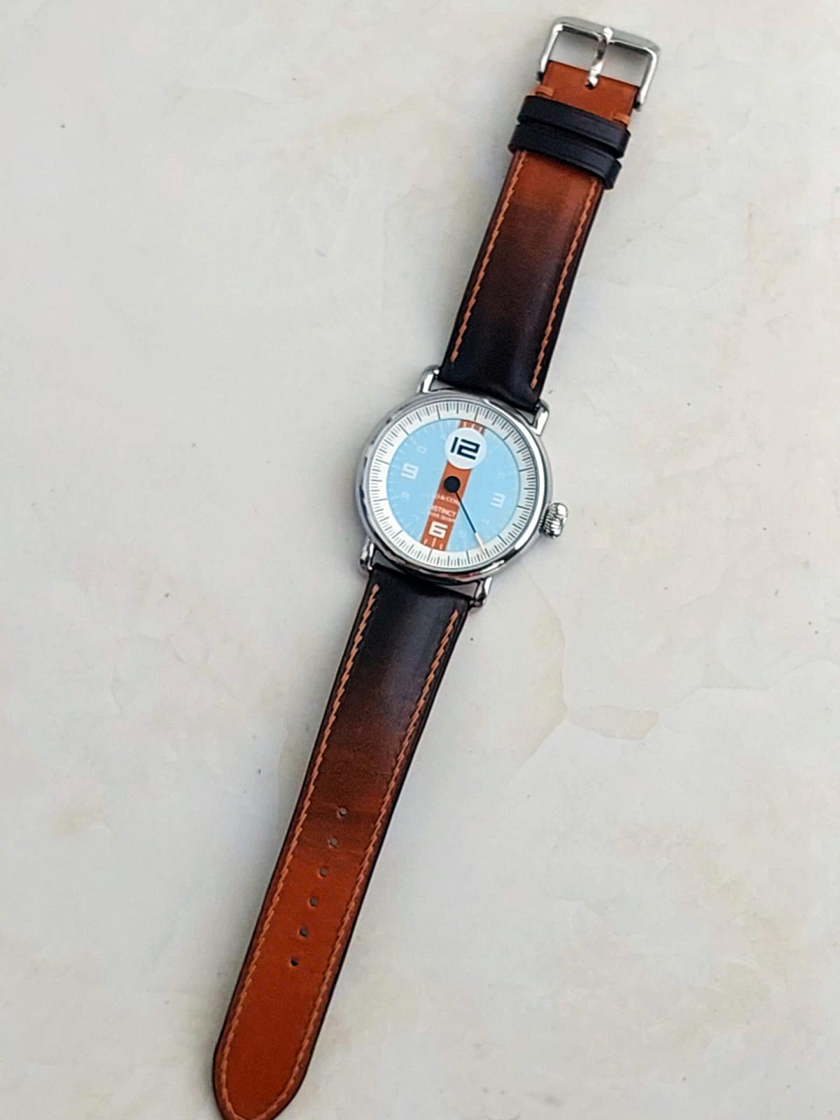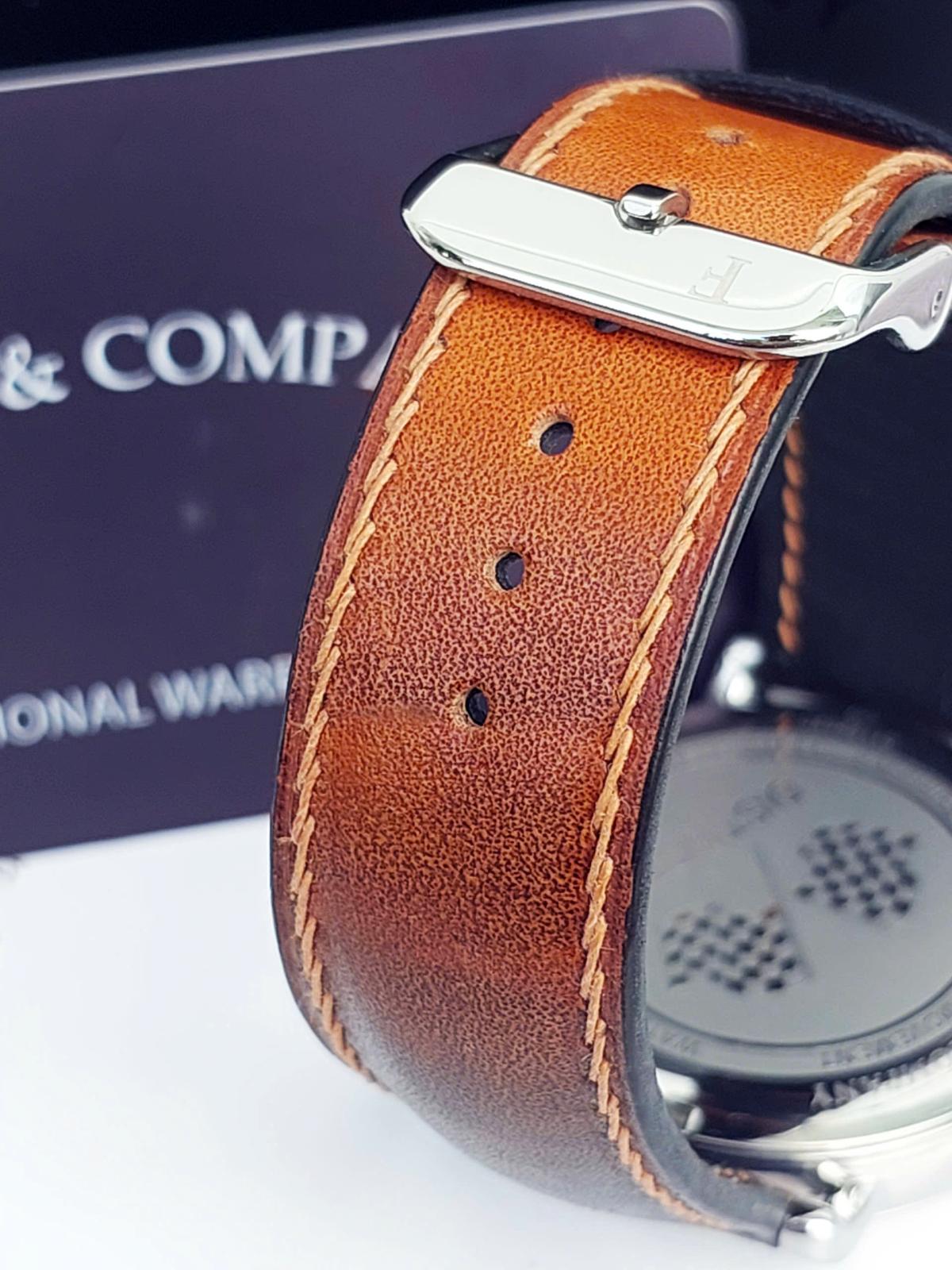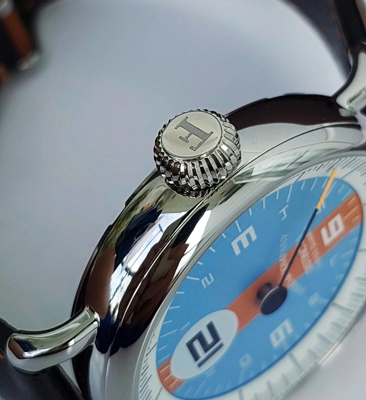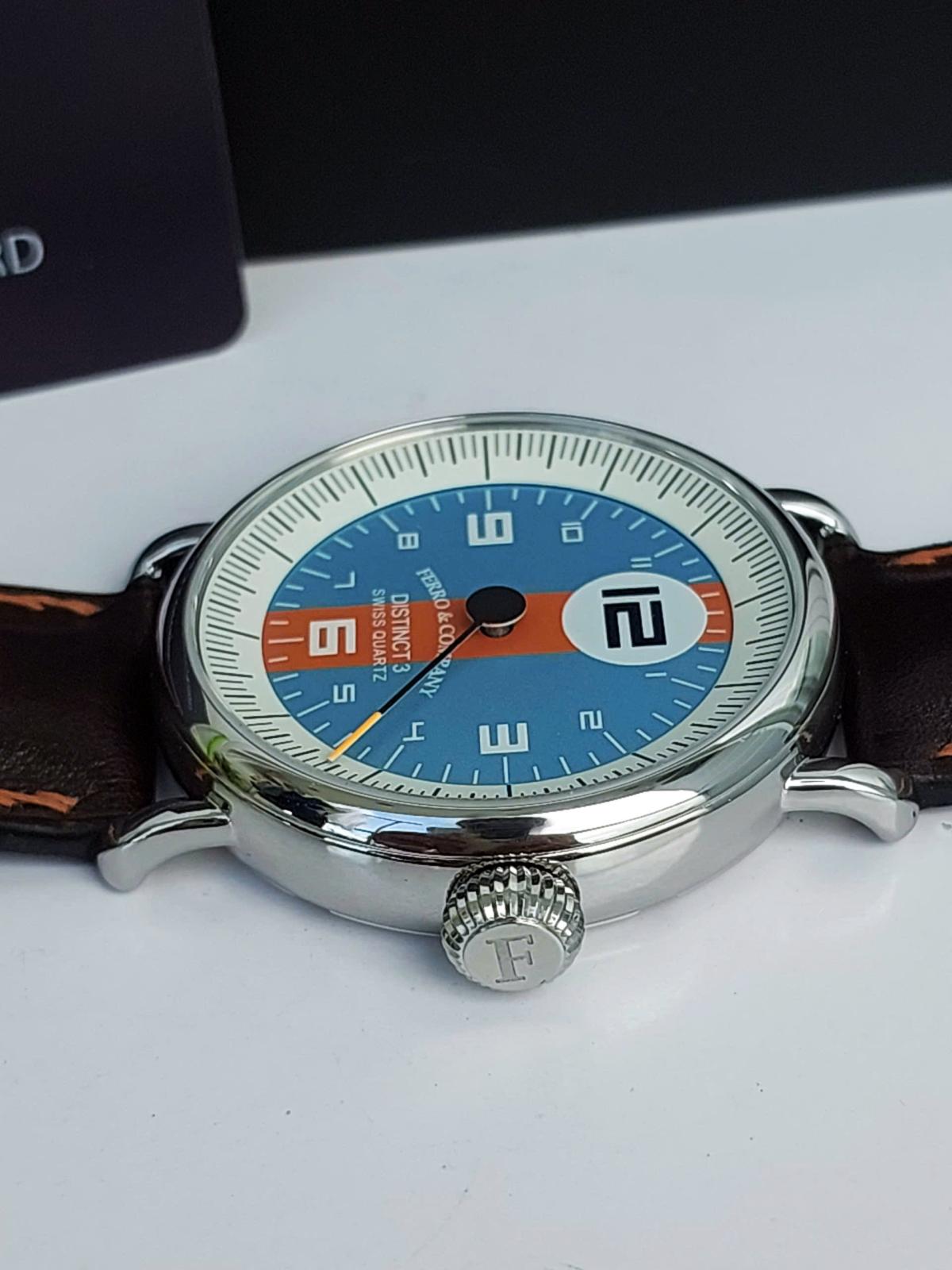 Sx giới hạn 1000 chiếc trên toàn TG, mẫu đồng hồ Fe.rro & Company Distinct 3 với thiết kế độc đáo, nổi bật với chỉ một kim duy nhất là kim giờ, mang lại vẻ đẹp tinh tế và khác biệt. Kim giờ dài và thanh mảnh di chuyển nhẹ nhàng trên mặt số xanh da trời tươi sáng, tạo nên một sự đơn giản đầy ấn tượng. Thiết kế này không chỉ tiết kiệm không gian mà còn thể hiện sự thanh thoát và tinh tế, phù hợp với những ai yêu thích sự tối giản mà vẫn đầy sang trọng. Dải cam chạy dọc mặt đồng hồ làm nổi bật kim giờ, đồng thời tăng thêm nét trẻ trung, năng động cho mẫu đồng hồ này. Phía sau của đồng hồ được trang trí tỉ mỉ với biểu tượng cờ đua thể thao, cùng các chi tiết nổi bật như số hiệu phiên bản giới hạn, tạo nên nét độc đáo và giá trị riêng biệt cho mỗi chiếc đồng. Với kiểu dáng đặc biệt, Ferro & Company Distinct 3 chính là lựa chọn lý tưởng cho những người muốn khẳng định phong cách riêng biệt và yêu thích sự tinh tế, đơn giản mà vẫn đầy cuốn hút . Chính hãng Fe.rro & Company, sd máy Pin Thụy Sỹ, full hộp, thẻ, khóa zin, dây zin tặng thêm dây da handmade thay thế, size 42mm, độ mới cao 99%.